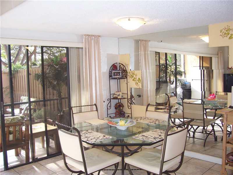 This townhouse is immaculate from the Contemporary kitchen with breakfast nook to the spacious great room with crown molding, ceramic tile, open to formal dining room. Huge master suite with screened in balcony, exquisite master bath, walk in closets i n both bedrooms, modest 2nd bedroom with updated bath. Accordion hurricane shutters, screened in back patio and a tiled and casual enclosed backyard. Must see this home is precious and will appeal to Investors as well, they can rent it right away .