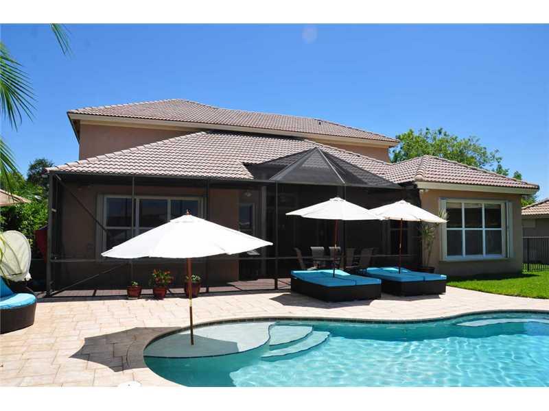 5 Bedroom, 3 1/2 Bath Spinnaker model with loft in Palm Harbour section of Parkland Isles. This home features an incredible tropical heated pool area with amazing water view and located on cul-de-sac lot! Extended screened patio, perfect for relaxing or entertaining. Kitchen has granite counters and stainless steel appliances. All hardwood floors and tile. No carpet. Wired for speakers on first floor. Walk to A-rated schools. Guard gated community with clubhouse, tennis, basketball, plus much more.
