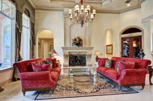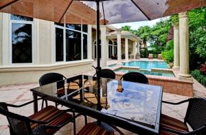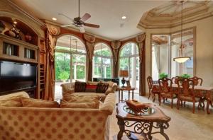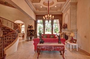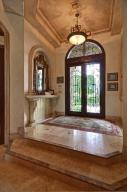 Hallmarked by meticulous attention to detail, this exquisite residence is warmly elegant with a wealth of intricate moldings and faux painted finishes. Saturnia marble floors flow through the main level. Five bedrooms, five and a half baths, and a 3 car garage are included in 5,800+- total square feet. This residence is fully protected with impact glass and back-up natural gas home generator. 3 zone air conditioning, fantastic designer window treatments, paint and faux finishes throughout this gorgeous one of a kind home.Glass and iron work clad mahogany doors prelude the soaring living room, highlighting a floor to ceiling fireplace, elaborate ceiling treatments and tall windows framing the pool and gardens.