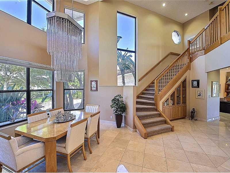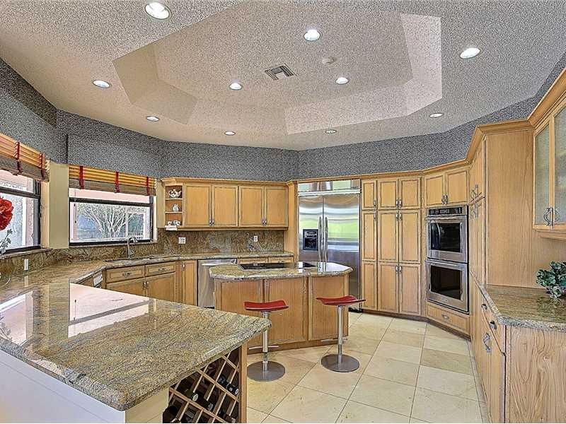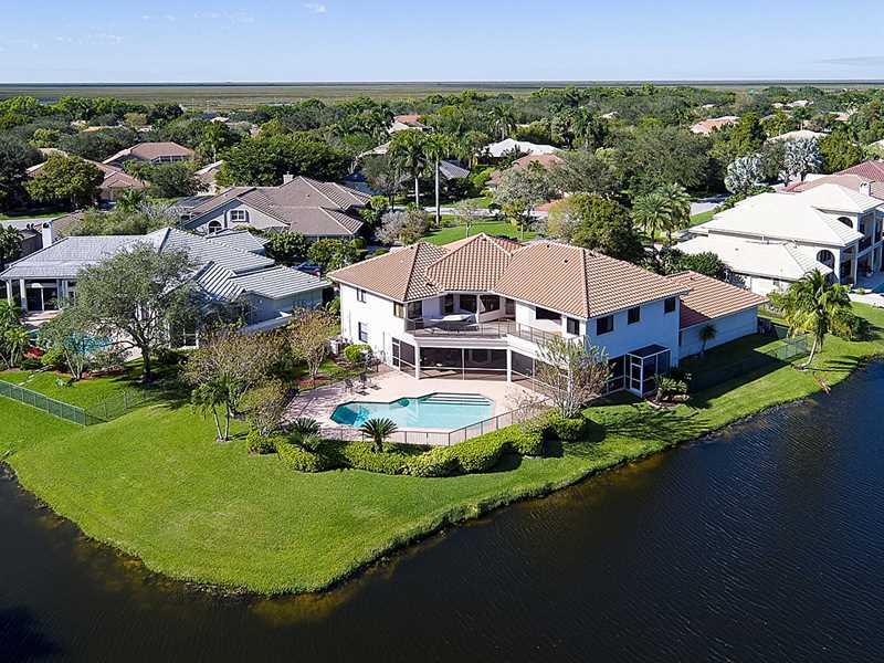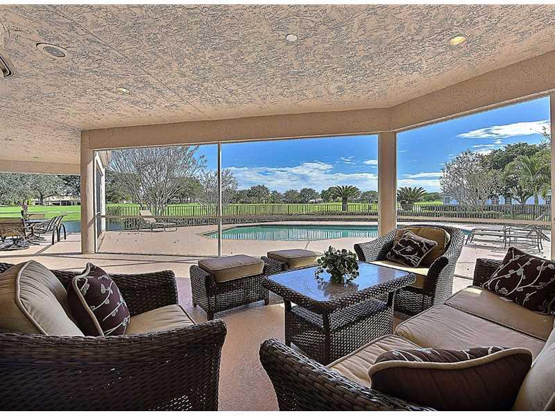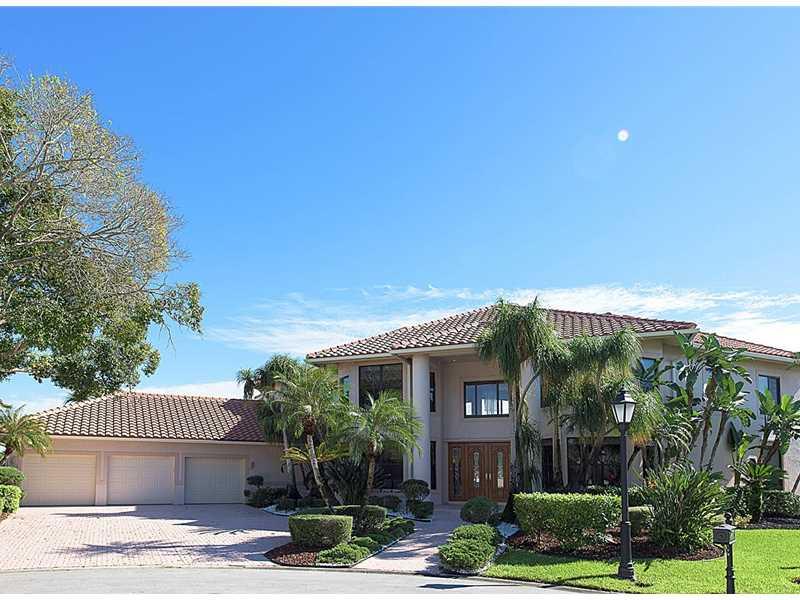 Point, waterfront & golf course view lot in quiet cul de sac. Custom residence, 5 true bedrooms+office+loft. Almost every room captures 270 degrees of flowing waterways & rolling greens. New roof 2015, Impact windows & shutters, contemporary architecture, rich oak trims, marble floors, enormous roofed patios, 18x35' pool + deck . Updated oak kitchen: stainless steel, granite, induction & convection cooking. Tremendous master suite & gym, designer library/office. Interior & exterior balconies. A MUST SEE!