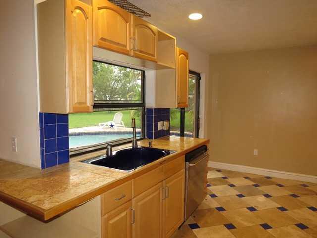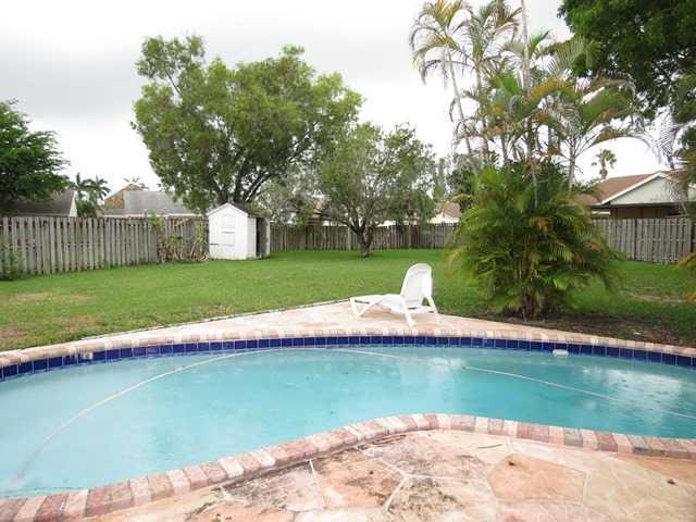 If you are looking for a home with a huge backyard... you have found the right place! 4BR/3BA pool home on spacious 13,950 sq. ft. lot. Backyard fenced in for privacy. Upgraded kitchen with wood cabinets, stainless steel appliances, tile backsplash & larg e breakfast area. Tile flooring throughout living areas with wood flooring in the bedrooms. For those chilly winter nights enjoy your fireplace. Master bath upgraded with wood vanity and granite countertops. Lowest priced 4 bedroom pool home in Weston!