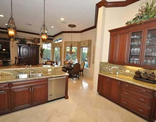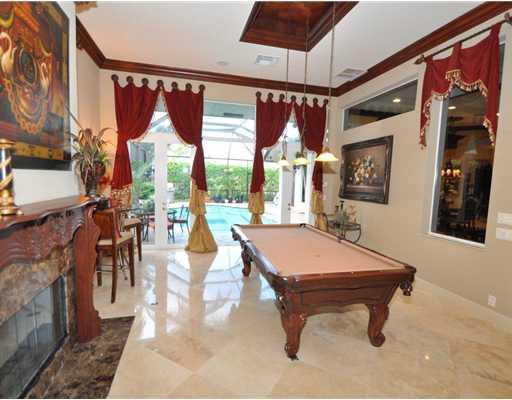 interior designer own home w/175k of total upgrades-which includes a 55k new kitchen-viking stainless steel appliances,subzero,granite countertops and backsplash, marble and wood floors throughout, crown moldings throughout, bonus/billiard/or media room w / fireplace,wet bar + impact windows and double french doors; custom window treatments and moldings, chandeliers throughout, electric pool heater, full screen enclosure, corner yard completely fenced, approx 1/3 acre. automatic sprinkler system on well