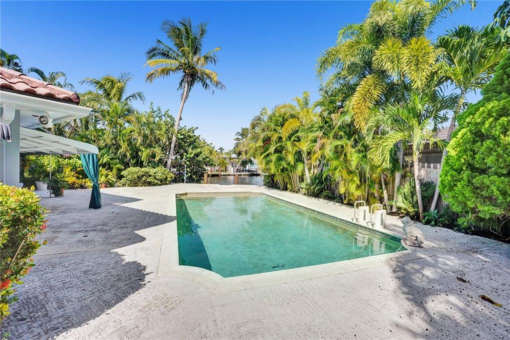 Privately situated in Coral Ridge on a lushly landscaped 14,000+ sf corner lot, is this classic mid-60’s home with lovely curb appeal. Expansive water views on a wide canal (115’ wide). The spacious interior with water views, large eat-in kitchen, various living areas, storage throughout, and three bedrooms each with walk-in closets. Private back patio with large deck, surrounding an oversized pool. 2 car air conditioned garage with shelving. All is in original condition and retains classic architectural features but can updated as one desires. Located in Bayview Elementary school district!