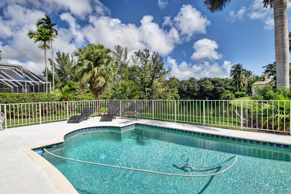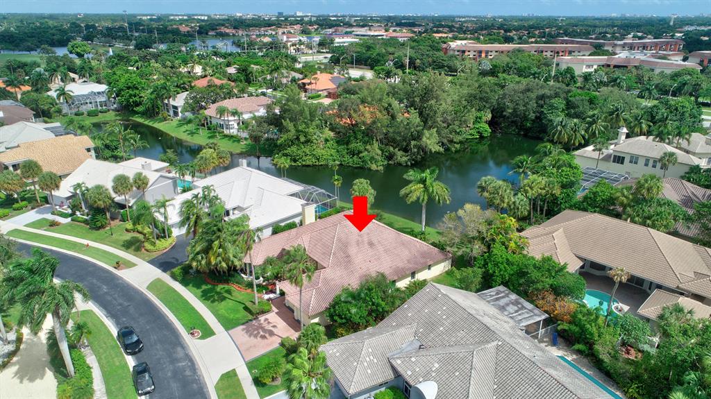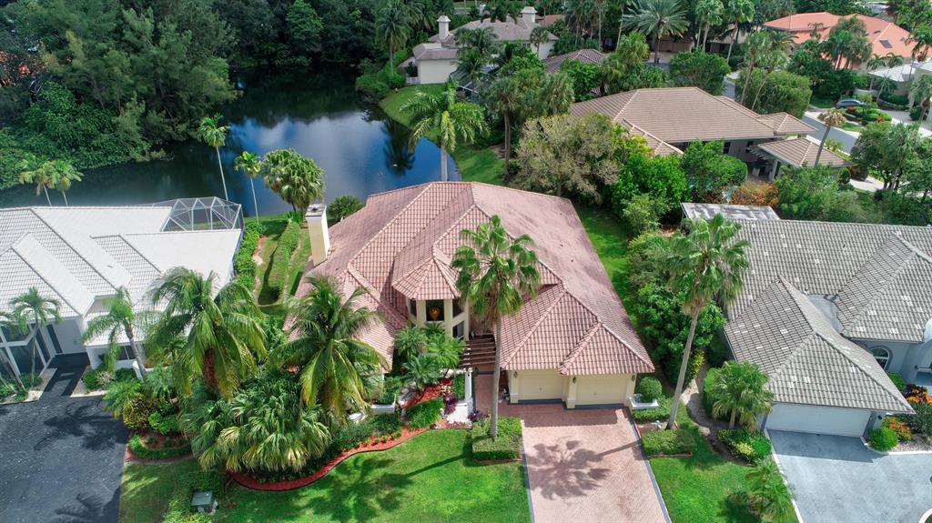 Elegant 1-story former builder's model home w/ 4 BDs 3 BAs, 2-car garage, spacious floor plan, split bedrooms, inground pool, volume and cathedral ceilings, beautiful waterfront view with a beautifully tropical and landscaped private backyard, original owner. Peaceful and scenic, this home boasts 3,100 sq.ft., formal dining and living room, open kitchen and great room with a wood-burning fireplace, perfect for the enjoyment of family and entertaining. Wonderful layout and lots of privacy. 3rd car golf garage converted into a private A/C Zoom Room for working or schooling from home.Boca Pointe offers a non-mandatory, well-established club with many different club membership plans, fabulous amenities and one of the best social calendars in South Florida. Centrally located in Boca Raton