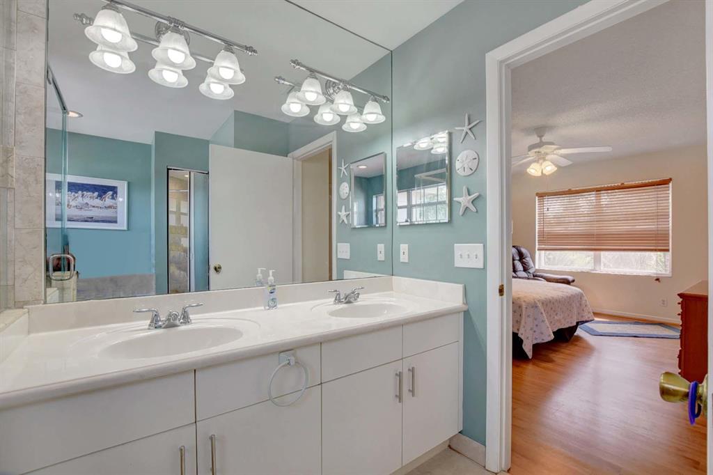 Live life more beautifully in this lakefront home located in the desirable Boca Chase community. Ideally situated with no rear neighbors, designer details include two-story entry, ceramic tile, upper-level wood-laminate flooring & plantation shutters. Updates incl newer AC (2019) & hurricane shutters. Eat-in kitchen features large bay window, granite counters, stainless steel appliances & seated peninsula bar. Spectacular owner's suite incl walk-in closet & en suite bath with double vanity, corner tub & step-in shower with frameless glass door. Lanai & terrace offer plenty of space for outdoor seating, dining & entertaining with that gorgeous lake view. Boca Chase amenities incl basketball court, clubhouse with pool & tennis. Excellent location close to schools, local parks, recreation.