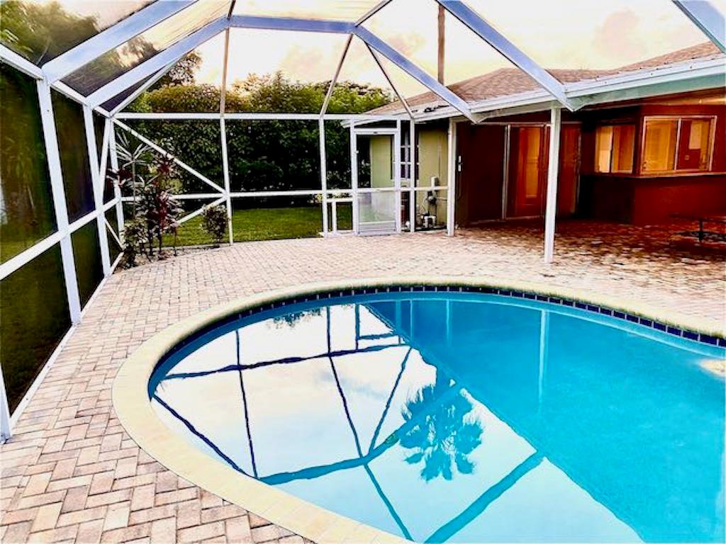 Great opportunity with this adorable updated West Boca home. 3 bed/2 baths with spacious rooms, updated floors, baths and kitchen with granite counter tops, stainless steel appliances and plenty of cabinet space. Laundry room next to kitchen. The private back yard is fenced in with room for dogs and has an amazing paver patio completely screened in, "bird cage" enclosure and a beautiful pool with bubblers at the steps. Circle driveway. Low HOA fee, A rated schools.