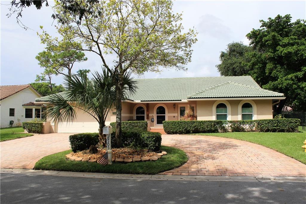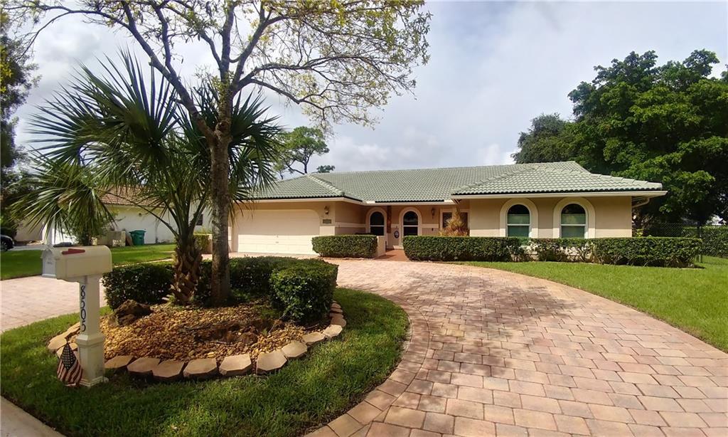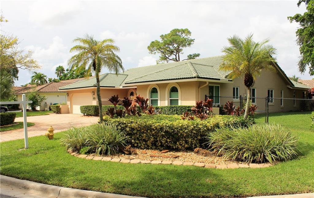 THIS IS IT!! Stunning corner lot 4 bedroom, 2.5 bath, fully updated pool home in sought after Pine Ridge. The beautiful hardwood floors greet you in the foyer and flow throughout the common living areas. Living room offers detailed inlaid tile. Gourmet kitchen, including convection double wall ovens, custom cabinets, granite counters and s/s appliances with built in wine fridge. Remodeled master bath suite with oversized custom shower, dual sinks and Bluetooth mirrors. Beautiful tropical oasis with lush exterior landscaping, paver deck, fenced turf backyard for sports and entertaining in addition to the huge private side yard for the pets. Freshly painted inside and out. New upgraded impact windows and doors, knockdown ceilings, newer A/C,WH and sprinkler pump. Full house water softener