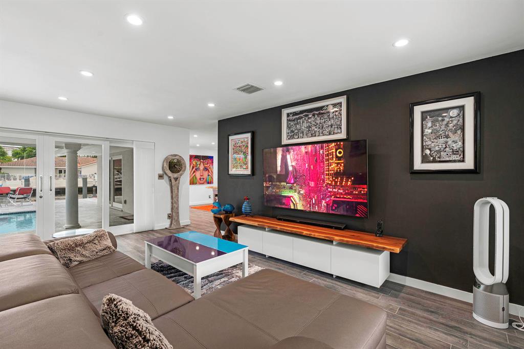 Totally renovated waterfront home in the highly desirable Bermuda Riviera neighborhood! This home has was meticulously updated with modern features such as low-e tinted impact windows & doors, brand new roof, a whole house generator, new sprinkler system, a new electrical panel and new air-ducts. All living spaces flow to the outdoors and feature beautiful views of the water and swimming pool. Interior finishes include porcelain flooring, recessed smart lighting, a chefs kitchen with stainless Kitchen-aid appliances and more. This home is a boaters dream with a 70' dock and no fixed bridges. A must see