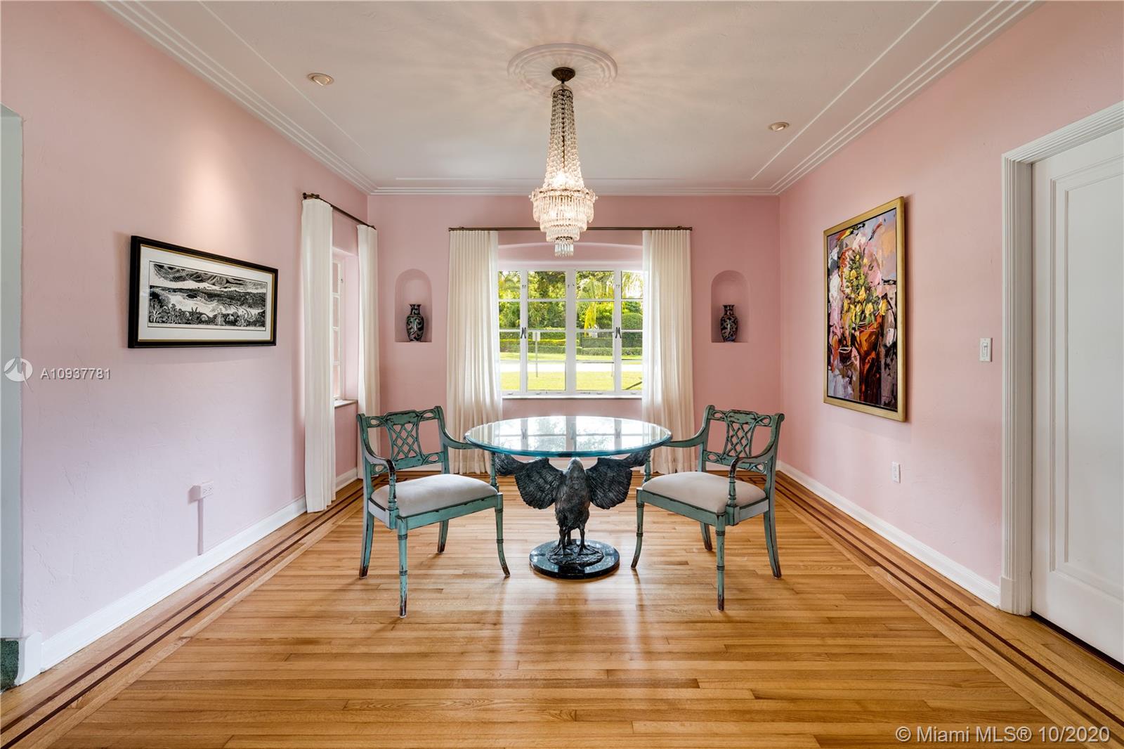Utterly charming, historic 1938 built 3/2.5 with a 1/1 garage apartment + a carport, prized location around the corner from the Biltmore Hotel. 2525 living area sq.ft on a 11,795 sq ft lot. Enter through a dramatic rotunda foyer with 14' ceiling & glamorous terrazzo flooring with bass inlay. The large living room has hand-pegged, wide planked oak floors & a wood burning fireplace, large family room with gorgeous terrazzo flooring & curved wall of windows looks out to expansive lot with room for a pool or additions. All 3 bedrooms grouped together. 3rd bedroom is small - could function as baby's room or office. Charming 1938 bathrooms in perfectly preserved condition. Formal dining room. Kitchen will need updating. Original architect: Lester Avery. A+ location with astounding vintage charm!