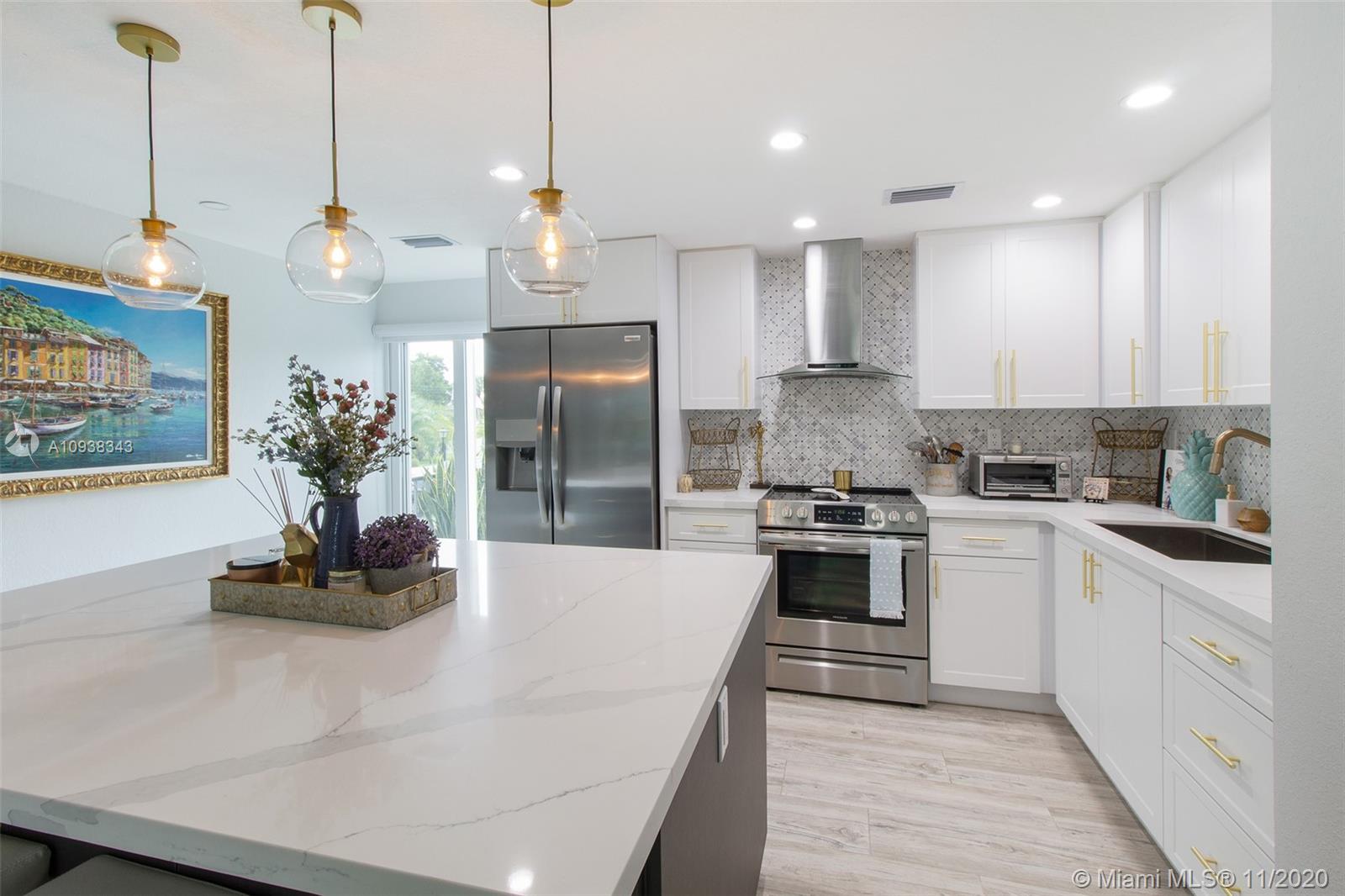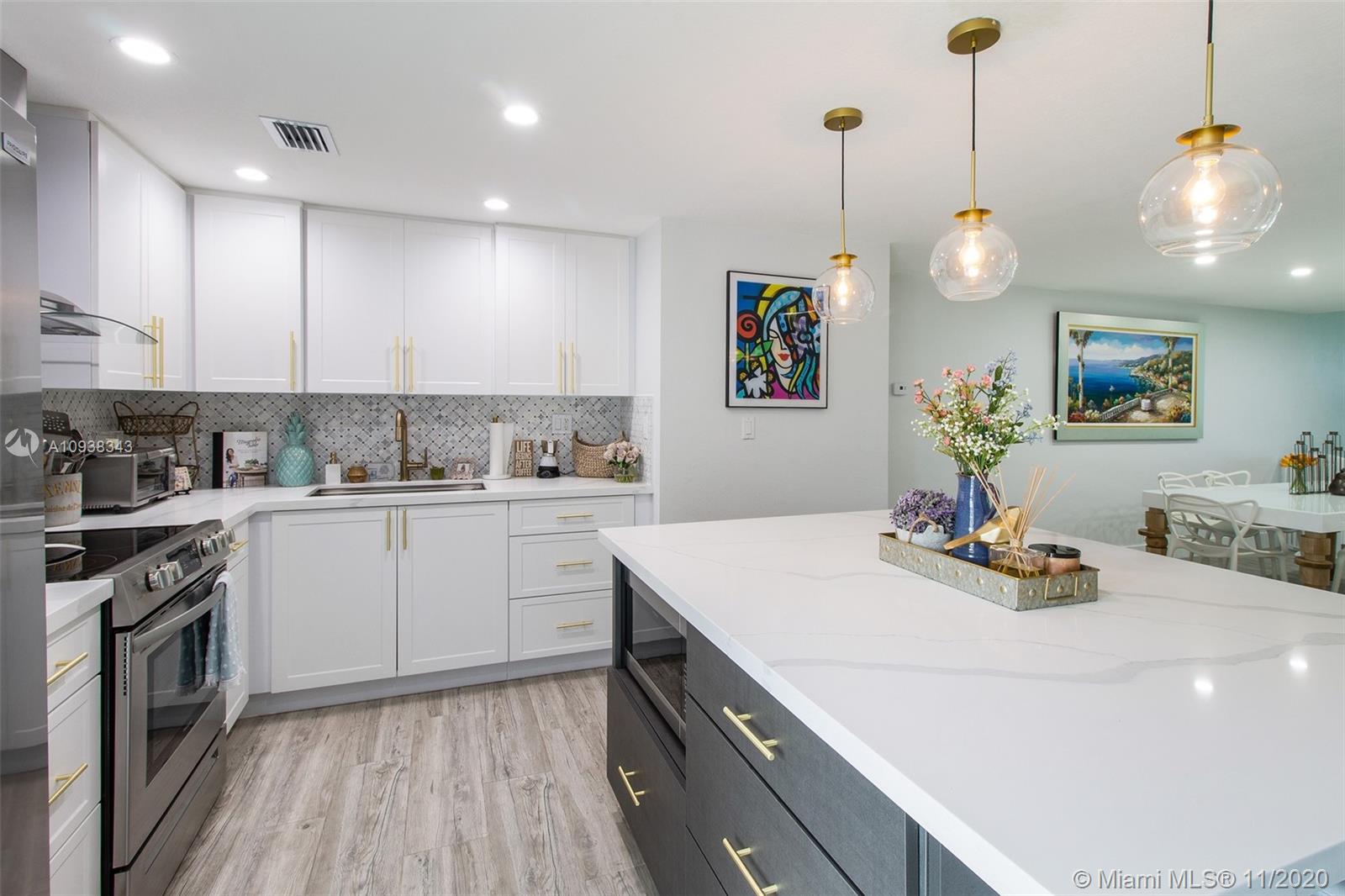 This turn-key, immaculate, NY-style tri-level 3/3 home has been beautifully modernized. Situated on the Country Club of Miami Golf Course that hosted the 1991 PGA tournament, this home's renovation and remodeling shows excellent taste and true attention to detail. There are too many upgrades to list, among which are new porcelain floors, impact windows with high-end window treatments, custom closets, customized handrails, new AC, electric water heater, washer/dryer. The first floor of the unit has full-size kitchen and bathroom and separate entrance. Corporate owners welcome but can only rent out for max of six-months out of the year after owning one year.