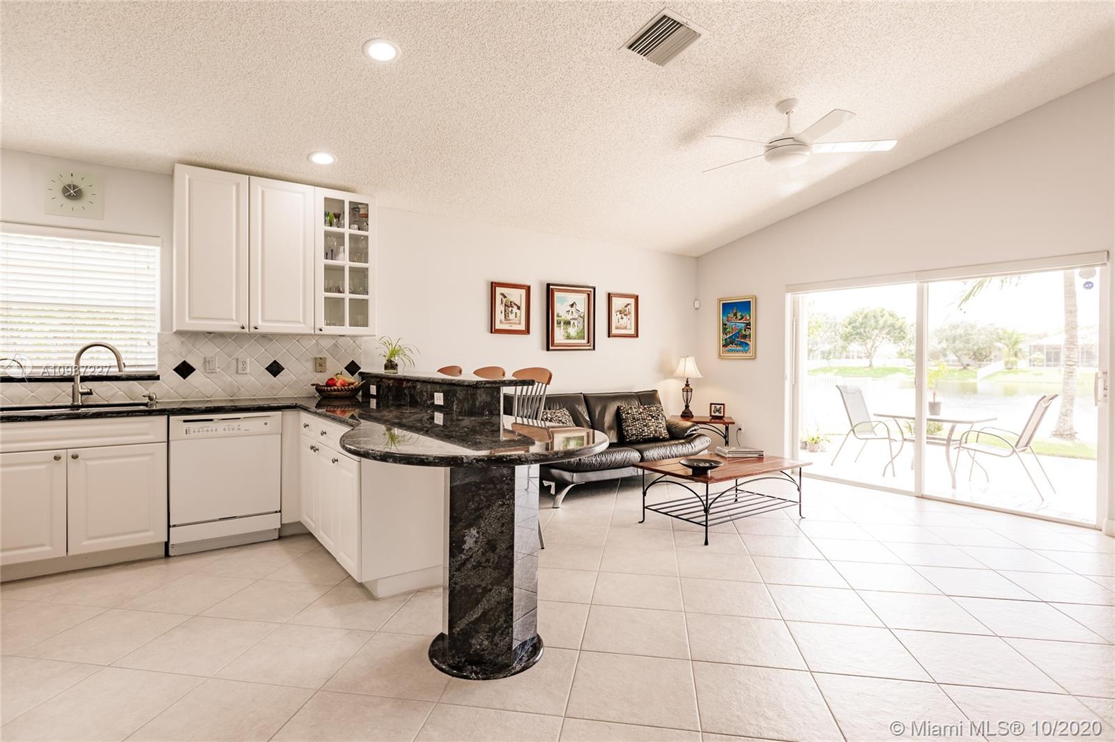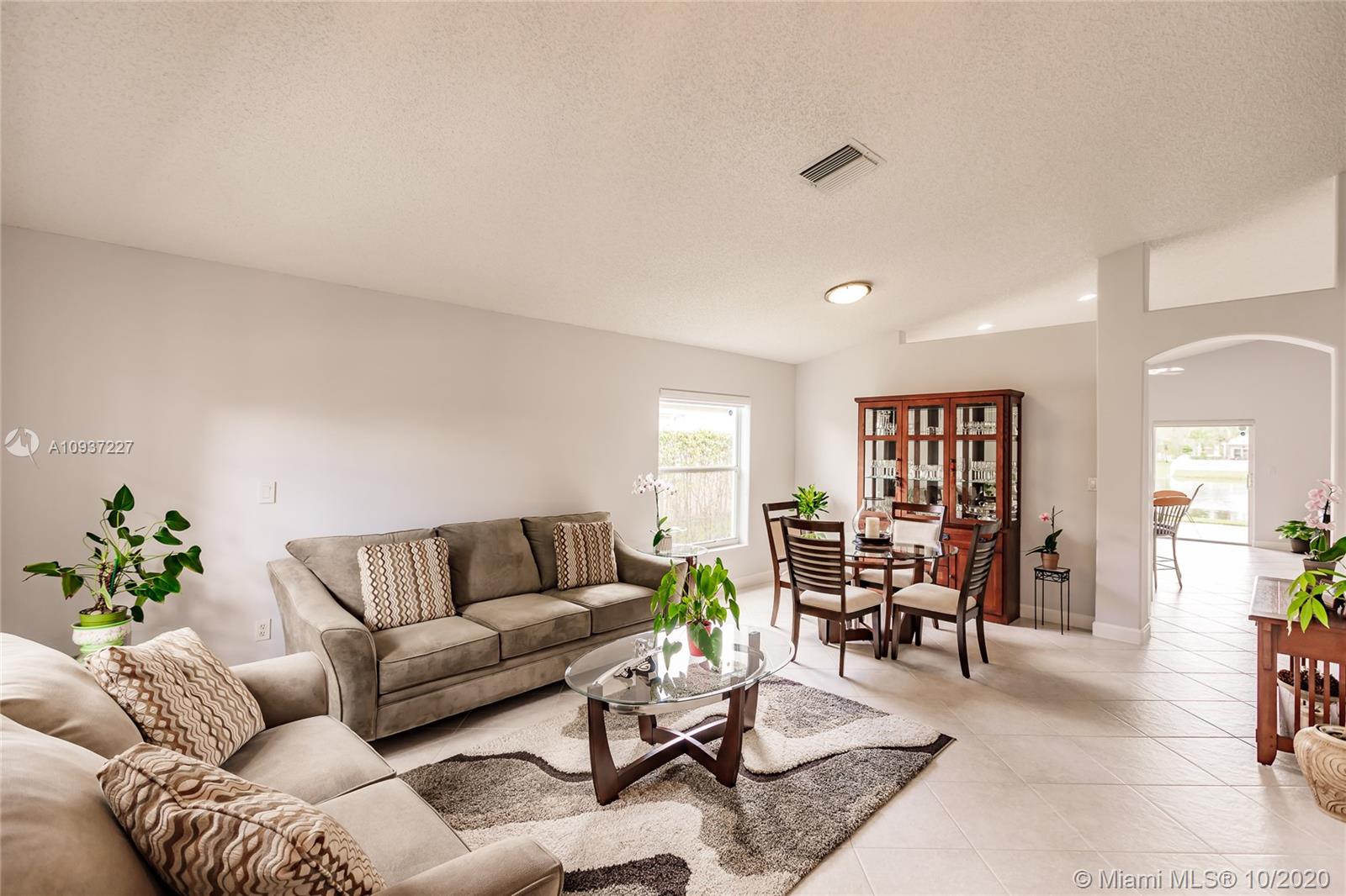 Beautiful, meticulously maintained, lakefront "El Dorado" model in the sought-after and prestigious gated community Pembroke Falls. 4 Bedrooms, 2 Baths (including a convertible bedroom/den/office). Both bathrooms are remodeled with frameless shower doors and new vanities. Custom-built, extended eat-in granite kitchen countertop for easy family meals. Extremely clean and very well maintained with ORIGINAL owner since construction in 2002. “Everything you need” in this gated, resort-style community including clubhouse with resort pool, fitness center, ballrooms, tennis courts and basketball courts. Motivated seller.