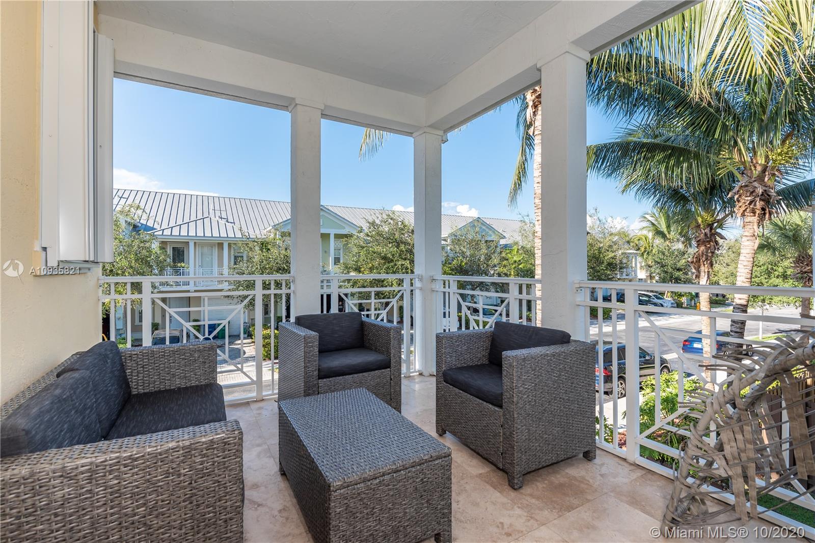 The corner lot home has an ample floor plan w/lots of natural light across the layout that makes it feel like a single family home. Features include hand selected marble floors, updated bathrooms & kitchen, new A/C, recessed lighting throughout, high quality, wood grain tile upstairs, SS appliances, window treatments, a private office. The large master suite upstairs has plenty of volume & sunlight. Its gorgeous walk-in closet w/custom cabinet system. Master bath offers dual vanities, shower & tub. The masters' private balcony w/North & West views, perfect for evening sunsets. Bedrooms upgraded w/built-in closets, window treatment & private balconies. 2 bedrooms are Jack & Jill suites. Half bath downstairs. 2 car spaces & 2 car garage w/lots of add'l storage. Add'l guest parking near by.