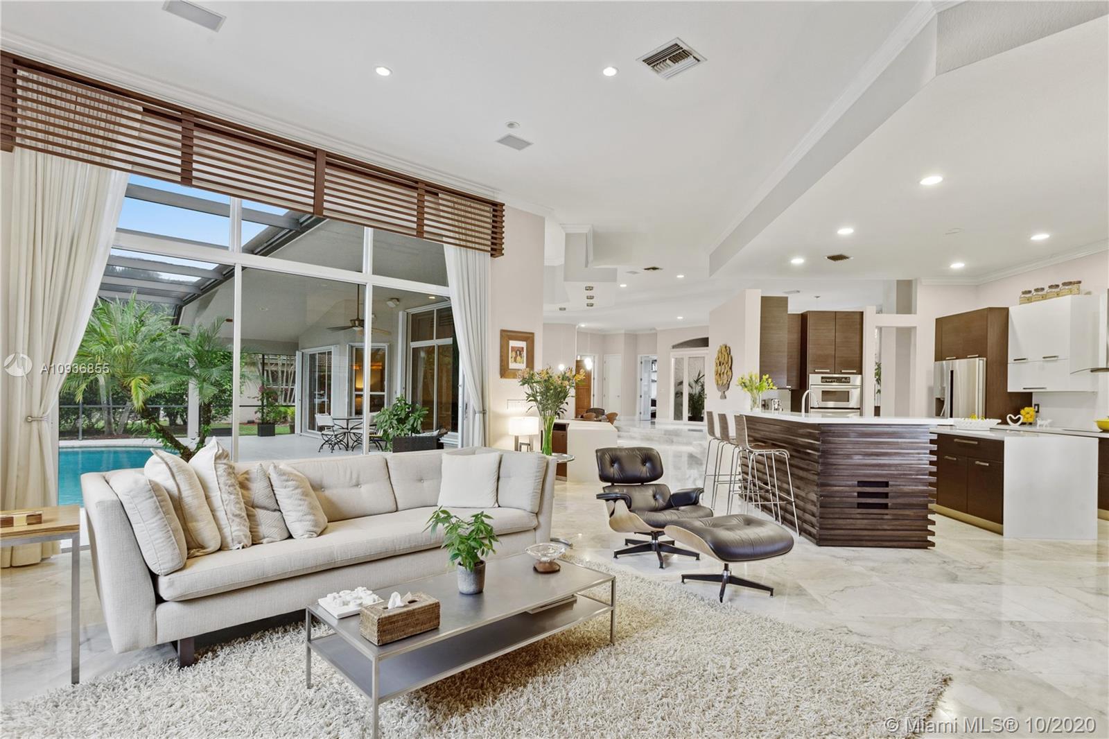 Stunning ONE STORY 4 BED + OFFICE home COMPLETELY RENOVATED and IMPECCABLY MAINTAINED, in the prestigious gated community of Weston Hills Country Club. Open and integrated floorplan, very bright, with high ceilings, and positioned in a large corner lot. Tastefully remodeled, with several upgrades: marble flooring throughout, a spectacular modern kitchen, remodeled bathrooms, all new doors, several custom built-ins, and a beautiful wet bar – PERFECT TO ENTERTAIN! Two new ACs and all new appliances. Amazing Gladiator garage with flooring and lots of storage. New impact front door and accordion shutters throughout. Desirable A-rated public schools, including Gator Run, the most desired elementary school in town. Simply one of a kind, in IMPECCABLE CONDITION AND MOVE-IN READY!