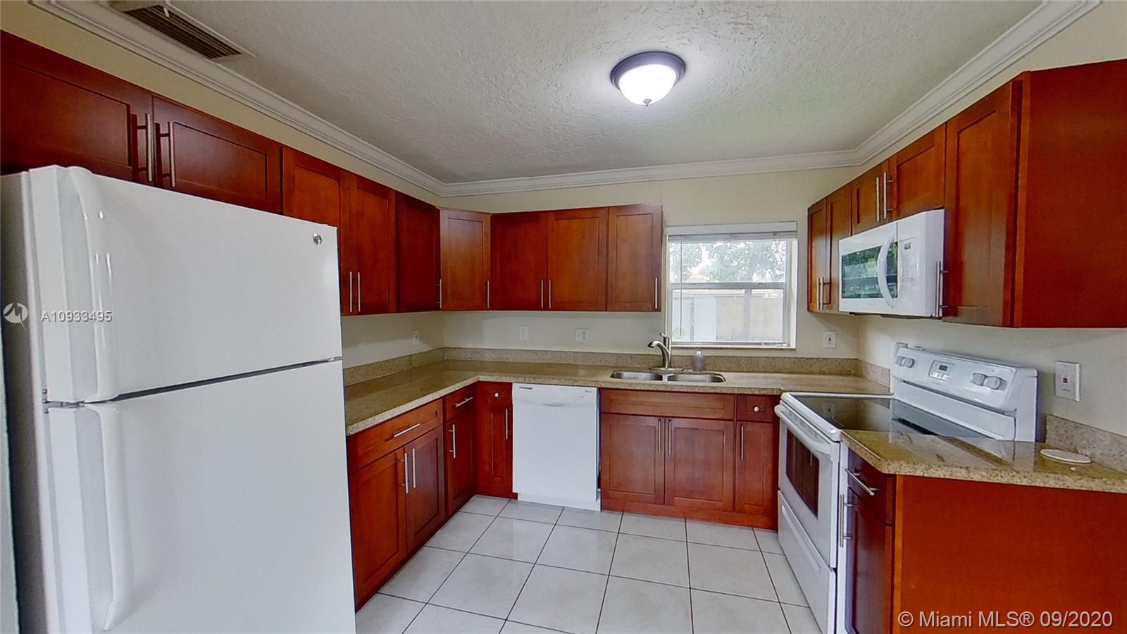 Lovely 3 bedroom, 2 bathroom single family home in the desirable city of Miramar. Centrally located in a quiet neighborhood, near the turnpike, shopping plazas, and restaurants. The home includes central a/c, washer / dryer inside, tile floors, newer roof on main part of the house (2017), large gated backyard with fruit trees, and room to park boat or RV. This is a great family home. Some photos from 2019 used with furniture for illustrative purposes. Actual square footage may be larger than public records indicate. Must see! 3D virtual tour is available in links with capability to measure living spaces.