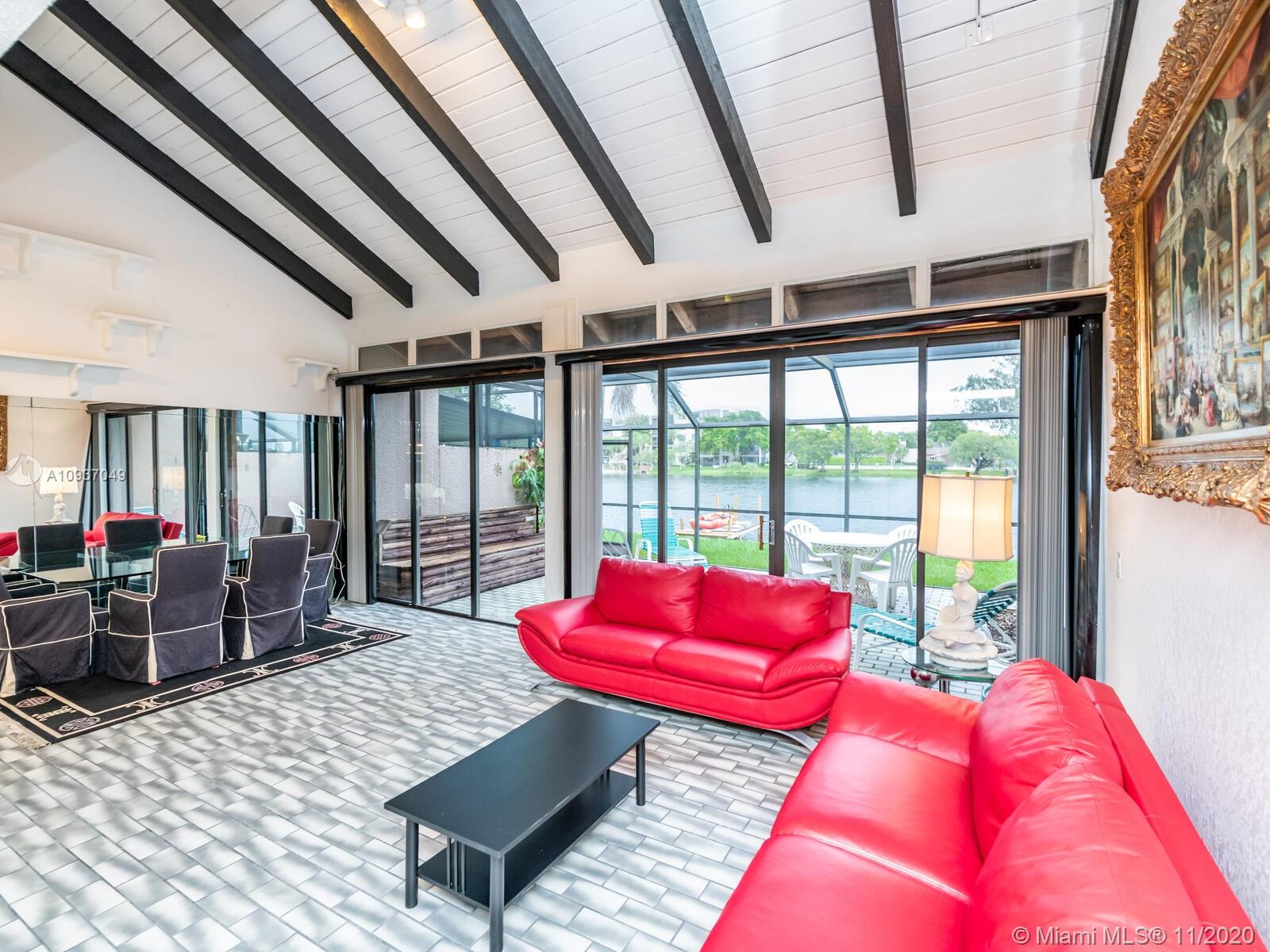 Live in Villas Lakes in the heart of Pembroke Lakes. Spectacular Lake view, 3 bedroom 3 bath townhouse with 1 full bedroom and bath on ground floor. Bright open Living & dining areas with beamed vaulted ceiling and tile throughout the first floor. Large screened patio with panoramic lake view to relax and enjoy nature. Low monthly HOA fee, 24 hr security patrol,close to Pembroke Lakes Mall,hospital & shopping plazas. Amenities include Cable TV,Olympic size pool,tennis courts,basketball and racquetball courts, 2 assigned parking spaces and plenty of guest parking.