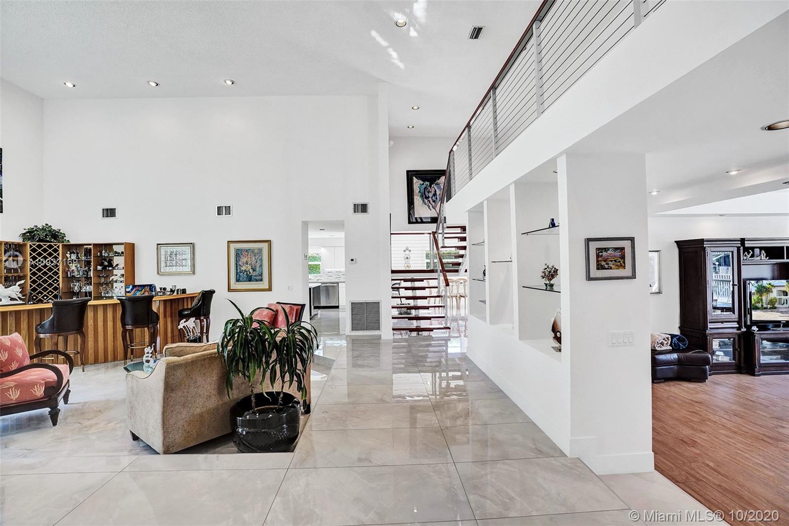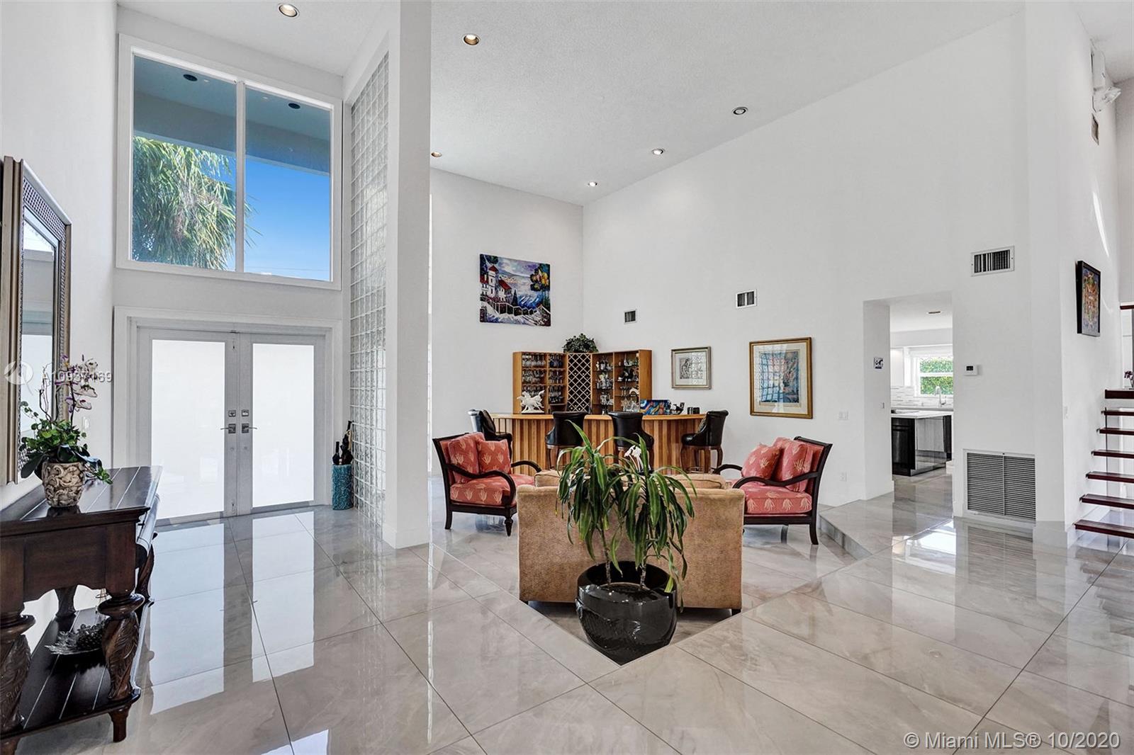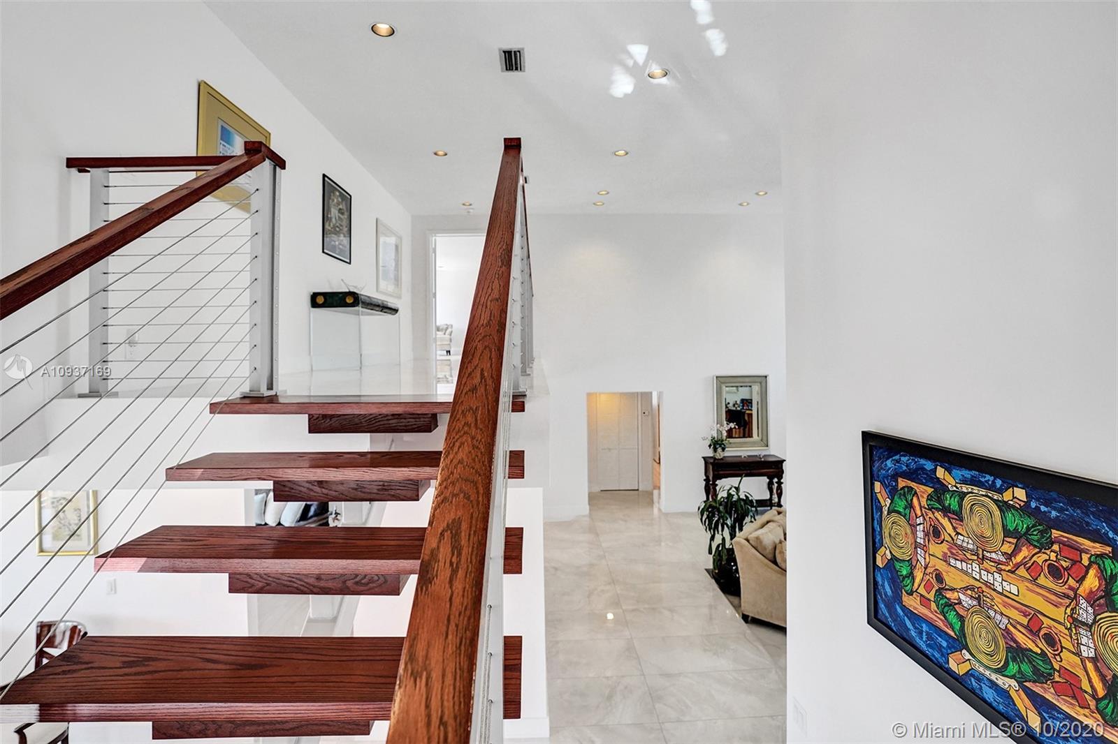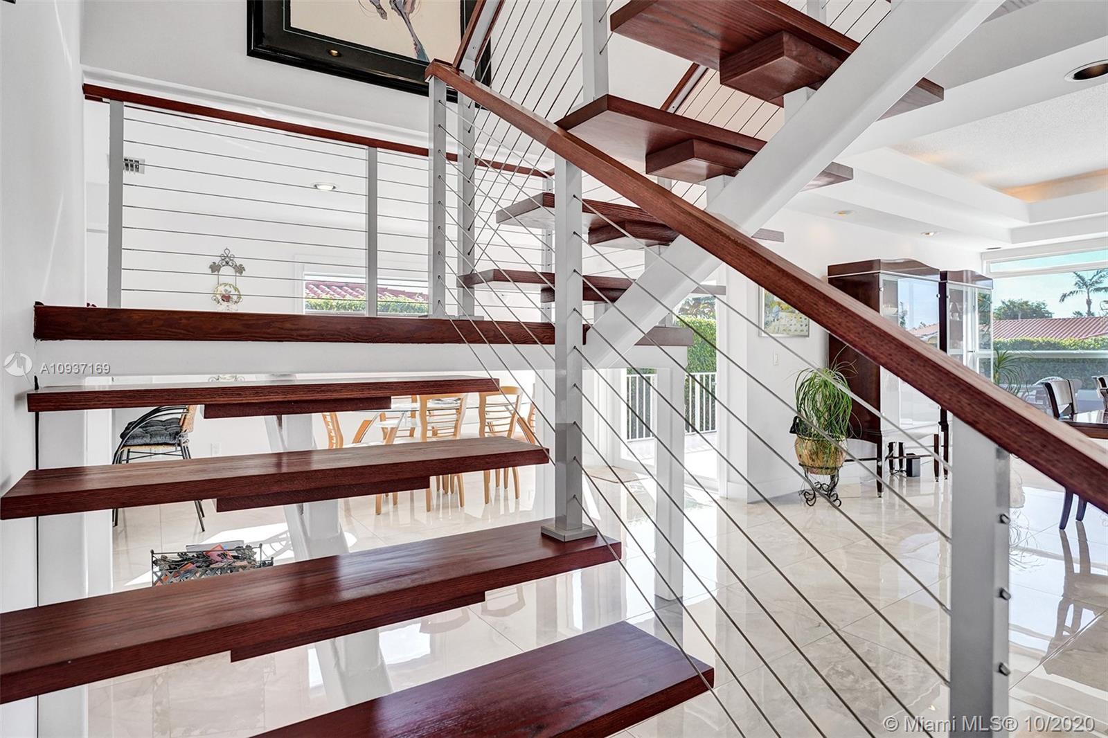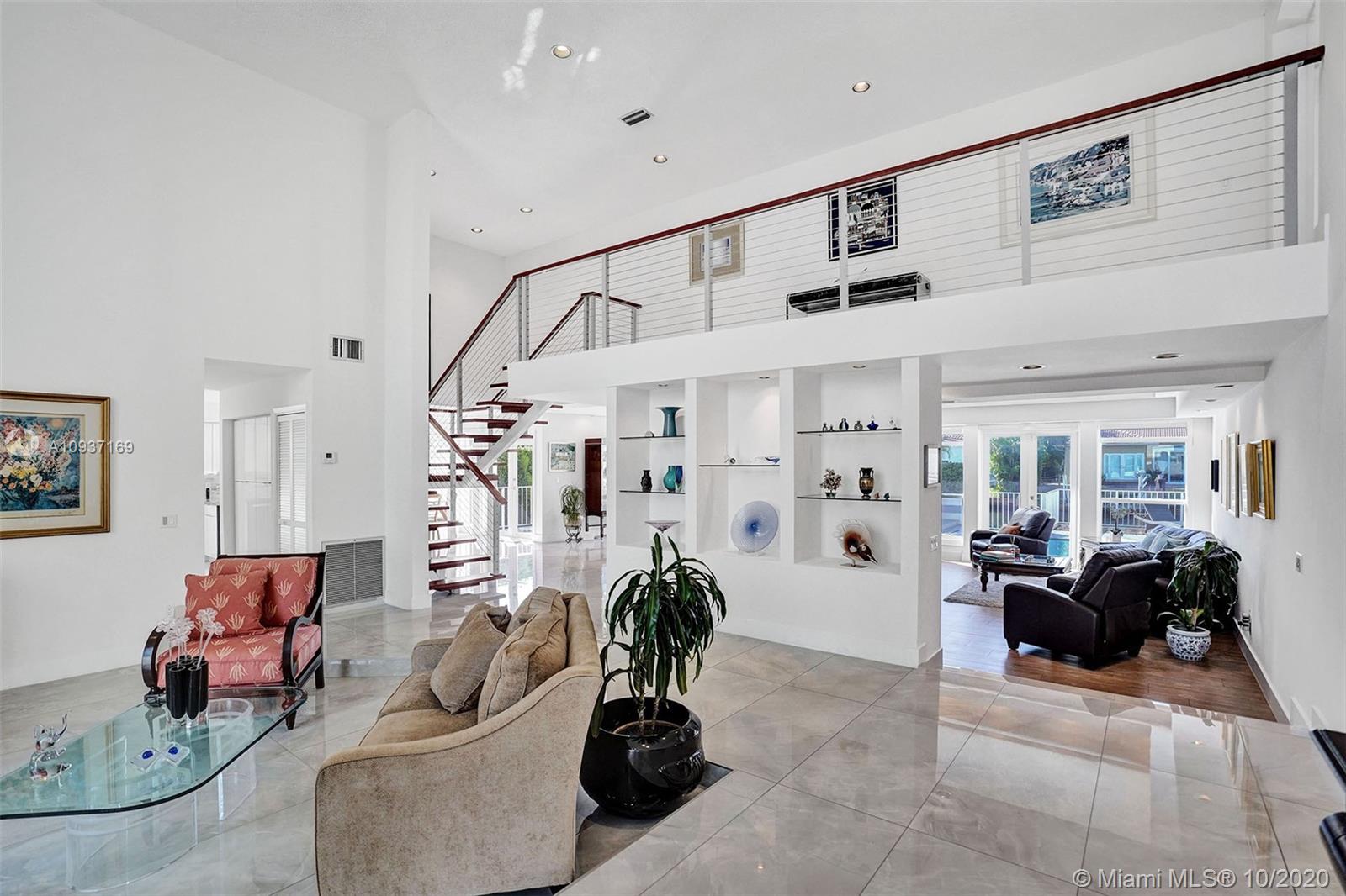 Waterfront~Excellent location~Pristine Condition~Original Owners who built this house~Pride of Ownership~Hurricane Impact Windows & Doors~New Porcelain Flooring throughout~Dream Kitchen~ Volume ceilings and Open Floor Plan~Spacious Outdoor w/Pool, Deck, Dock plus large balcony off Master's Suite. Waterfront and Pool faces, Preferred South. 1st level: features 4 bedrooms & 2 full bathrooms, living room, formal dining room, kitchen, breakfast room, family room, laundry room and large storage room. Upstairs features the master suites of master suites... views and spaciousness... oversized bedroom, closets, bathroom and balcony... loft area as well is located on the 2nd floor.Excellent use of Downlighting & Uplighting.