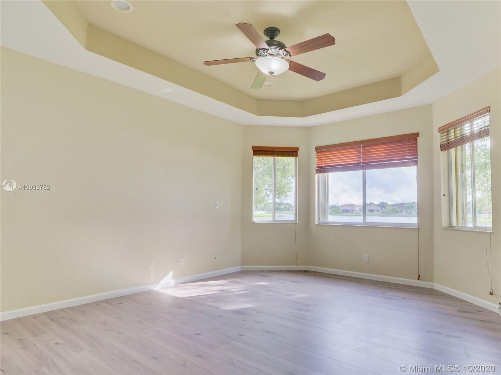 Spacious and comfortable 1 story open floor plan with high ceilings Lakefront - Ceiling recessed Speakers in all bedrooms and family room. Wired for speakers in back porch. Accordion shutters .Covered back patio facing lake-pavers-Driveway -pavers Energy efficient with low FPL bill. New Dishwasher., Gas stove and water heater No neighbor on one side. Empty lot can’t be built on (easement) Newly Remodeled bathroom vanities with marble tops (both bathrooms), Newly installed wood engineered floor in the master bedroom-with three bay windows facing the lake, walk in California Closet 2nd and 3rd bedroom Berber carpet Tile throughout.Wood cabinets and Marble tops in Kitchen Central Vac built in. Separate Tile Shower and bathtub Tiled shower and sliding glass door in second Bathroom