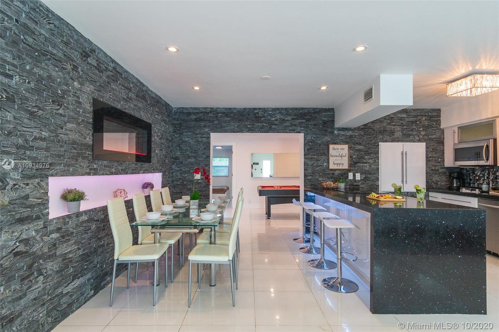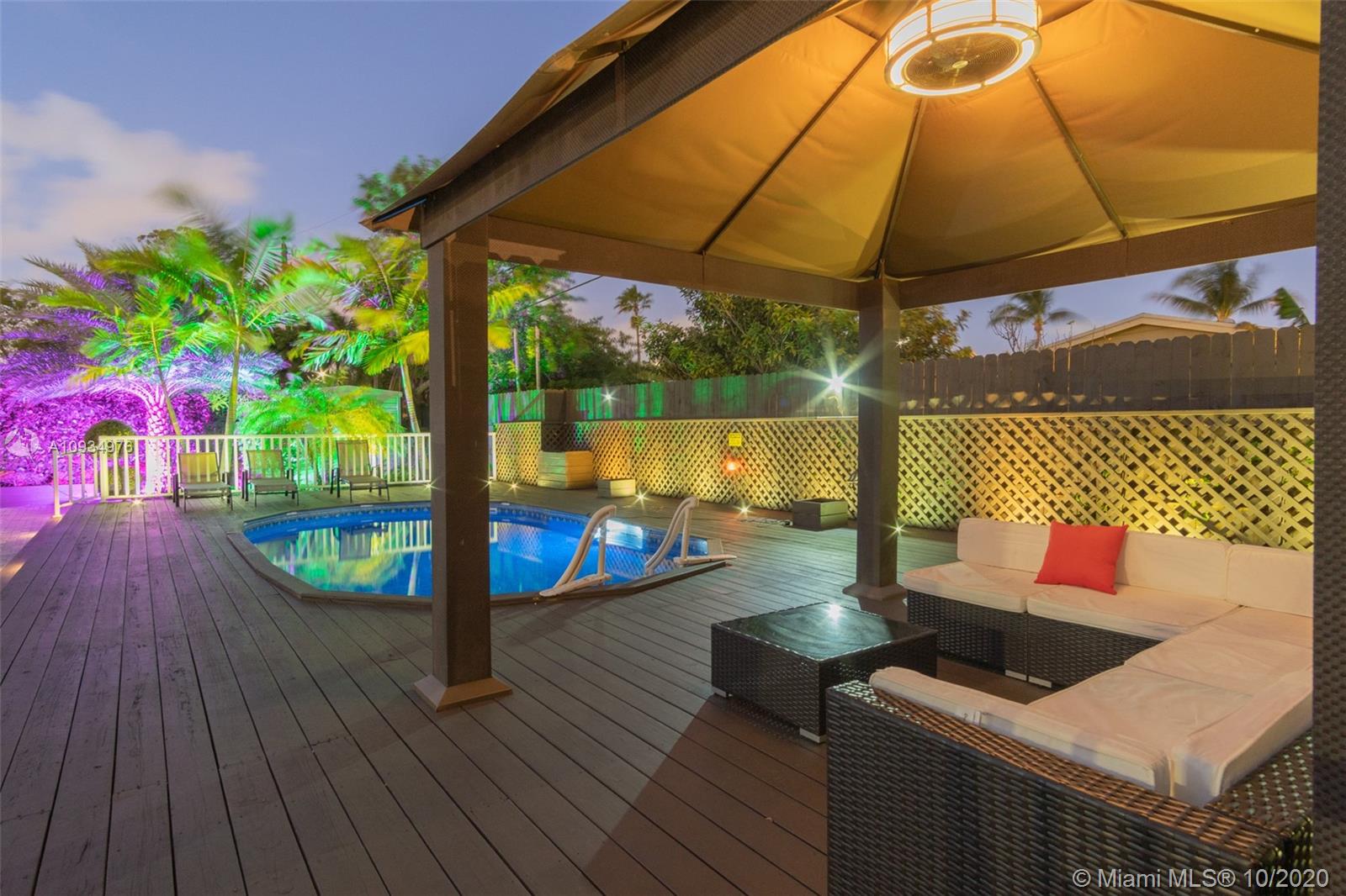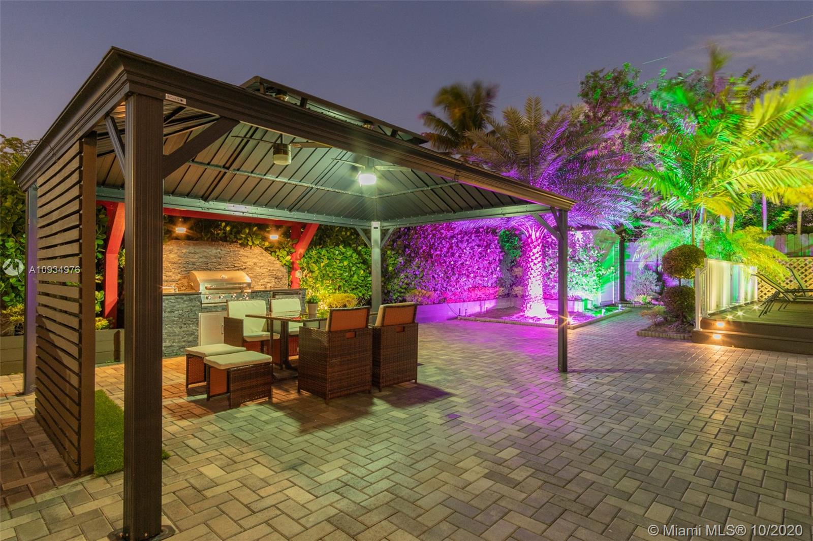 Beautiful home located in a quiet established residential neighborhood, within close distance to synagogue, shops, beaches, Aventura Mall, Gulfstream, A+ rated schools, and I-95. Tastefully remodeled 5 bedroom 2 bathroom + den with 24X24 porcelain tiles all throughout the house, designer quartz stone accent wall in dining/kitchen area, built-in faux fireplace, stainless steel samsung appliances, and washer/dryer room. Maintains all impact windows/doors and custom zebra window blinds throughout every room. Paved driveway and backyard with beautiful expensive landscaping, no expenses spared. This house is perfect for entertaining friends and family with TWO gazebos, custom built-in BBQ grill, pool and newly painted wooden deck! Can also be a great income-producing property.