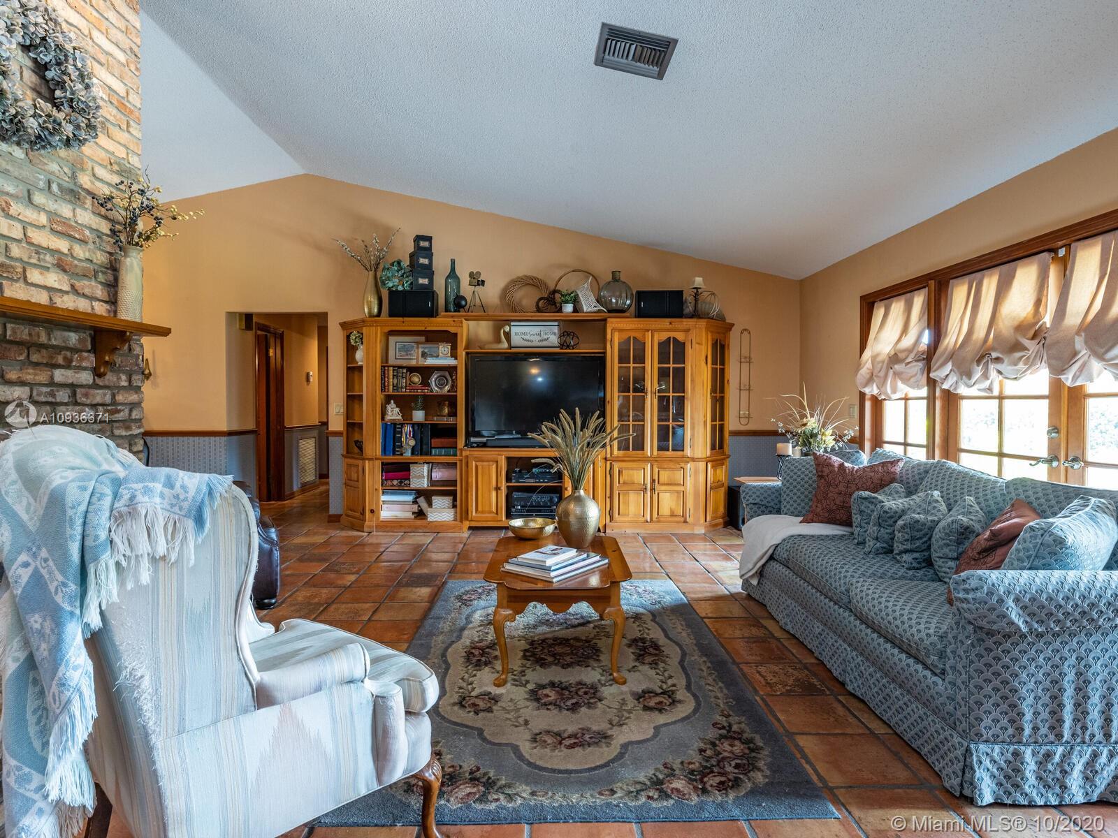 Amazing custom-built single-story 4 bedrooms, 2 ½ family home is located in the highly sought-after Country Club of Miami across the street from the golf course with a large circular driveway. It is tiled throughout, with walk in closets in all bedrooms, one of the bedrooms has a private entrance that can be used as an office and one of the bathrooms has a door to the back patio, laundry room. The home has a two-sided fireplace in a spacious open concept floor plan with vaulted ceiling and large covered patio with built-in BBQ, sink and adjacent span perfect for entertainment. Large lot with room for a pool, space in both sides of the house to store a boat, RV. Centrally located closed to I-75 and the Palmetto. No HOA. Ready for its new owners to build their memories, don’t miss out!