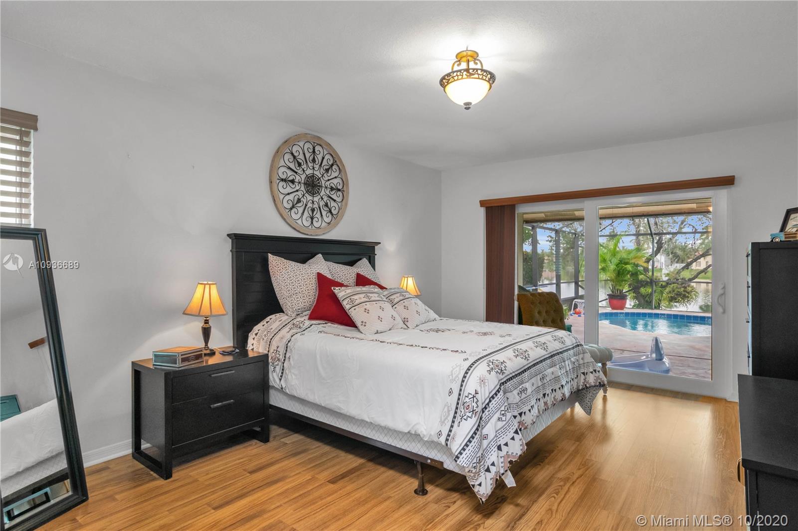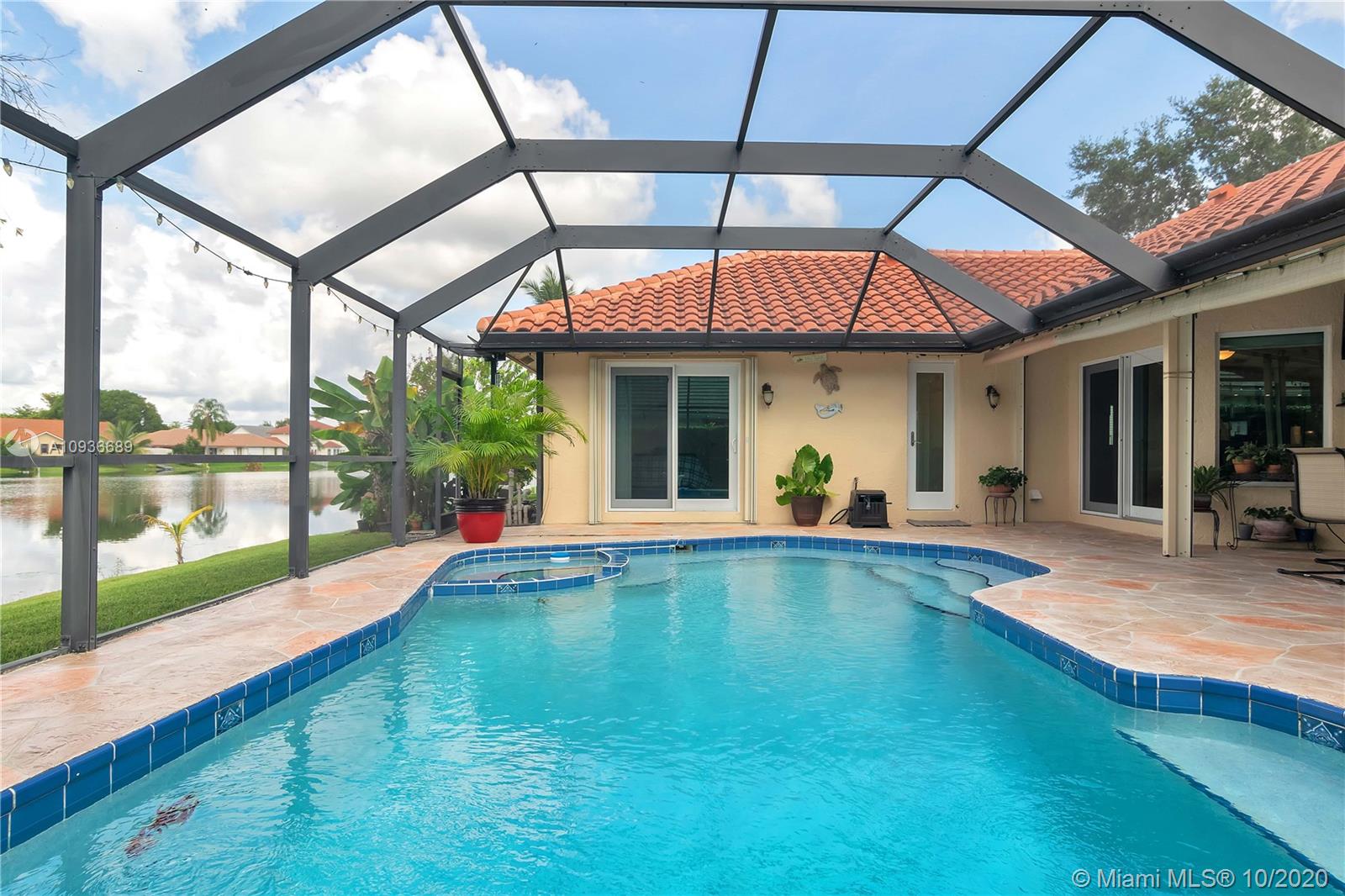 This immaculate one-story home is on a lake-front lot, in the highly desirable community of Shenandoah. Completely updated - new roof in 2018, new water heater, newer central A/C, gorgeous quartz countertops, custom cabinetry & newer stainless-steel appliances in kitchen, LED lighting, entire home is PGT Certified Hurricane Impact - including garage door. Great sized pool with new water pump, large 24x24 tile & wood laminate flooring. Master bedroom is separated from the other rooms for privacy, his & hers walk-in closets, larger bathroom with shower & tub. Spacious living areas that can be used in a variety of ways. This home has a 2 car garage with a full-sized laundry room, and comes professionally landscaped. 3D VIRTUAL TOUR AVAILABLE.