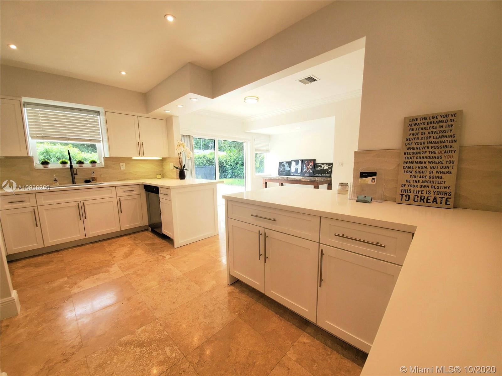 Stunning Riviera home just hit the market in Coral Gables! This beautiful pool home offers 4 Bedrooms 2.5 Bath and 2,253 sq. ft. living space. It features impeccable finishes throughout, from beautiful travertine marble floors, gorgeous great room with cathedral ceilings, multiple exposures and amazing garden views. The updated kitchen boasting quartz countertops, kitchen aid stainless steel appliances, white cabinets, breakfast counters and large nook. There are also plenty upgrades; new roof, tank less water heater, new sod, interior and exterior painting, impact windows and doors, solar exterior lighting and irrigation system. Entertain under the stars and relax near the sparkling pool. Located walking distance to UM, in a highly coveted Gables school district. It won't last long.