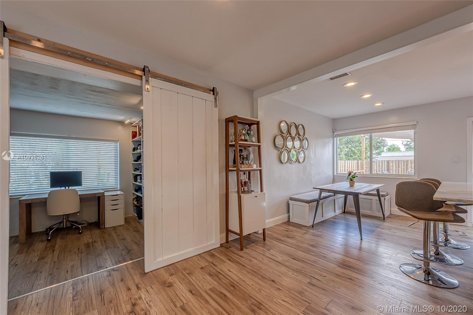 This is a GEM! Completely Renovated home 2 bedrooms, 1 Bath PLUS Large Bonus room that’s a perfect fit for den, home office and or workout space. New PVC plumbing, remodeled kitchen with Quartzite countertops, new bathroom, new electrical wiring and panel, flooring, lighting fixtures, inset lighting, crown molding detail, new Samsung washer and termite treatment all done in 2016. Installed impact windows (2017) and new AC (2018). Outdoor features new resurfacing knockdown texture to the whole house, a patio deck and pavers to enjoy the outside,tons of backyard space that is a blank canvas for entertaining and modern style utility shed for EXTRA storage. Modern coastal style living move-in ready, trending location- walking distance to so many spots. See Broker remarks to show.