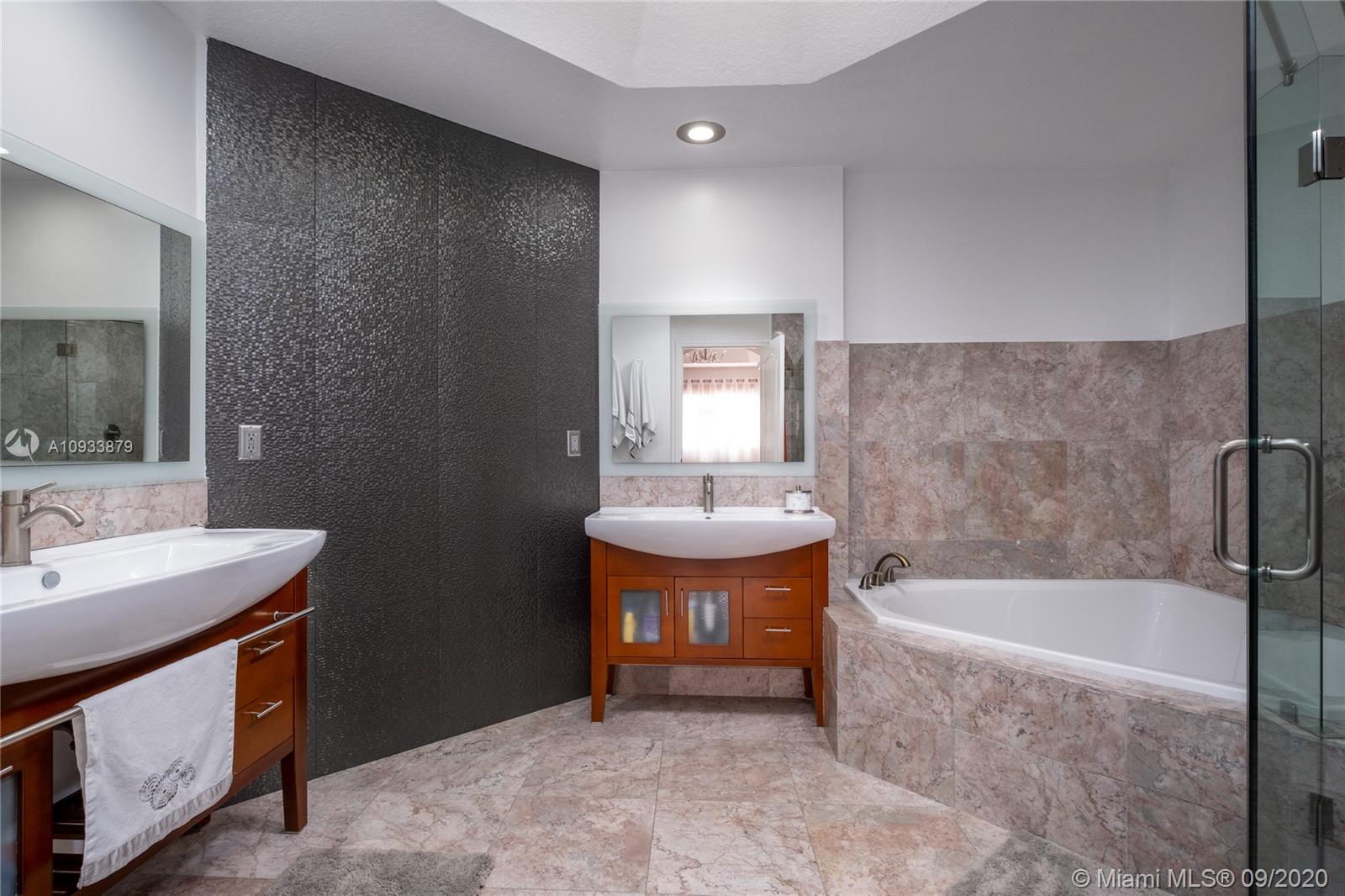 The pictures say it all, on a scale of one to ten this 3-beds, 2 ,1/2-bath house is an eleven. Enjoy the privacy, security and exclusivity of living in Doral Isles, Caribbean,High quality, beige marble floors cover the ground level. Glass railings with stainless steel posts decorate the marble-steps staircase. A powder room restroom boasts of Porcelanosa mosaic. The kitchen has Italian cabinetry made of glass and formica from Zaccariotto Cucine in a beautiful combination of gray and blue colors. Modern illusion blinds are installed on all ground level windows. No Neighbors backyard overlooking the park with garden-ceramic tiles. The upper level has wood flooring in the hallways and bedrooms and marble flooring in the two full baths. Both baths are decorated with Porcelanosa mosaics. New AC