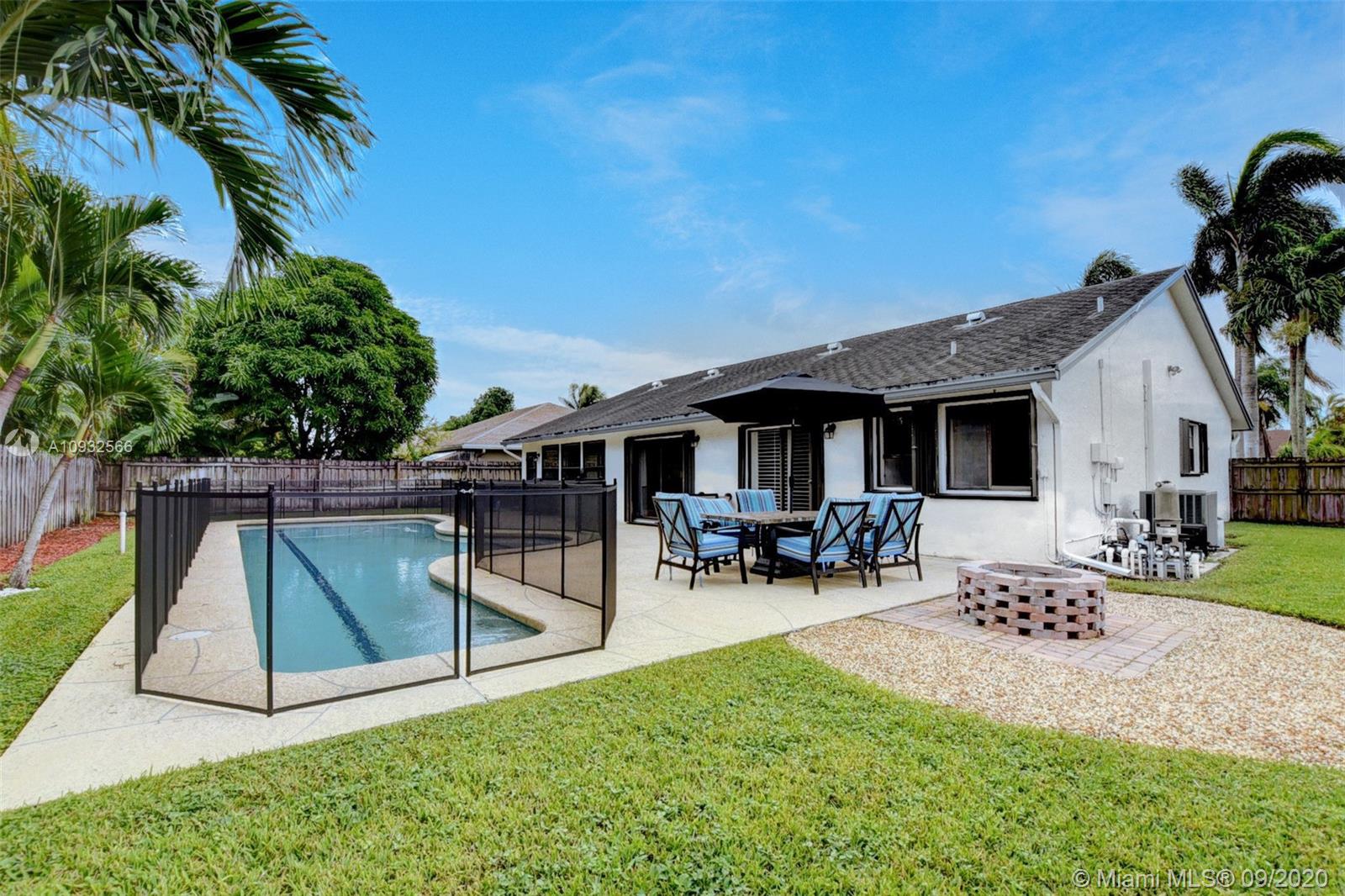 Welcome to this lovely corner lot home in Boca Fontana! This 3 bedroom, saltwater pool home, really has it all! Vaulted ceilings in the main room, open floor plan, updated white kitchen with beautiful countertops, fully fenced yard, 2 car garage, in an awesome school district. All updates were done 2018 including guest bathroom with marble countertops, light fixture, engineered hardwood floors, and baseboards. Popcorn ceilings removed throughout. Each bedroom closet has full build-outs. This very well cared for home has full hurricane protection. Glassed in Florida rooms add extra outdoor space to enjoy the large back yard and pool. Most furniture is negotiable. Kids playhouse, Life Save Pool Fence, generator. Low association fees include cable, community tennis courts, community pool.
