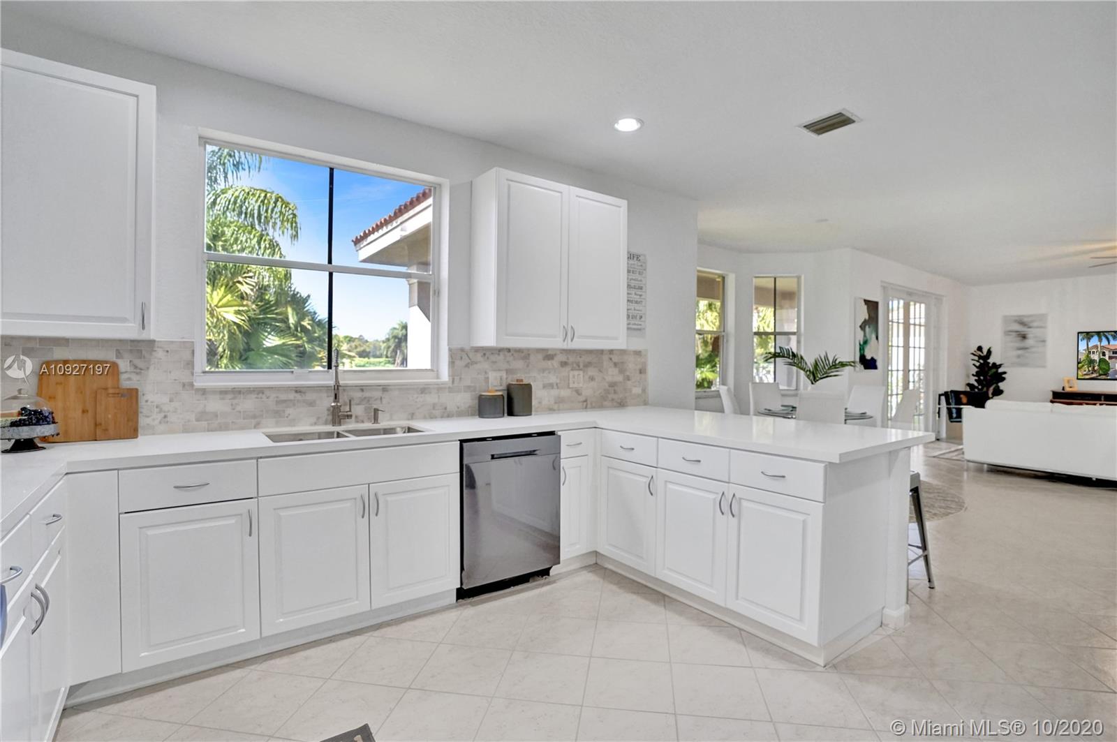 Simply stunning home in Weston Hills Country Club with 7 bedrooms, 4 full baths with one bedroom downstairs and 3 car garage. Home has been beautifully remodeled and is presented in move in condition. Sleek and modern gorgeous white kitchen with white quartz counter tops, marble backsplash and new top of line black stainless steel appliances. Upstairs has a new modern wood flooring in all bedrooms. Remodeled master bathroom with new shower. Huge master suite with walk in closets and adjacent office/den. Huge back yard with covered patio and beautiful tranquil lake views and with plenty of room to built your dream pool. If you are looking to avoid remodeling and move in right away this is it! Be part of one of the best communities in Weston with grade A schools. Simply won't last!