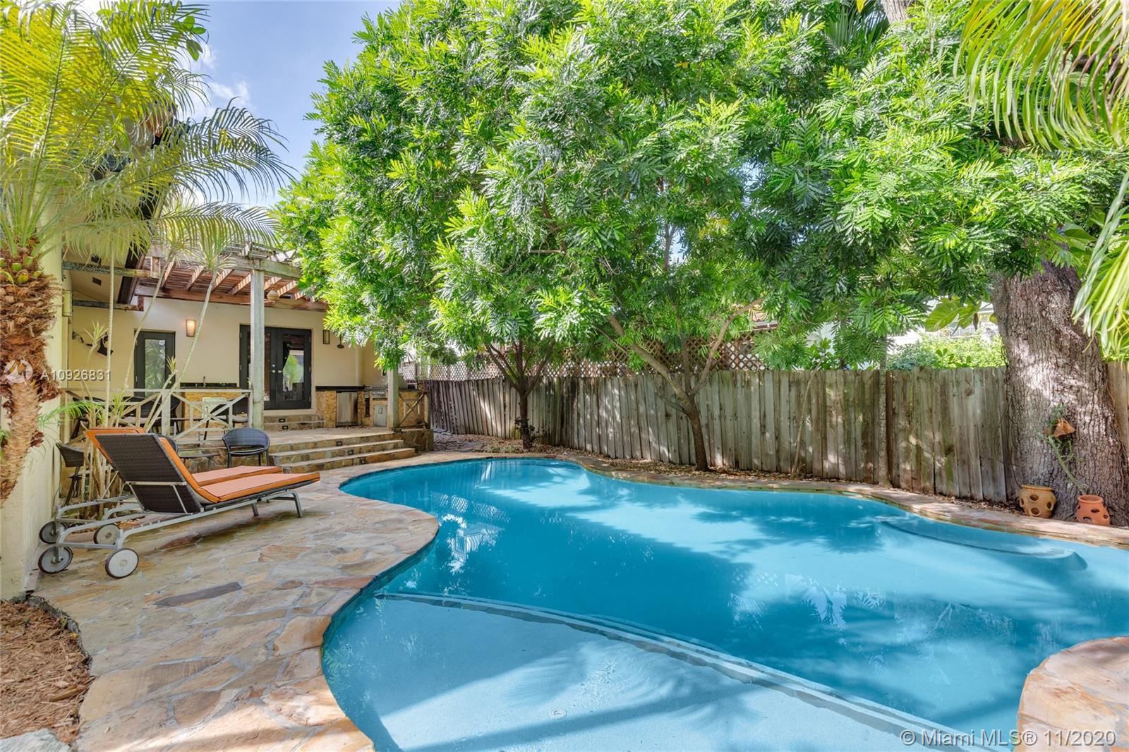 Dive into the famous Miami Lifestyle with this tropical Pool Home located in the South Grove, just minutes from Downtown Miami, Beaches, beautiful cafes, boutiques and marinas. A custom iron gate leads you into this private Oasis with custom kitchen granite countertops, wood cabinets, center island & bar. Impact windows throughout. Oversized master suite leads to the free form pool and patio. Additional features include high coral rock wall for privacy, gourmet outdoor kitchen and cabana bath along with a 2 car garage. The house is a newer built so newer plumbing and electric already in place. 2 living areas that flow beautifully to an entertainer's dream backyard with built in summer kitchen and gazebo as well as yard space to play. A Beautiful Miami Home.