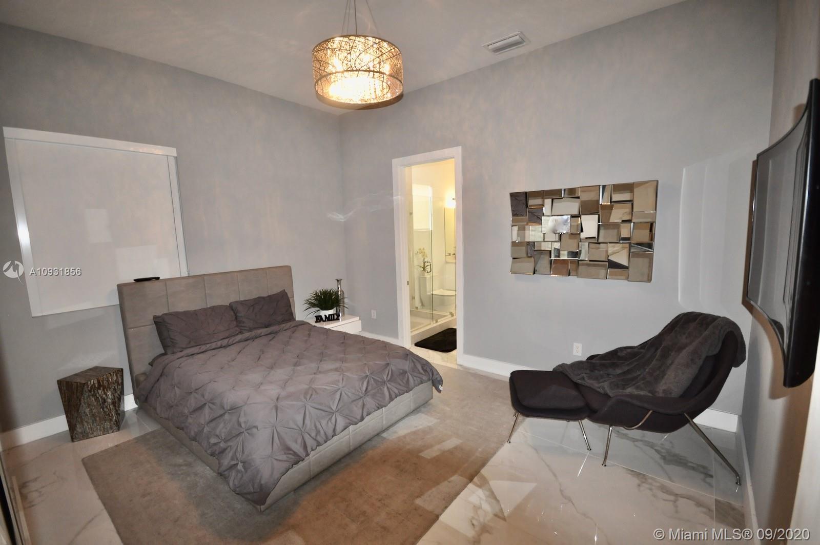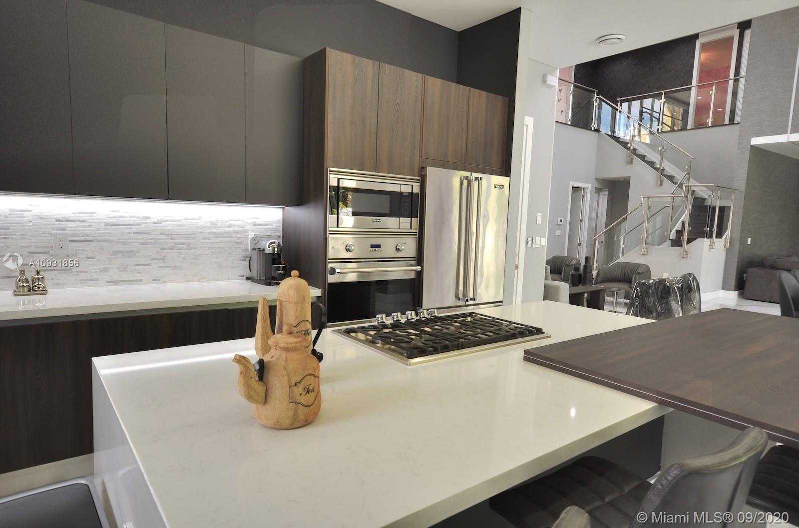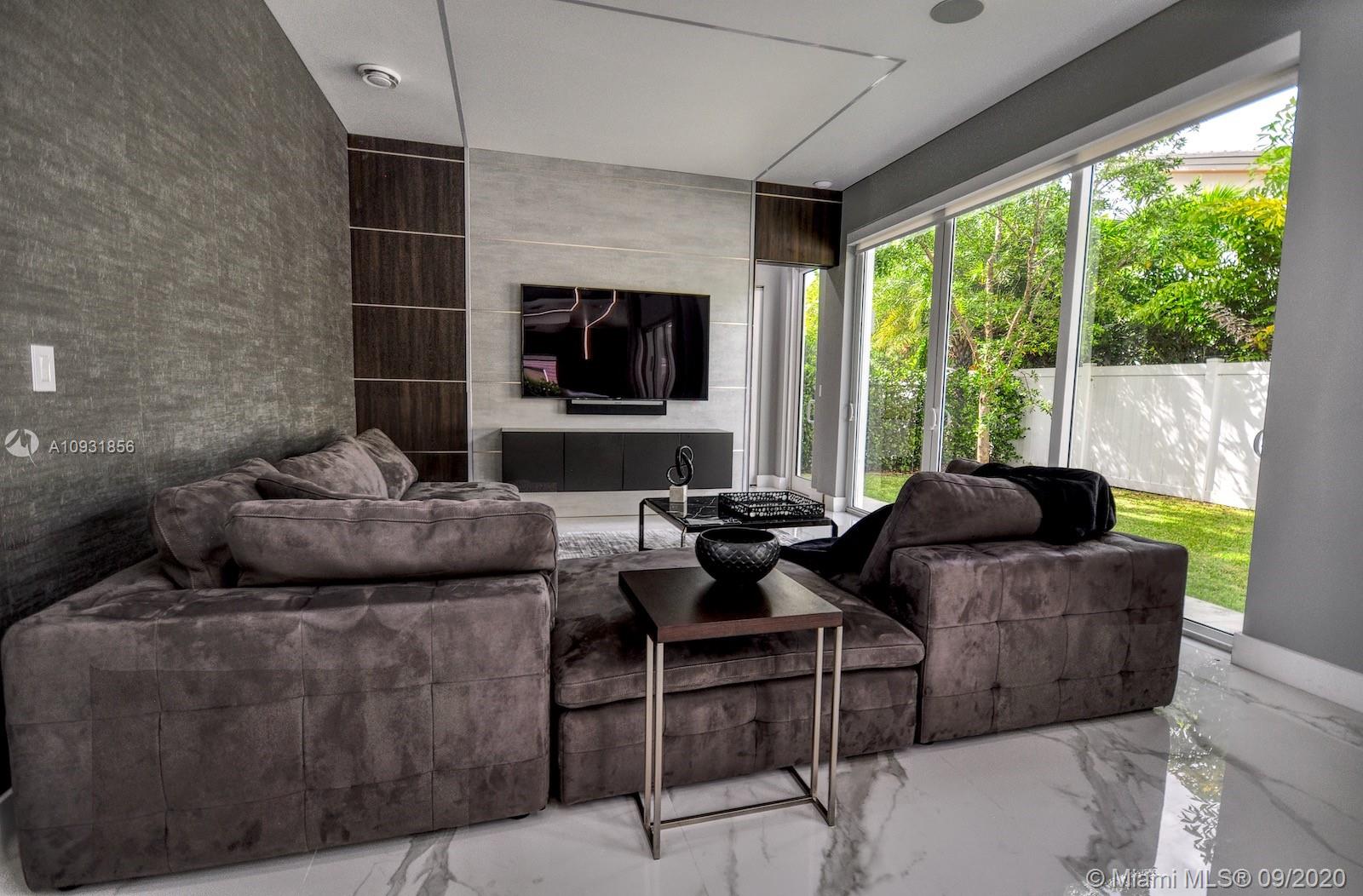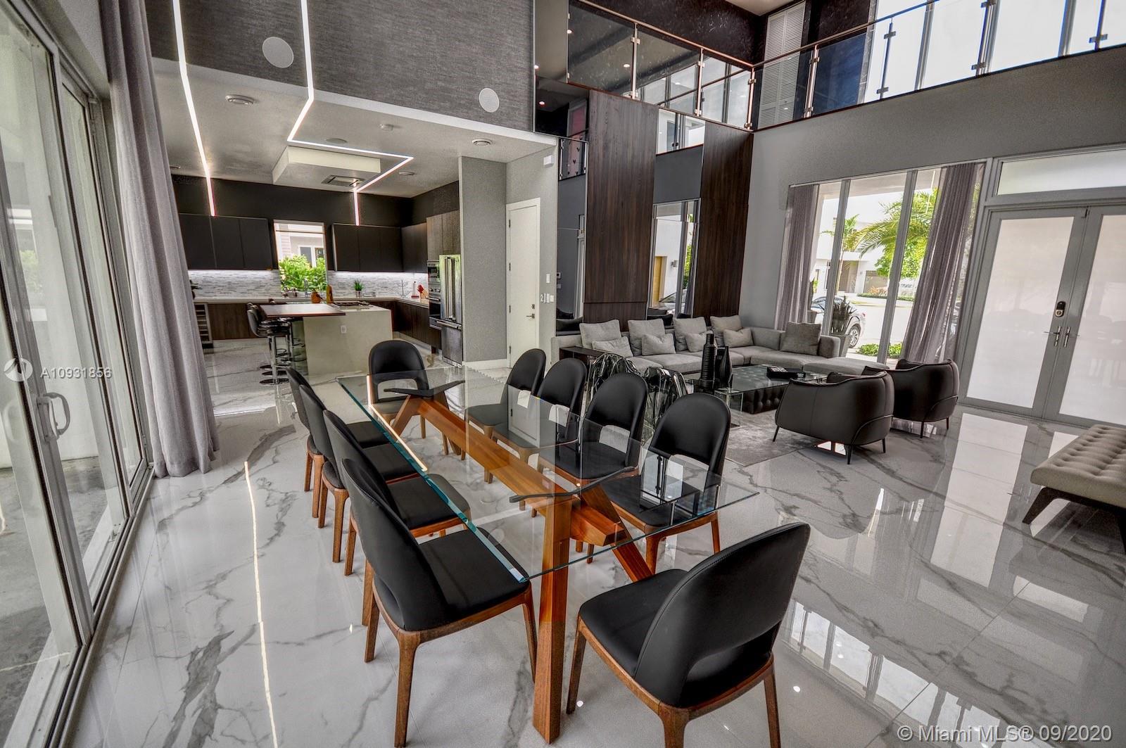 FULLY FURNISHED BEAUTIFUL 5 bed 5.5 bath CORNER Home in the exclusive contemporary community Modern 75 in Doral. OPEN FLOOR plan, 1 bedroom & 2 bath on the first floor and elegant interior architectural details, high ceiling, impact window & doors, Porcelanato floors on 1st floor and Wood Floors on 2nd floor and stairs, SMART HOME, Italian cabinetry, quartz counter tops and top of the line Stainless Steel appliances, AUTOMATIC CURTAINS and BLINDS, unique LIGHTING DESIGN, full SURROUND SYSTEM, game room, GAZEBO with BUILTIN BBQ. Club house with meeting areas, a fully equipped fitness center and children's playroom, media room and kitchenette, swimming pool, spa, sun deck, gazebo area and more. Association includes basic cable & internet, alarm service, security patrol and front landscaping.