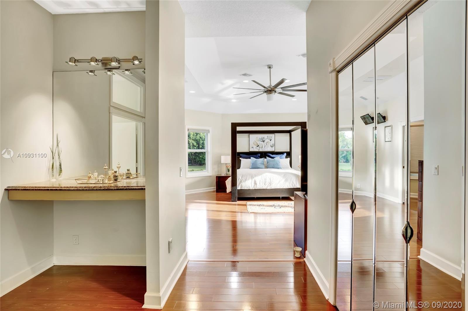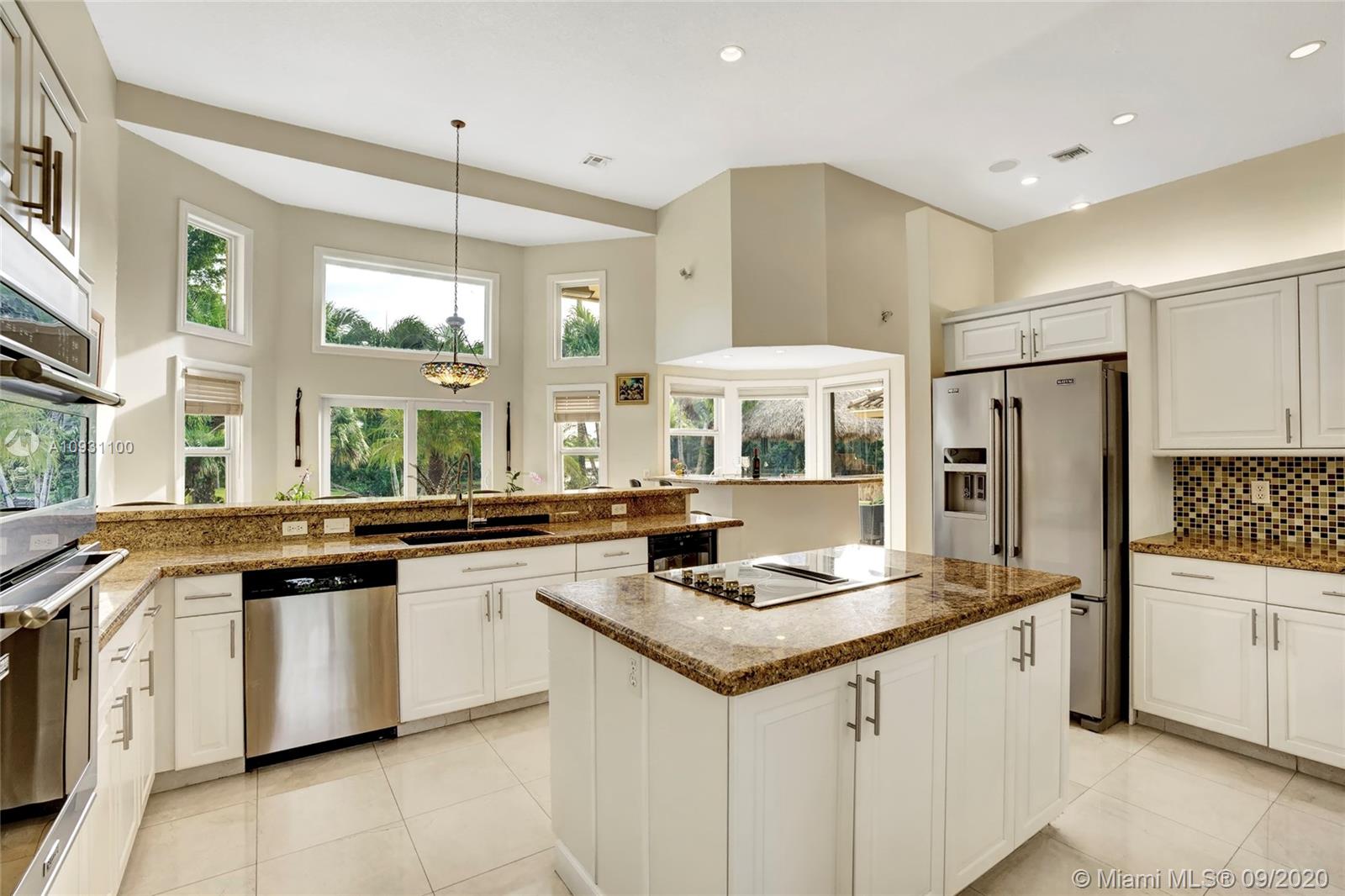 Located in prestigious Whispering Woods, this 4,600 sqft residence features 5 bedrooms, 4.5 bathrooms and a 3-car garage. One of its most breathtaking attributes is the outdoor space and view! Showcasing an exquisite custom pool with spa and waterfall, the lushly landscaped 1-acre lot opens onto a wide, tranquil lake. This spectacular home brings together the perfect blend of indoor outdoor living, complete with Tiki Hut and Summer Kitchen. With its unique ability to function as an intimate home for a family as well as an ideal space to entertain large gatherings, the triple split floor plan features an expansive open concept layout in an elegant transitional style. Other features include a wet bar, 2014 roof, all impact windows and doors, and newer AC units and soaring 16 ft ceilings.