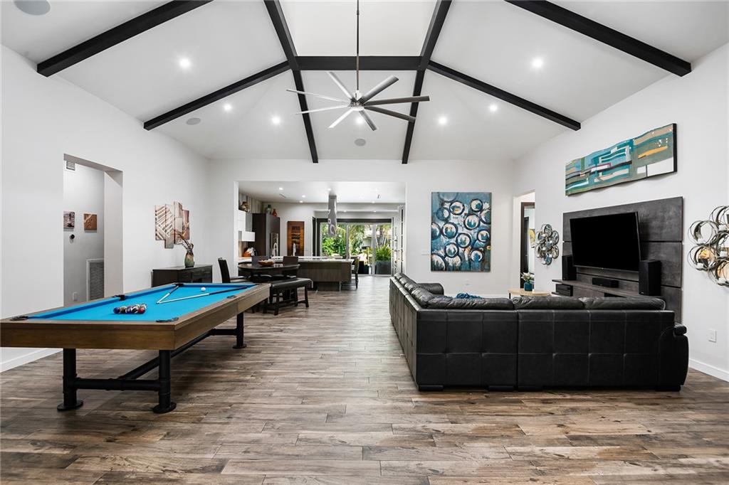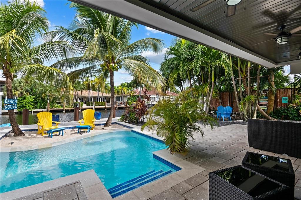 Refined contemporary with an authentic South Florida sensibility, this totally rebuilt (2015) deep water home offers single level living with a grand open concept floor plan. Enjoy the finest outdoor living with a salt water pool and sandy beach located right next to 75 ft of deep water in the secure, patrolled community of Seven Isles. Enter through double doors to a spacious great room with vaulted ceiling centered by an overhead cupola providing natural light. Kitchen with custom cabinets, quartz counters & natural gas cooking. Triple split bedroom floor plan, each with a full ensuite bath & custom closets, plus an office or 4th bedroom. Master bedroom with two walk-in closets & stackable glass doors to the backyard pool/waterway. Master bath with dual sinks, separate spa tub & shower.