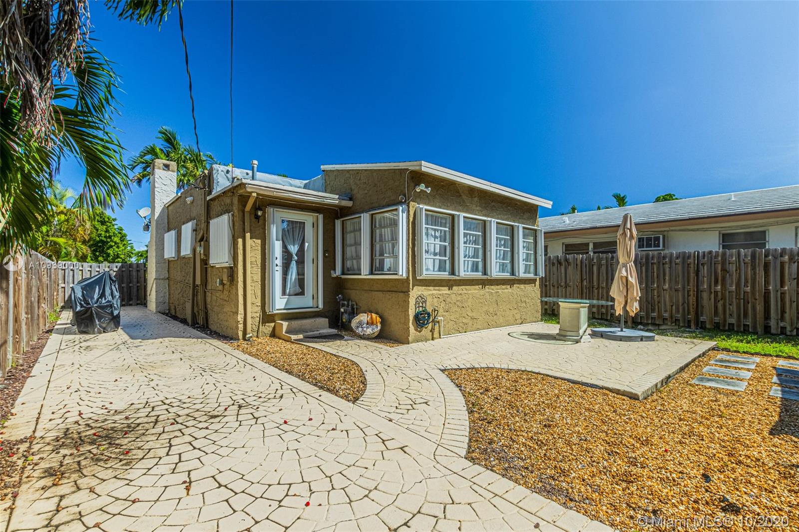 Best priced house in the neighborhood. This charming home is gated and fenced with a beautifully oversized stamped driveway leading all the way into the backyard can hold a up to 4 cars or three cars and a boat. 24/7 ADT and Ring security monitoring system throughout the entire property, which is comprised of outdoor/indoor cameras, door/window/room sensors, motion detectors. Hurricane impact doors, hurricane accordion shutters and renovated roof in 2019. Florida room/sunroom, which can be easily converted into a 3rd guest bedroom, home office, exercise/meditation room, it has a separate AC. The huge backyard hosts a generously sized patio area. Less than 2 miles from the beach. Great investment property can be use for Air BNB or rental income. All investors are welcome. Motivated seller