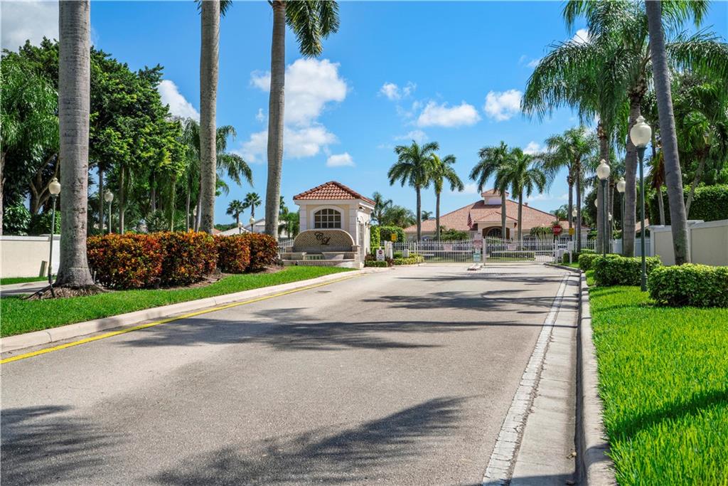 Waterfront views front this immaculately maintained single family home in the private gated community of Crescent Lakes in Boca Raton. Freshly painted inside & out, split bedroom plan (3rd bedroom is den), stunning kitchen featuring granite counters, stainless steel appliances & large eat-in area w/ water views. Vaulted ceilings w/ knockdown, smooth walls, enclosed patio, accordion hurricane shutters, tile & laminate floors throughout, inside laundry rm. w/ new washer/dryer & wired security system. Master suite w/ dual sinks, roman tub, separate shower & large walk-in closet. Updated & maintained by original owner with pride! Garage w/work bench. HOA includes Comm. pool, lawn care, irrigation, basic cable w/ HBO, gated entry, gym, billiard rm & Tennis Court. A Schools & great location.