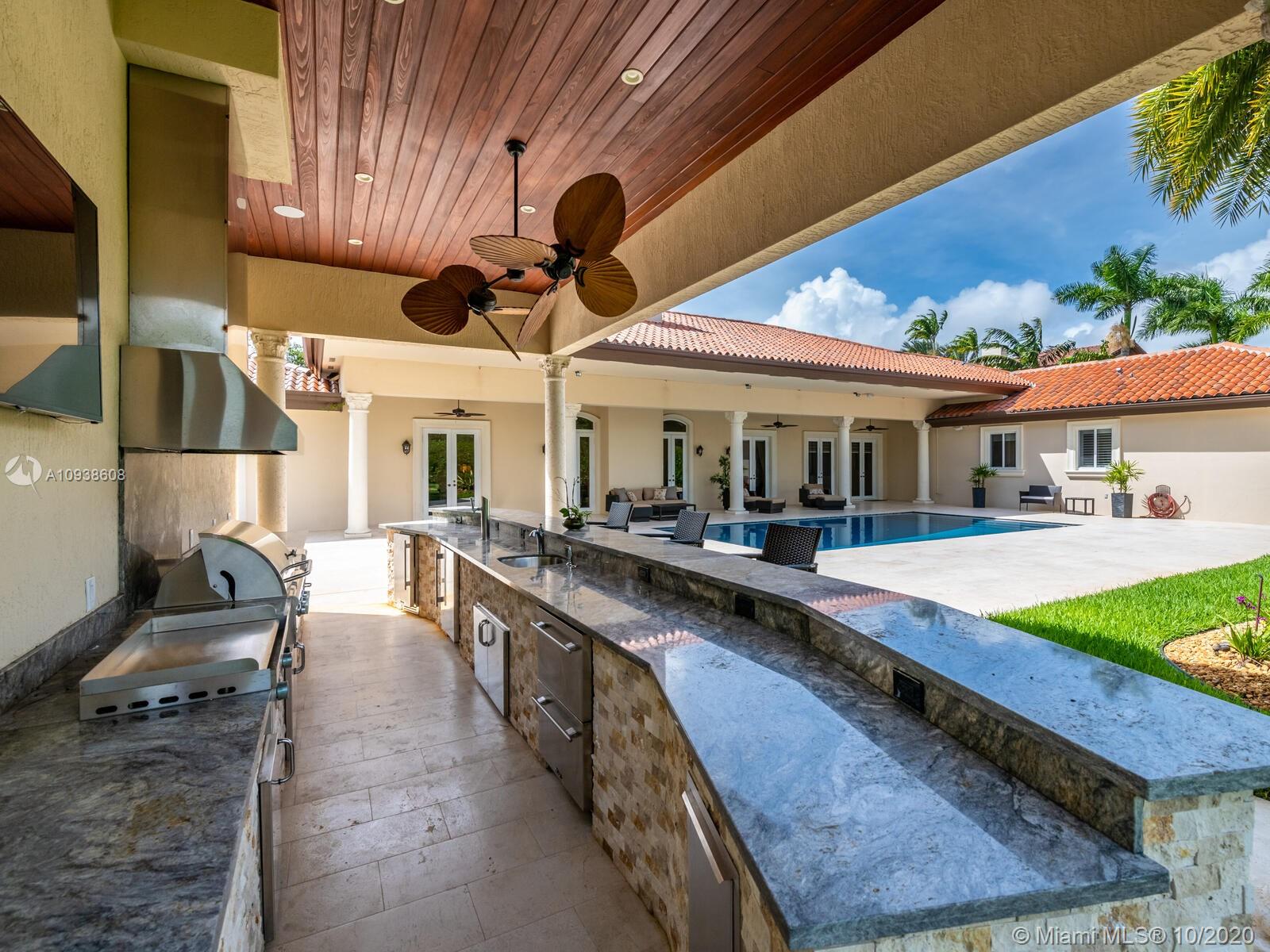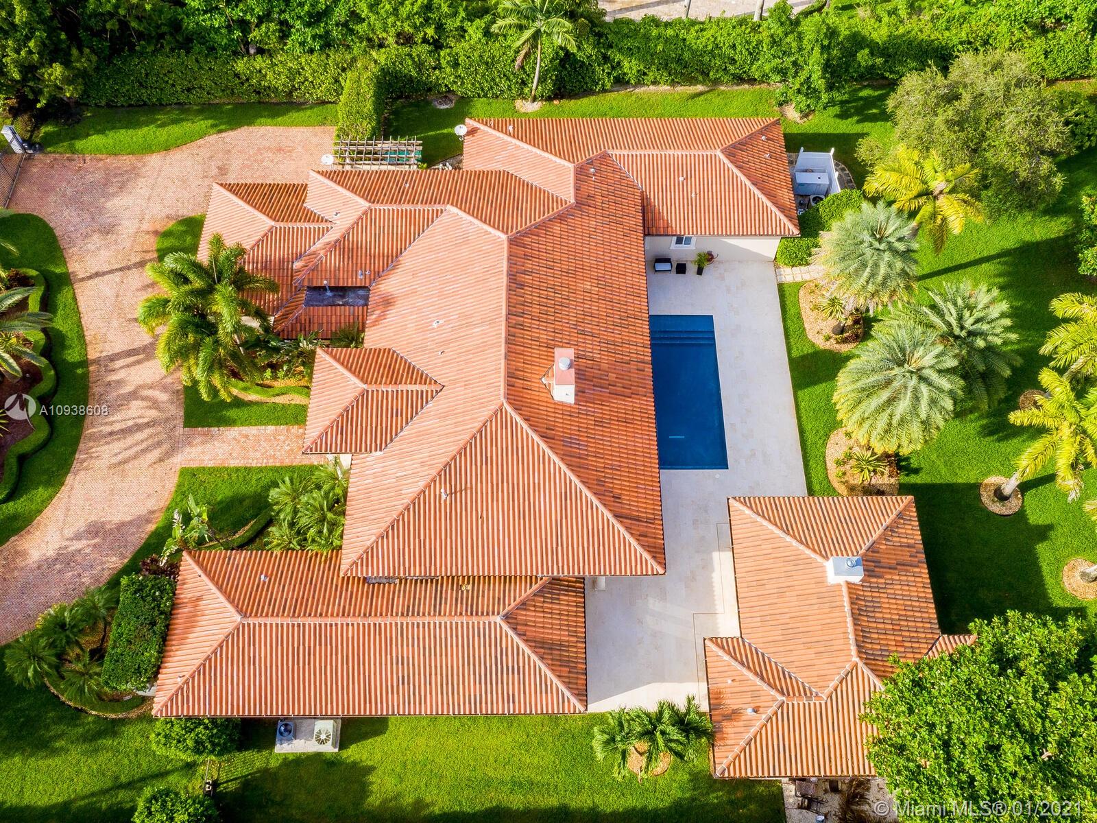 Gated and gorgeous north Pinecrest private one-story acre estate with stunning palms positioned on huge backyard. Enjoy family gatherings with sonos surround sound and televisions while soaking in the sumptuous saline heated pool. Full summer kitchen and 830 sf apartment-sized poolside guest house with full cabana bath. Impact glass, marble floors, generously high ceilings, chef’s kitchen w/gas and full house 2-tank generator. Chicago brick paver motor court entry with 2-car garage offers ample space for guests and any size event. Top rated Pinecrest Schools.