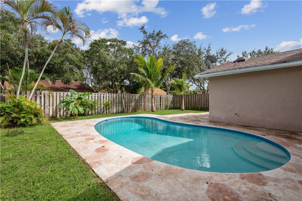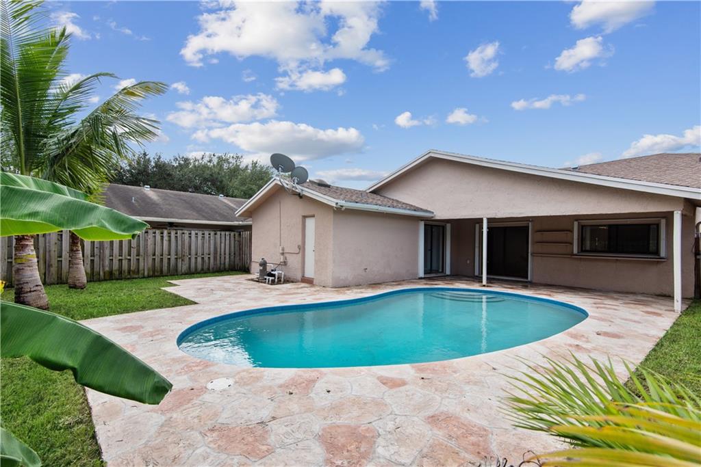 Excellent location in the heart of Coral Springs! Short stroll to "The Walk" offering great family dining, shopping and entertainment. Spacious floor plan with high ceilings offering an open flow through concept, lots of natural lighting, large living space, and updated eat-in kitchen. Service window from the kitchen and cabana bath from the master bedroom offers seamless entertainment to your private covered outdoor patio and pool. Master bedroom with dual sinks, built-in walk-in closets, and walk in shower. Other features include manicured landscaping, two car garage, interior freshly painted, and so much more!