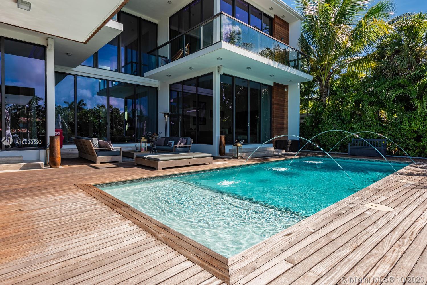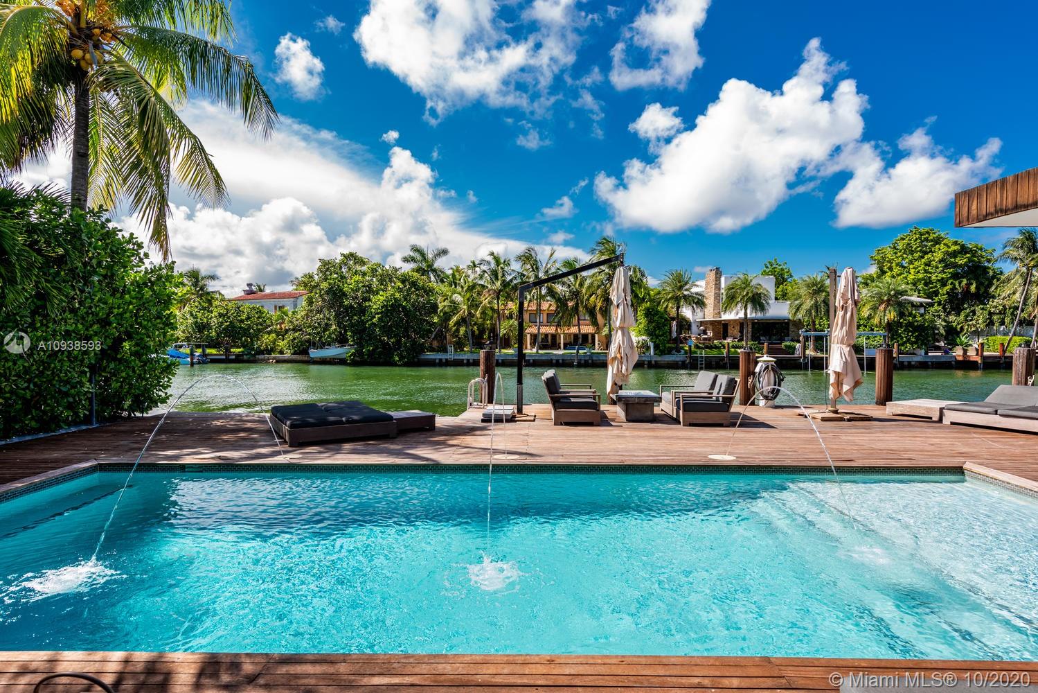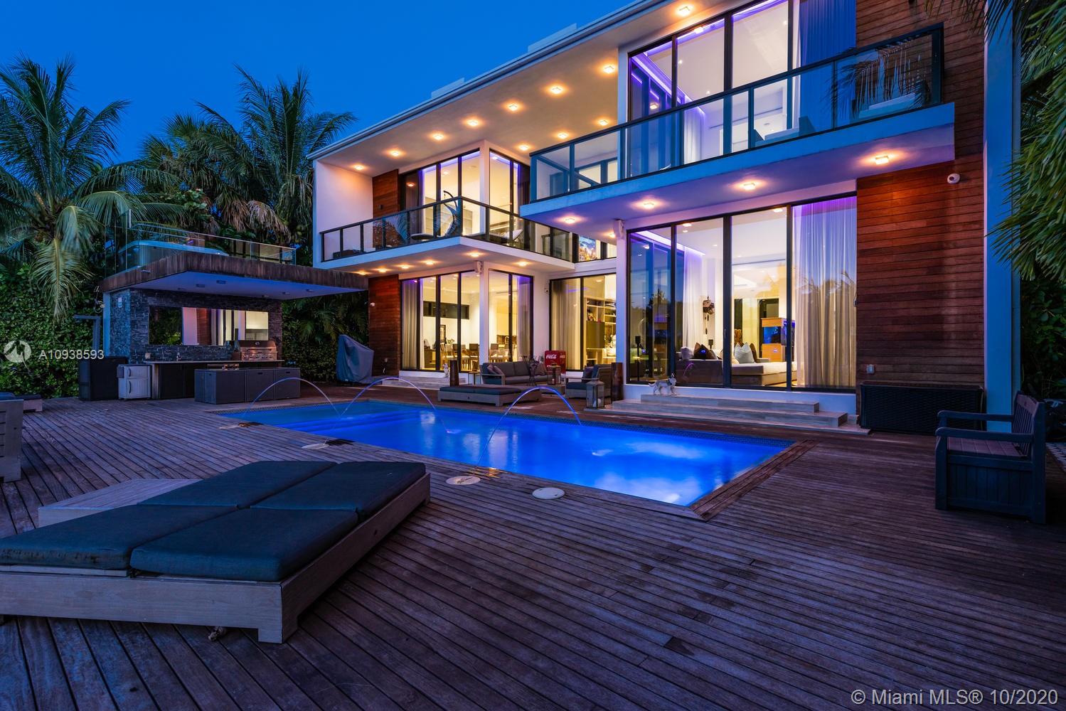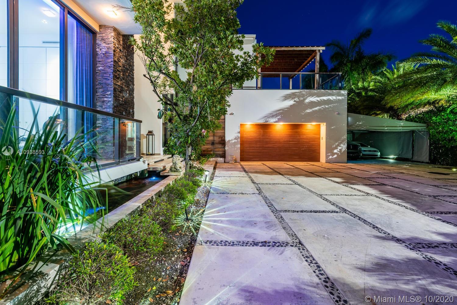 MODERN COMFORT MEETS RESORT-STYLE SANCTUARY. Designed by Cheoff Levy Fischman and built in 2016, this luxe waterfront masterpiece is perfectly nestled across from Miami Beach Golf Club with 80 ft on Biscayne Waterway. This breathtaking spacious, light-filled home reveals clever, multi-faceted design with seamless indoor-outdoor living and intimate privacy throughout. Features: Lutron Homework Lighting; 28 ft living room ceiling; gourmet Subzero-Wolf marble kitchen; 12 person dining room; wide-planked French oak flooring; stunning owner’s suite with full marble slab finishes; and parking for 12 cars with a 4-car AC garage. An entertainer’s delight with outdoor terraces, covered open air summer kitchen, lush pool, cabana bath and rooftop hot tub to savor spectacular sunrises and sunsets!