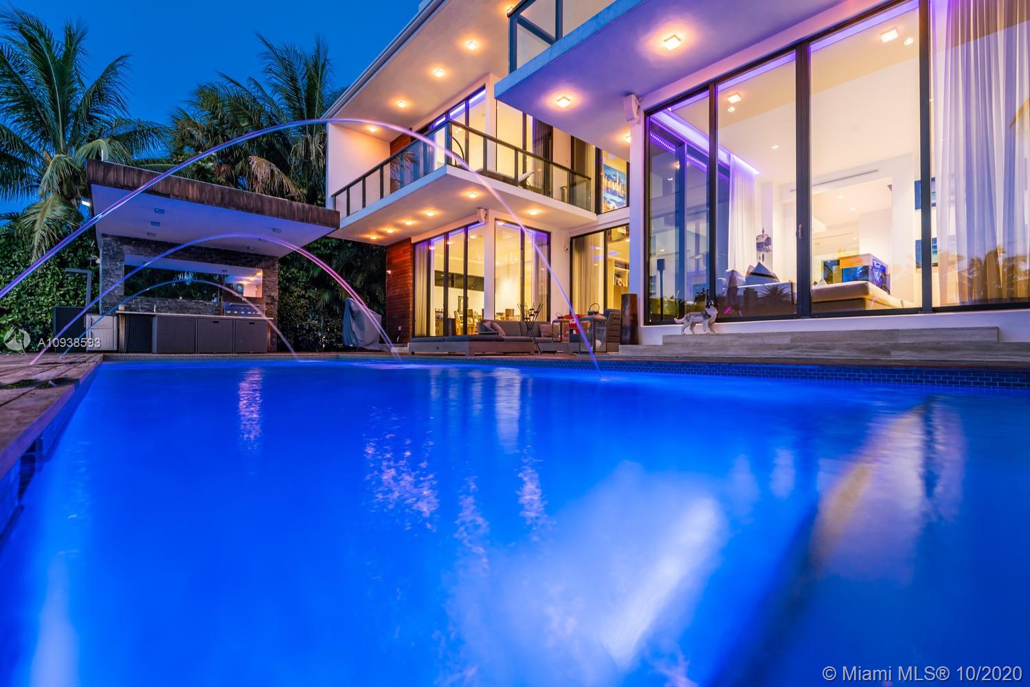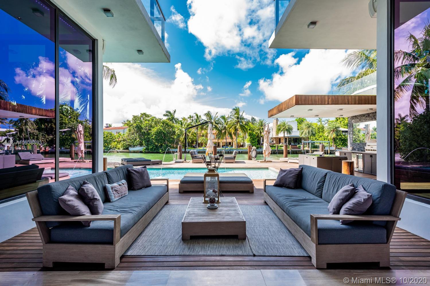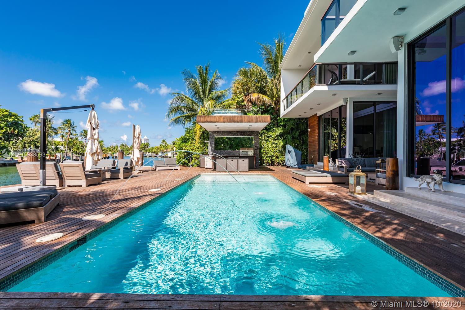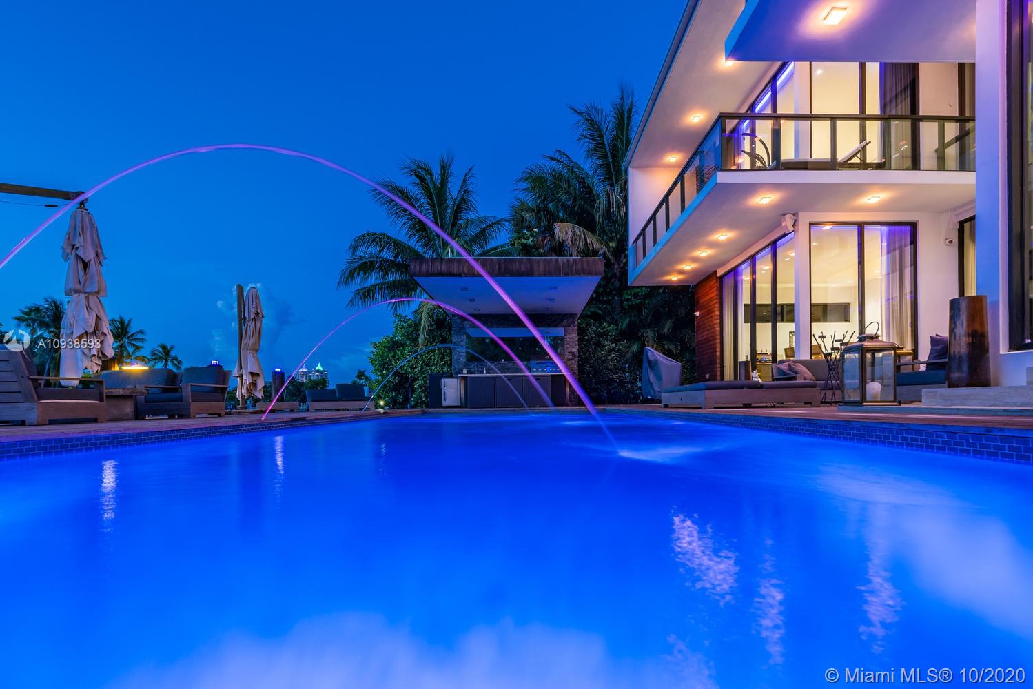 MODERN COMFORT MEETS RESORT-STYLE SANCTUARY. Designed by Cheoff Levy Fischman and built in 2016, this luxe waterfront masterpiece is perfectly nestled across from Miami Beach Golf Club with 80 ft on Biscayne Waterway. This breathtaking spacious, light-filled home reveals clever, multi-faceted design with seamless indoor-outdoor living and intimate privacy throughout. Features: Lutron Homework Lighting; 28 ft living room ceiling; gourmet Subzero-Wolf marble kitchen; 12 person dining room; wide-planked French oak flooring; stunning owner’s suite with full marble slab finishes; and parking for 12 cars with a 4-car AC garage. An entertainer’s delight with outdoor terraces, covered open air summer kitchen, lush pool, cabana bath and rooftop hot tub to savor spectacular sunrises and sunsets!