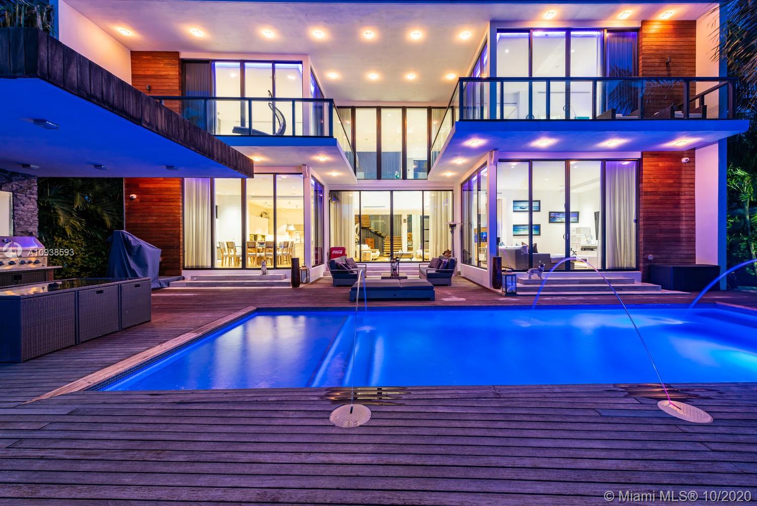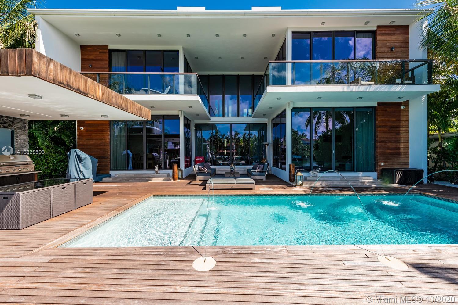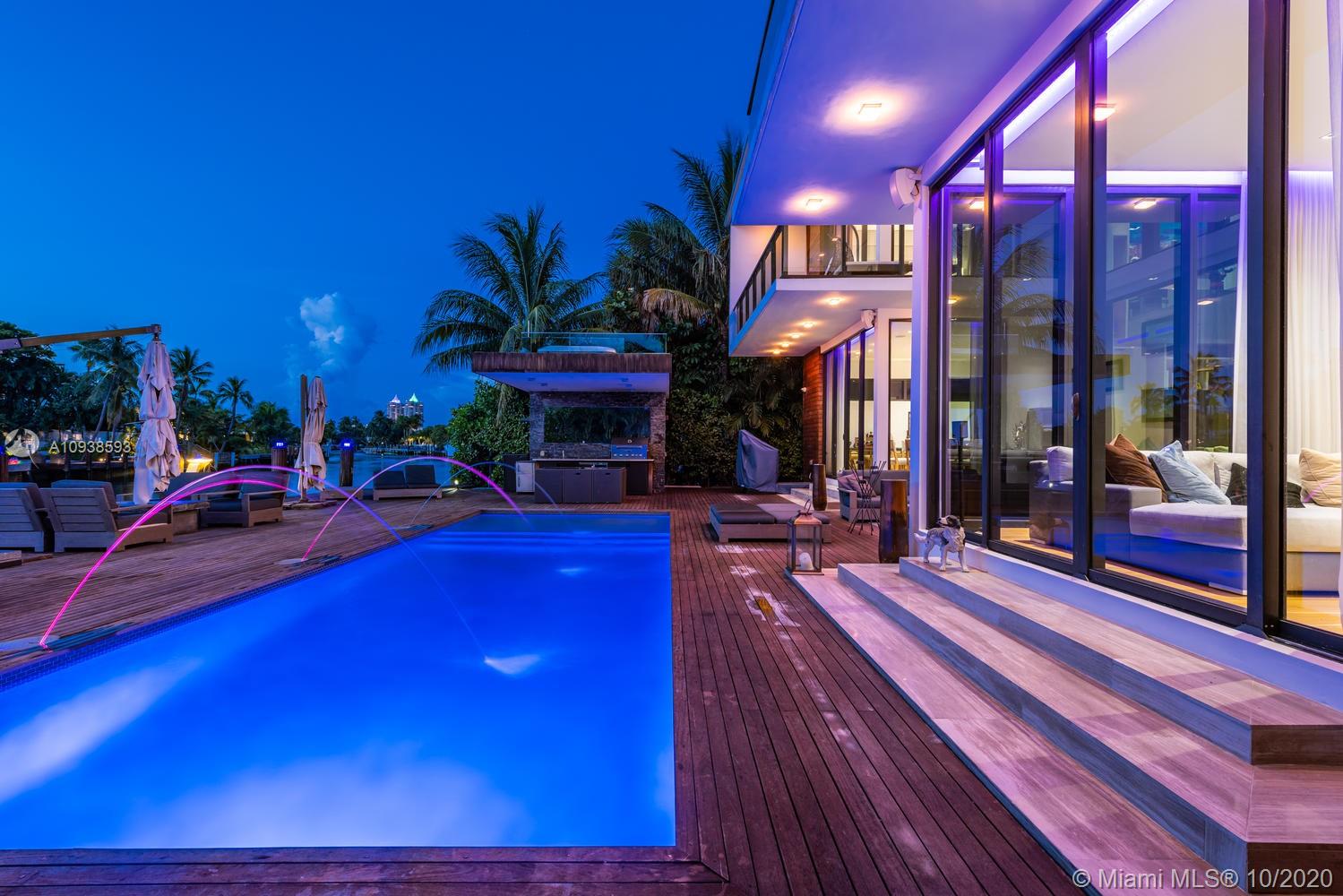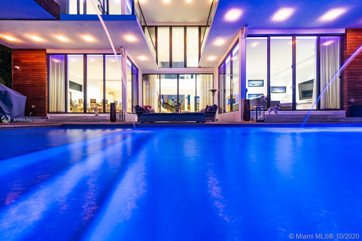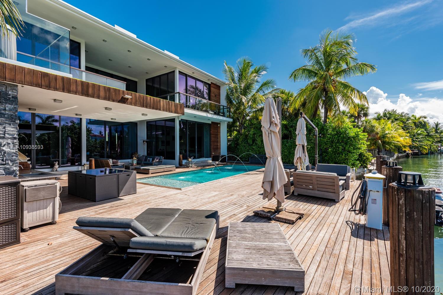 MODERN COMFORT MEETS RESORT-STYLE SANCTUARY. Designed by Cheoff Levy Fischman and built in 2016, this luxe waterfront masterpiece is perfectly nestled across from Miami Beach Golf Club with 80 ft on Biscayne Waterway. This breathtaking spacious, light-filled home reveals clever, multi-faceted design with seamless indoor-outdoor living and intimate privacy throughout. Features: Lutron Homework Lighting; 28 ft living room ceiling; gourmet Subzero-Wolf marble kitchen; 12 person dining room; wide-planked French oak flooring; stunning owner’s suite with full marble slab finishes; and parking for 12 cars with a 4-car AC garage. An entertainer’s delight with outdoor terraces, covered open air summer kitchen, lush pool, cabana bath and rooftop hot tub to savor spectacular sunrises and sunsets!
