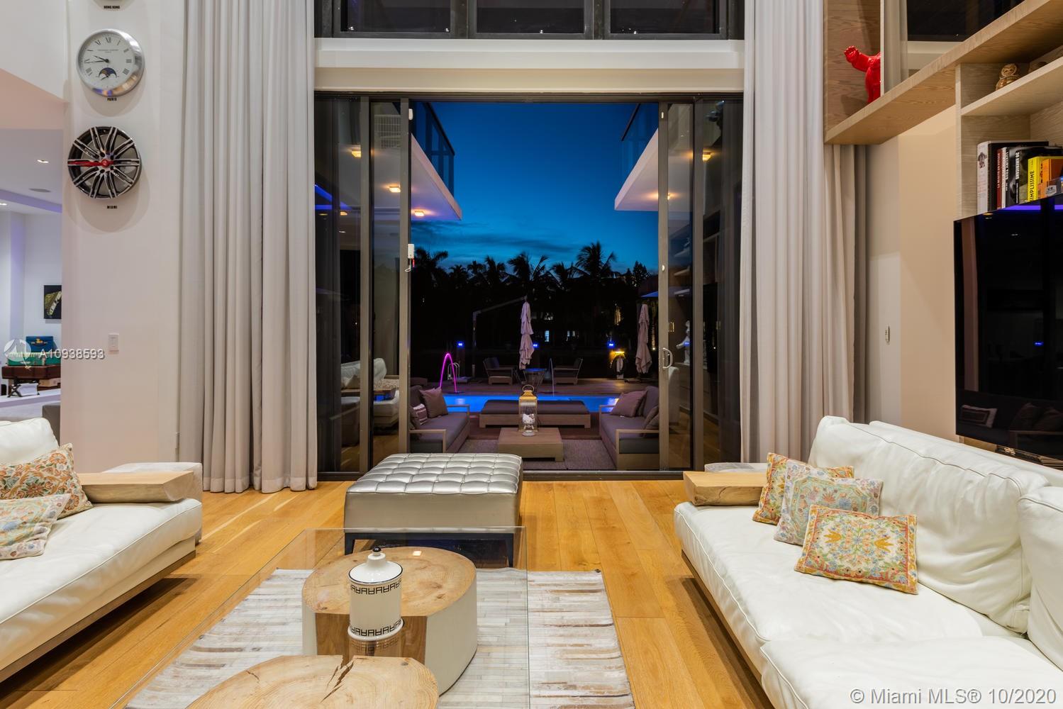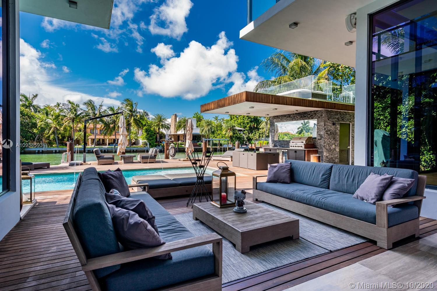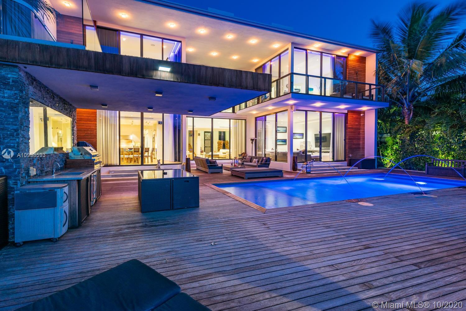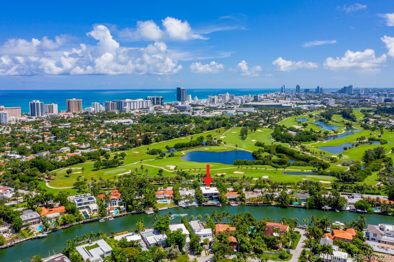 MODERN COMFORT MEETS RESORT-STYLE SANCTUARY. Designed by Cheoff Levy Fischman and built in 2016, this luxe waterfront masterpiece is perfectly nestled across from Miami Beach Golf Club with 80 ft on Biscayne Waterway. This breathtaking spacious, light-filled home reveals clever, multi-faceted design with seamless indoor-outdoor living and intimate privacy throughout. Features: Lutron Homework Lighting; 28 ft living room ceiling; gourmet Subzero-Wolf marble kitchen; 12 person dining room; wide-planked French oak flooring; stunning owner’s suite with full marble slab finishes; and parking for 12 cars with a 4-car AC garage. An entertainer’s delight with outdoor terraces, covered open air summer kitchen, lush pool, cabana bath and rooftop hot tub to savor spectacular sunrises and sunsets!