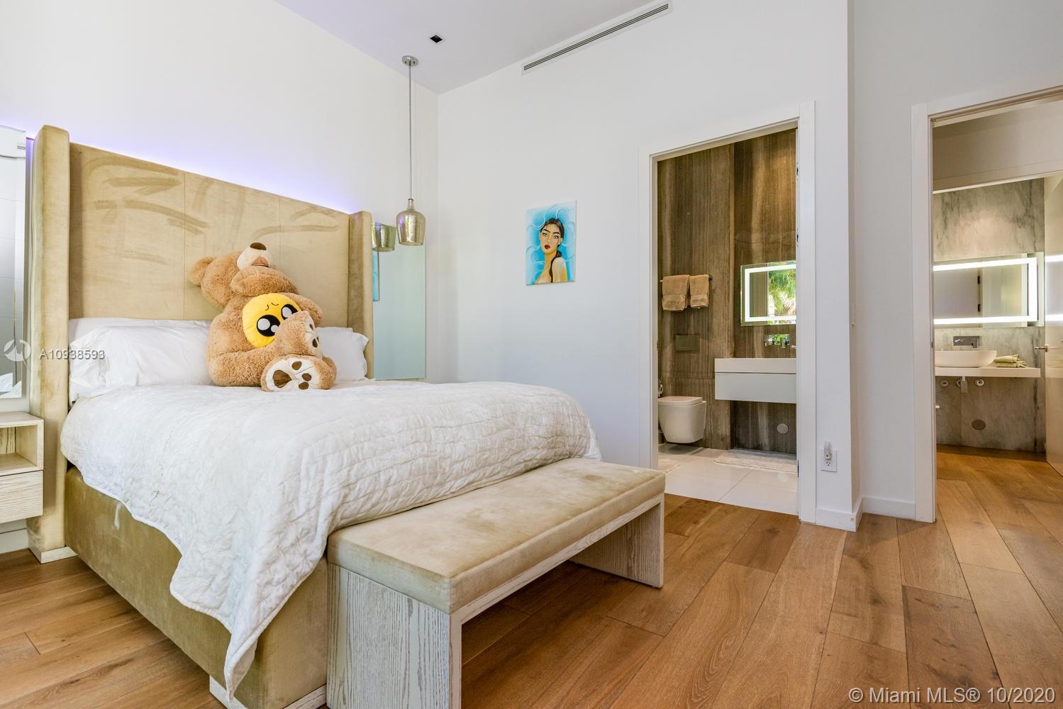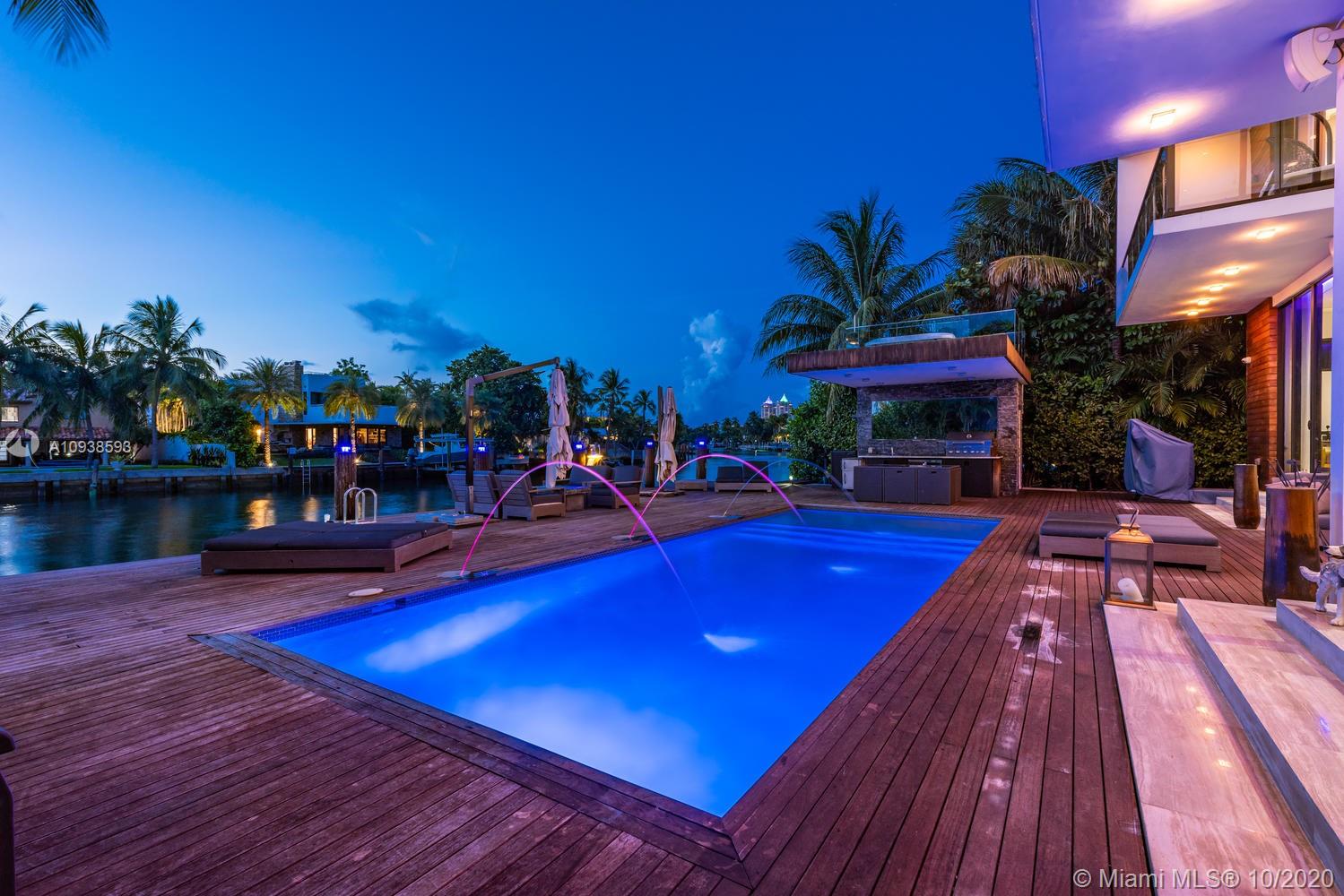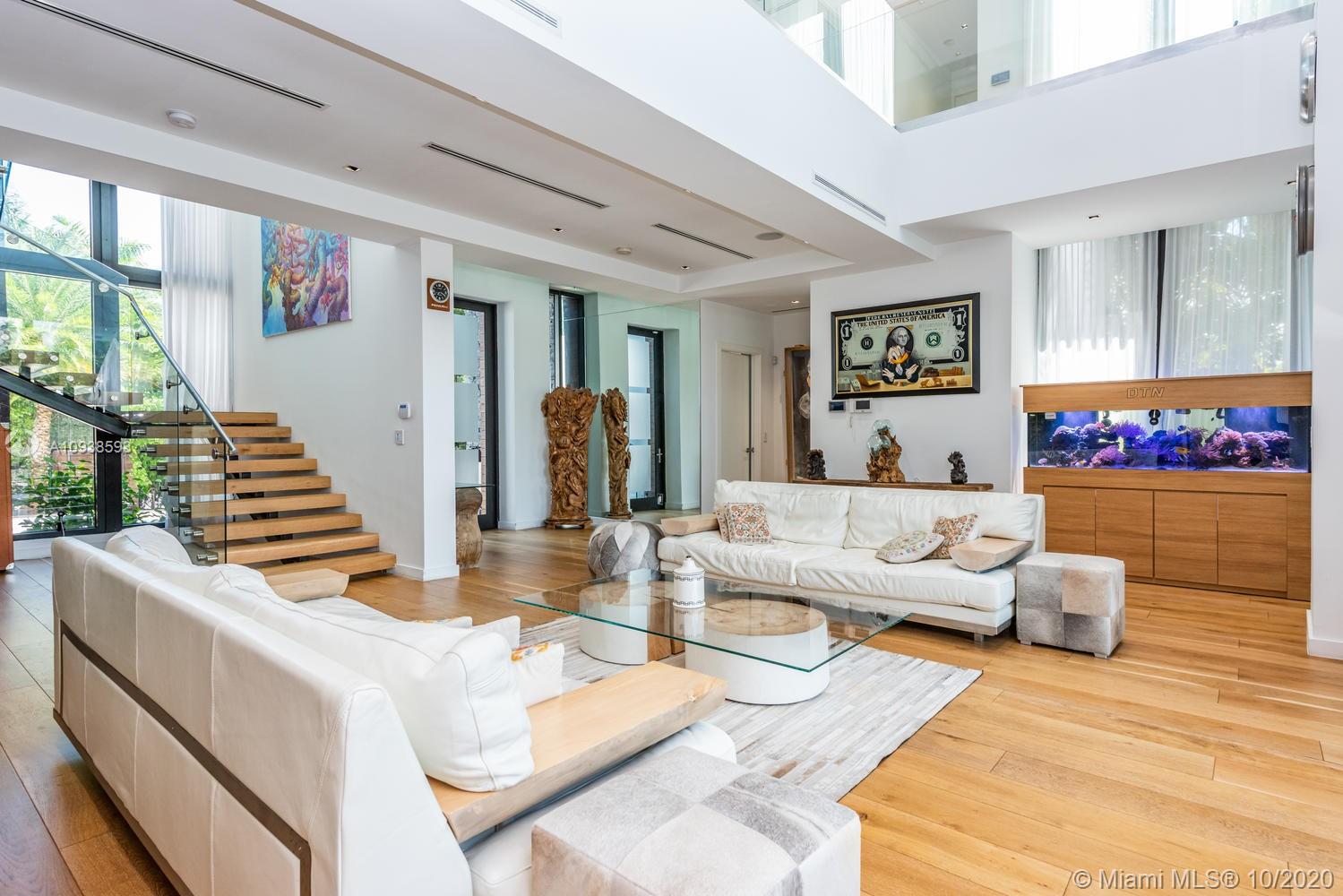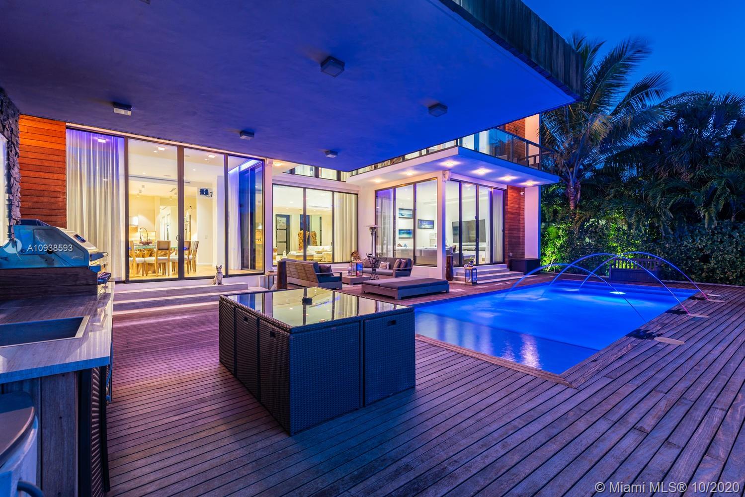 MODERN COMFORT MEETS RESORT-STYLE SANCTUARY. Designed by Cheoff Levy Fischman and built in 2016, this luxe waterfront masterpiece is perfectly nestled across from Miami Beach Golf Club with 80 ft on Biscayne Waterway. This breathtaking spacious, light-filled home reveals clever, multi-faceted design with seamless indoor-outdoor living and intimate privacy throughout. Features: Lutron Homework Lighting; 28 ft living room ceiling; gourmet Subzero-Wolf marble kitchen; 12 person dining room; wide-planked French oak flooring; stunning owner’s suite with full marble slab finishes; and parking for 12 cars with a 4-car AC garage. An entertainer’s delight with outdoor terraces, covered open air summer kitchen, lush pool, cabana bath and rooftop hot tub to savor spectacular sunrises and sunsets!
