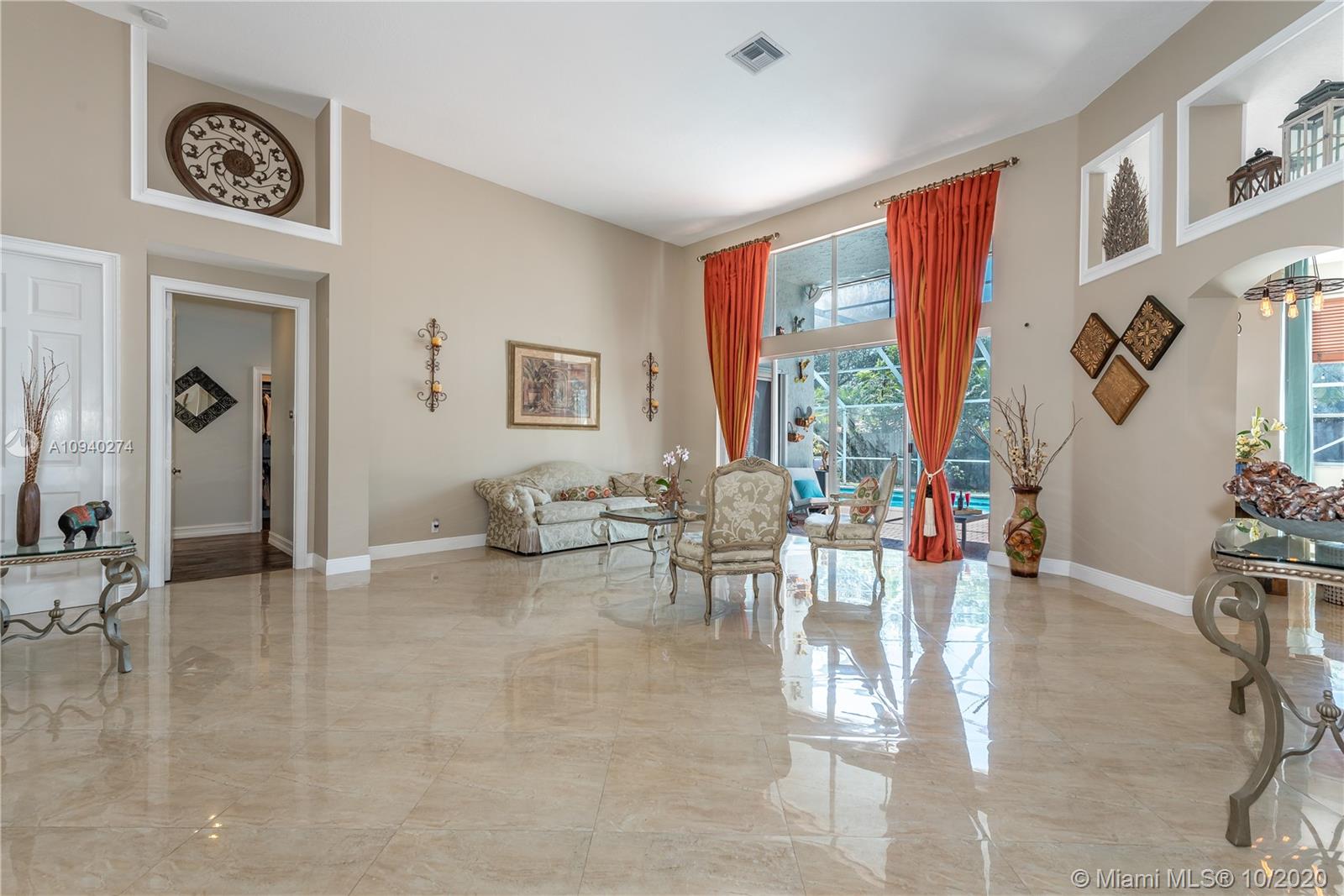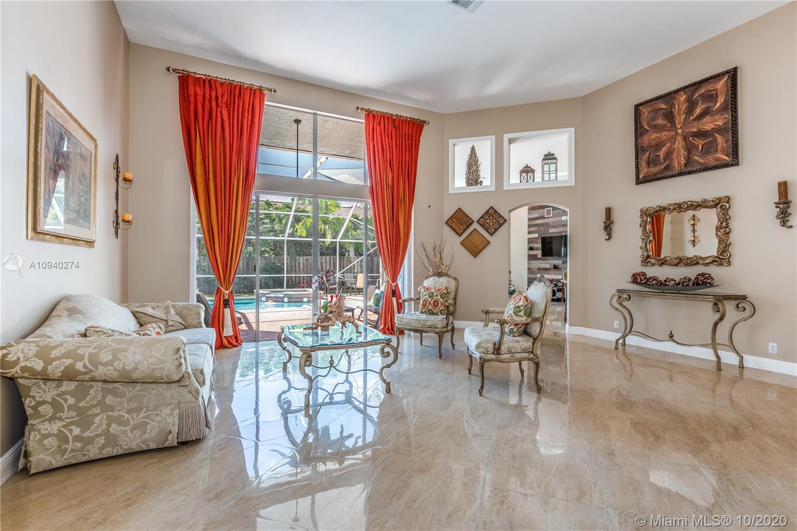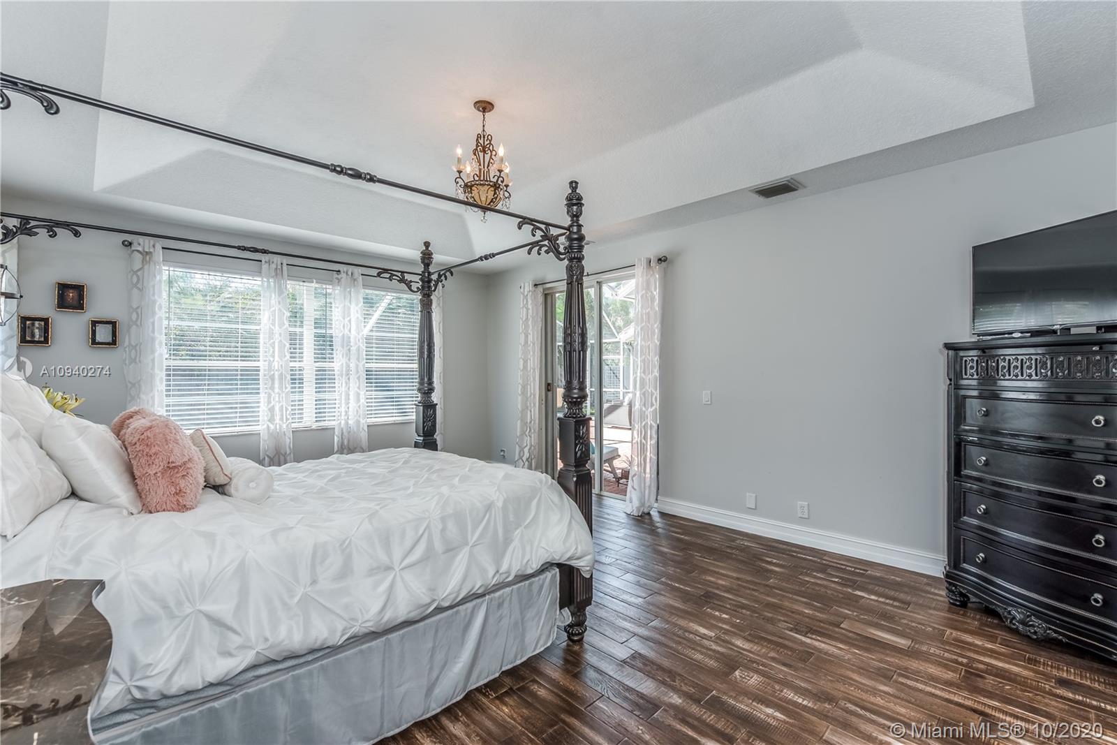 This home has it ALL. It's elegant, spacious and SUPER upgraded! Step into the foyer entry & be greeted by soaring ceilings, abundant windows & beautiful natural light. Every corner has been upgraded with the finest features. Hardwood flooring in bedrooms & 24 inch Italian Porcelain floors in living area. Custom hard wood kitchen with rare Golden Cashmere granite & stone backsplash. Master Bath is a dream with huge walk-in rain shower, marble tiles & dual waterfall countertops. All door moldings & baseboard replaced with 6 inch solid wood. Sparkling pool/spa. AC's replaced last 5 years. Efficient water heater, seamless gutters, custom closets, accordion/shutters etc. The community is a quiet HIDDEN GEM with gate, tennis & more. Excellent Schools & great location close to everything.