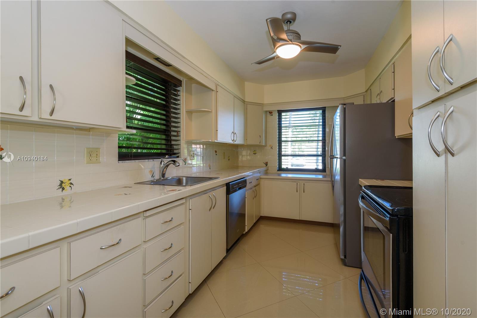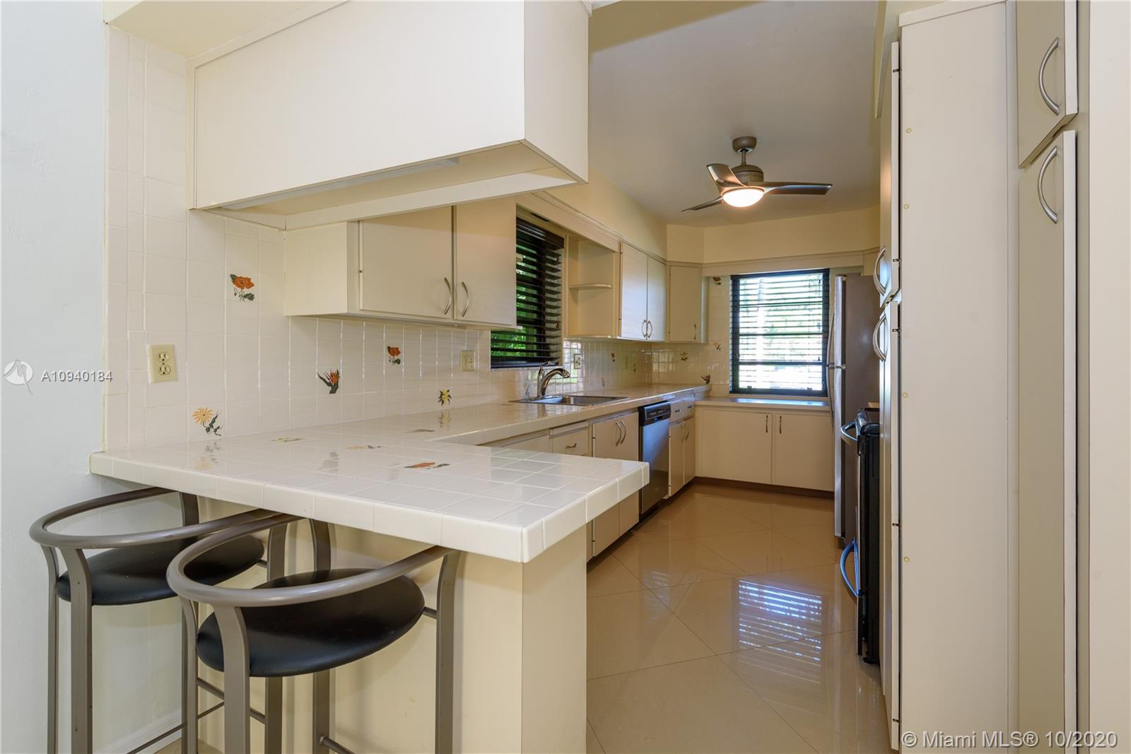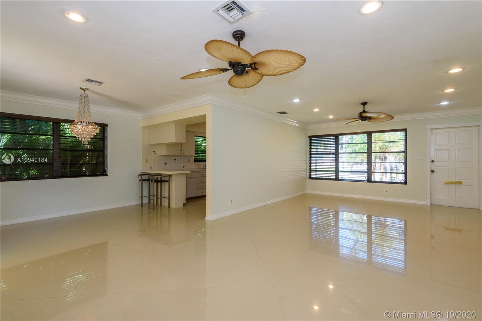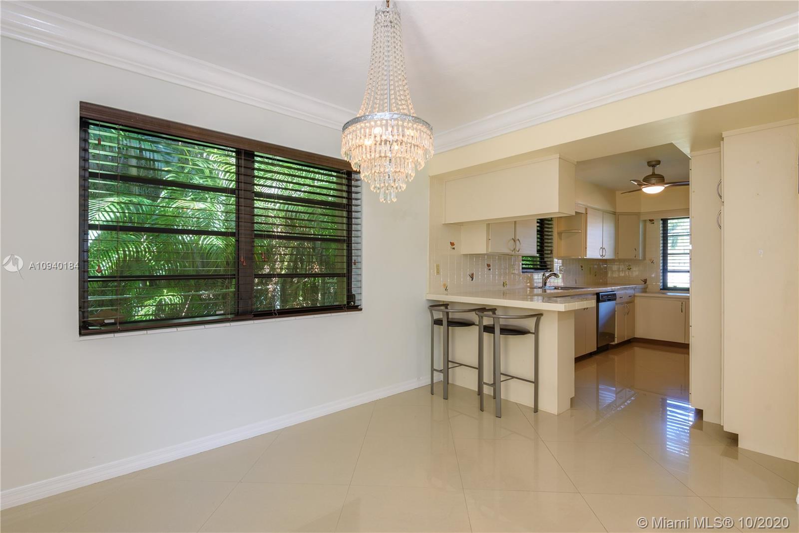 Charming Florida home , with polished porcelain floors that reflect the sun from the from and back windows. Crown molding meets the ceiling and frames the doorways. Lots of counterspace will inspire the cook in you as the kitchen has wonderful tiled counters. 2 windows enhance the size. The east at counter is an added feature. The living dining room opens to a great back yard. Two bedrooms and baths flank the east side of house. The backyard has a lovely patio and garden that has room for a pool. Additional driveway leads to a one car garage where washer and dryer are kept.