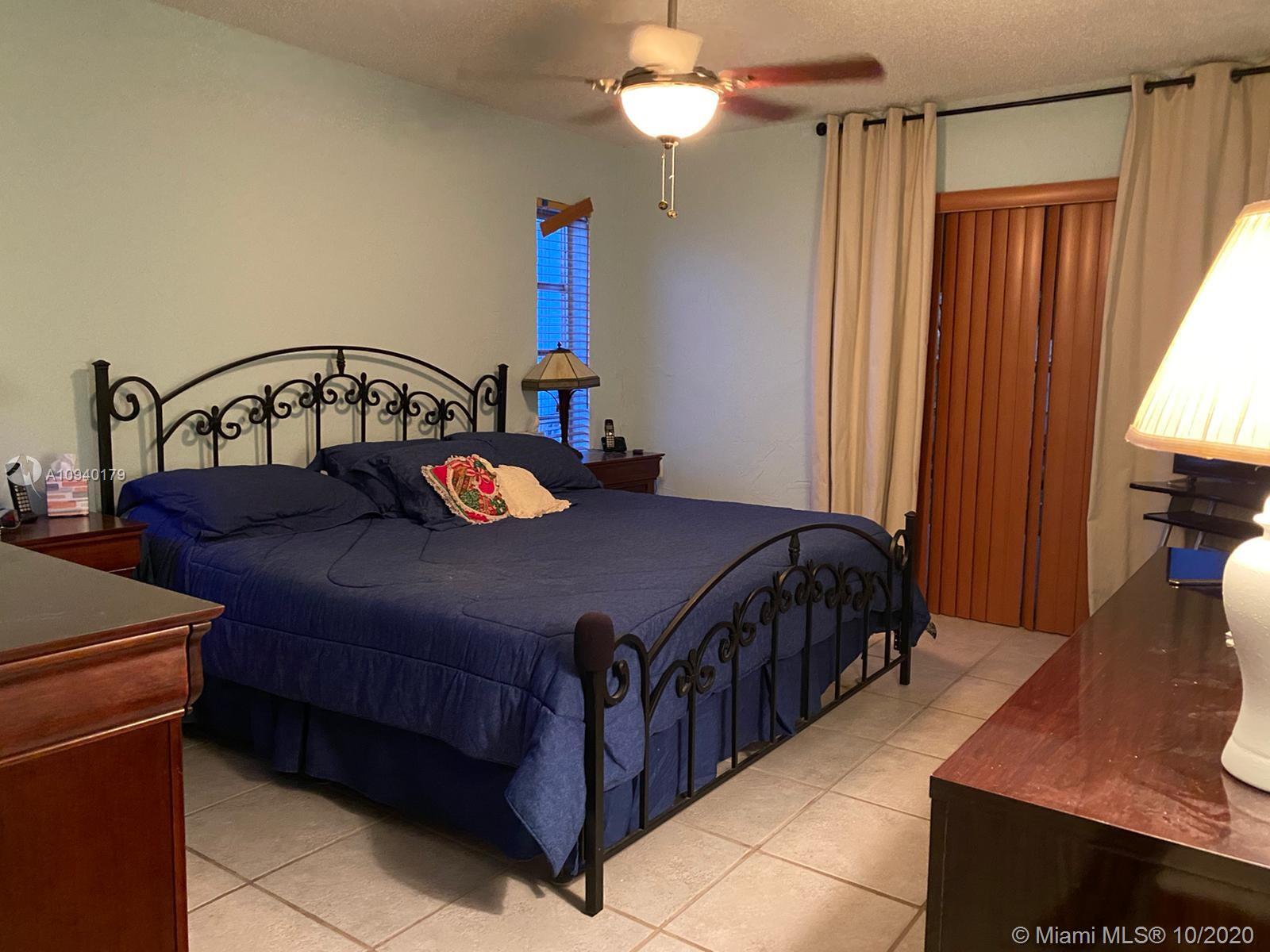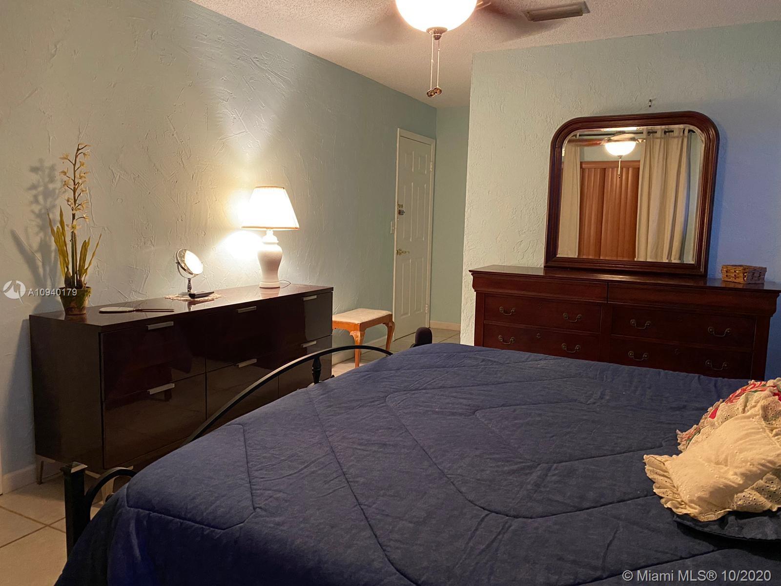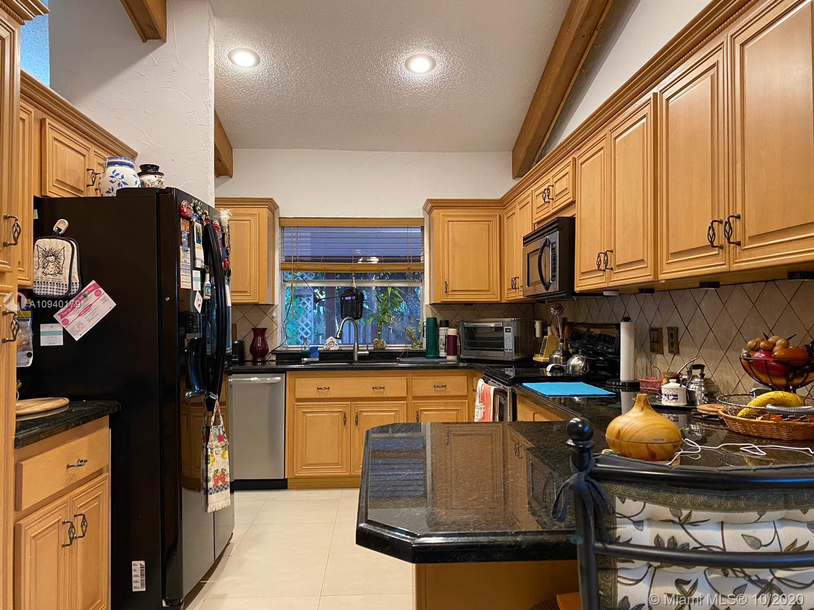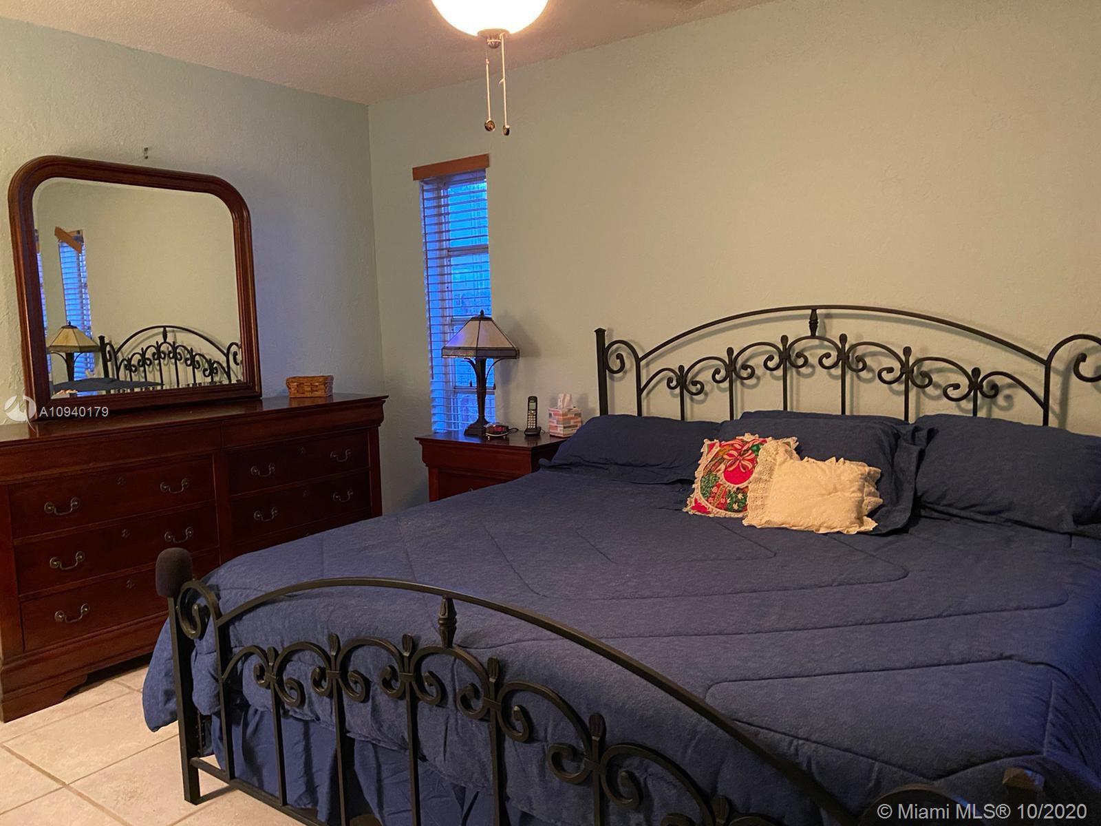 Lovely 3 bedroom 2 bathroom with functional fireplace and 2 car garage home with laundry room. in Pembroke Lakes. Large 1900 + sqft home with large front and rear yard. Covered patio to enjoy the back yard. Large tile throughout the home. Updated kitchen with stone counter top. Sunken Fireplace with seating area to enjoy evenings next to fireplace. Desk, bookshelves and murphy bed in 3rd bedroom is staying and will not be removed. Sold AS IS. 1/2 bathroom in hallway was done by owner, buyer has the option to accept the 1/2 or request owner to convert it back to closet. Roof was replaced in 2008.