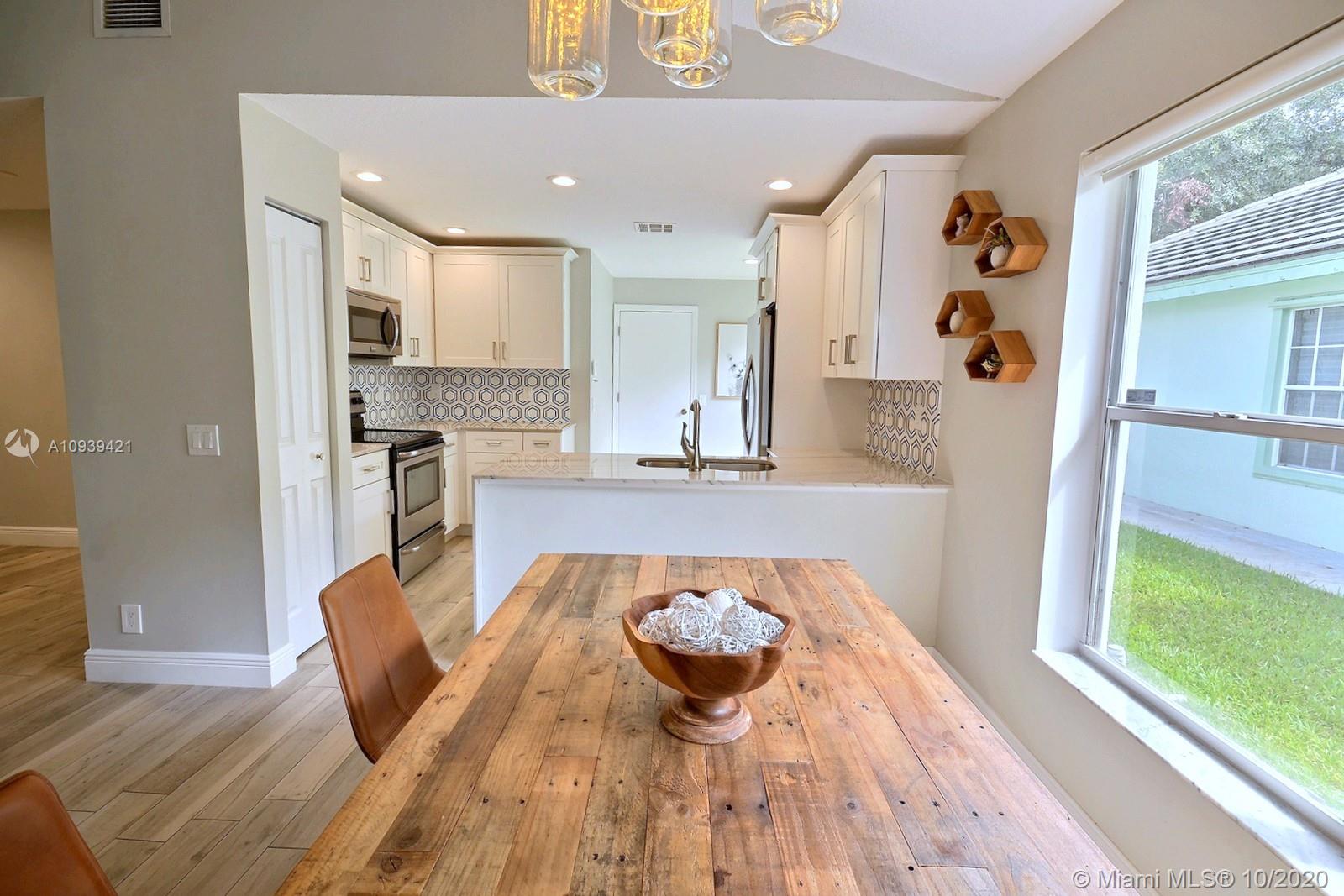 TUCKED AWAY IN THE STUNNING COMMUNITY OF FOREST RIDGE IN DAVIE, SITS THIS BEAUTIFULLY UPDATED HOME. THE LONG WINDING TREE-LINED STREET SETS THE TONE FOR THIS TRULY SPECIAL COMMUNITY. REMODELED HOME OFFERS GORGEOUS NEW KITCHEN WITH WHITE SHAKER CABINETS, STAINLESS STEEL APPLIANCES, MARBLE BACKSPLASH, WATERFALL COUNTER TOP AND BREAKFAST NOOK. FABULOUS NEW TILE WOOD PLANK FLOORS & NEW BASEBOARDS THROUGHOUT. HIGH CEILINGS, RECESSED LIGHTING, ELEGANT LIGHT FIXTURES & NEUTRAL PAINT COLORS. SPLIT BEDROOM PLAN FOR PRIVACY. SPACIOUS PRIMARY BEDROOM WITH WALK-IN CLOSET AND ENSUITE BATHROOM COMPLETE WITH DUAL SINKS AND STAND ALONE SHOWER. AMAZING COVERED AND SCREENED IN PATIO IS GREAT FOR ENTERTAINING, RAIN GUTTERS, PRIVATE FENCED-IN YARD AND 2 CAR GARAGE.