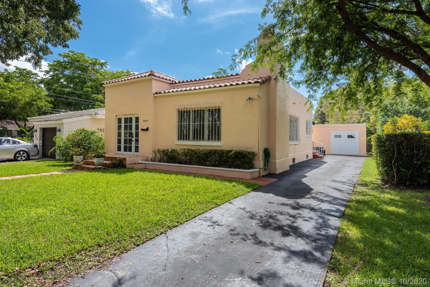 Wonderful opportunity to make this adorable house your home. Nestled within a quintessential Coral Gables tree-lined street this lovely 3 bedroom and 2 bathroom house is walking distance from the Granada Golf Course and Coral Gables Athletic Club. Enter the house through impact glass doors into an inviting front foyer and then make your way to a nice sized living and dining room combination. Step into a small vestibule to reach the bathroom and two bedrooms off the dining room. The kitchen with updated appliances leads you to an indoor washer dryer closet and the 3rd bedroom at the back of the house with en suite bath and glass doors to a small covered patio. 24-hour notification needed to make an appointment.