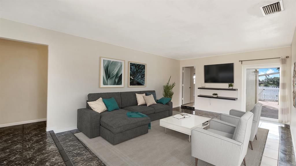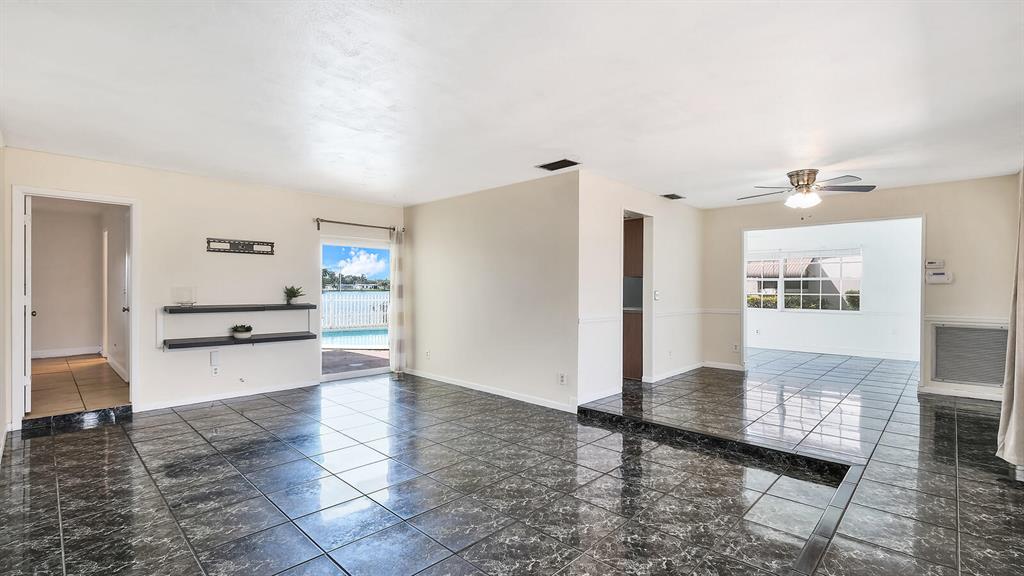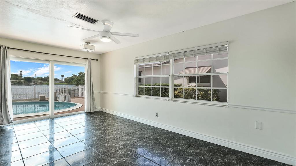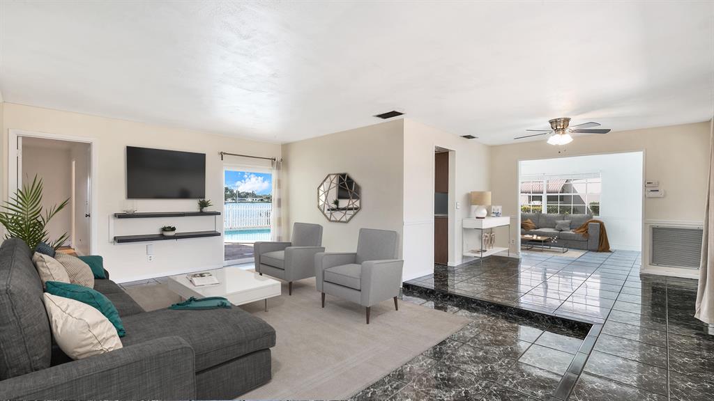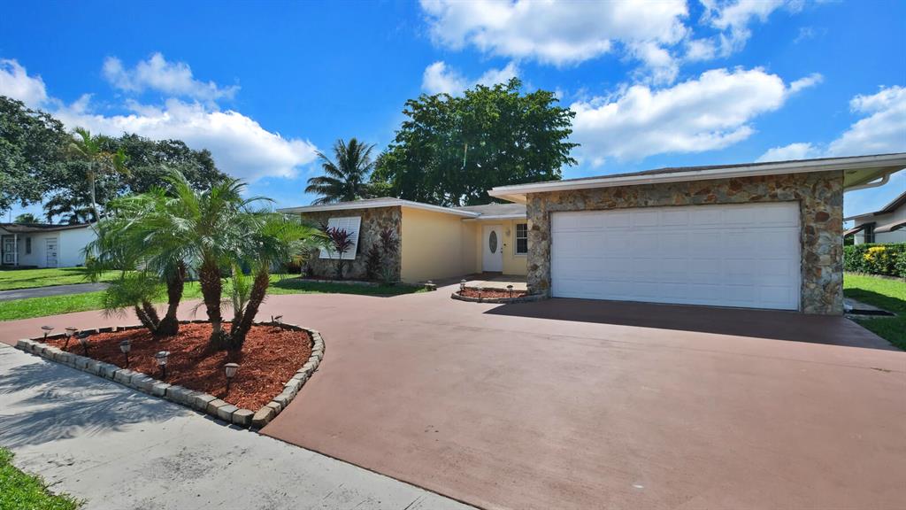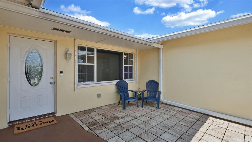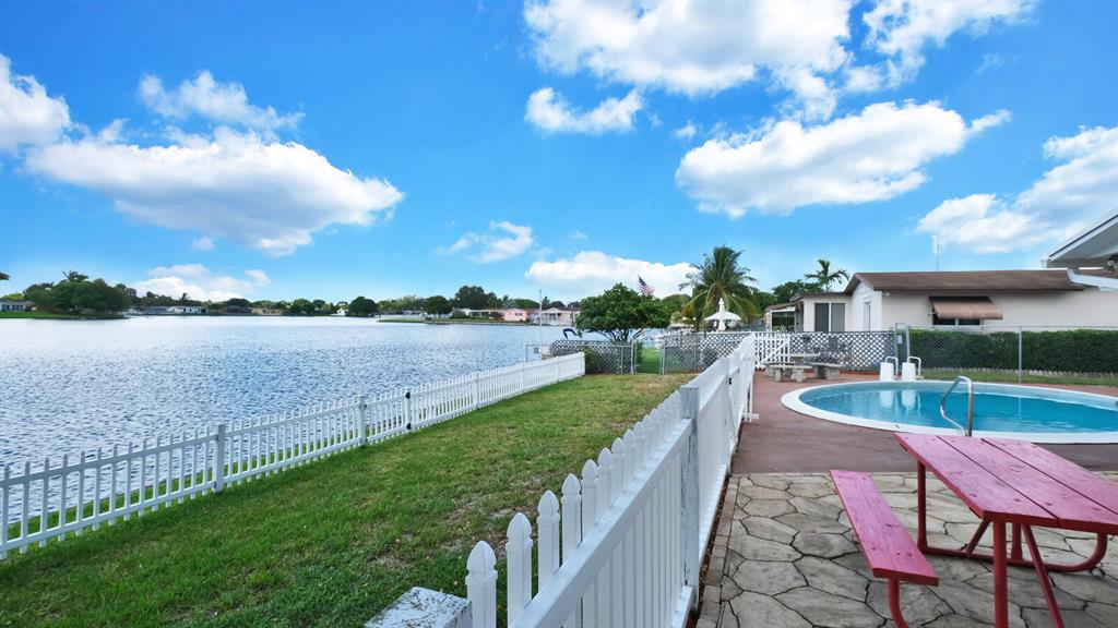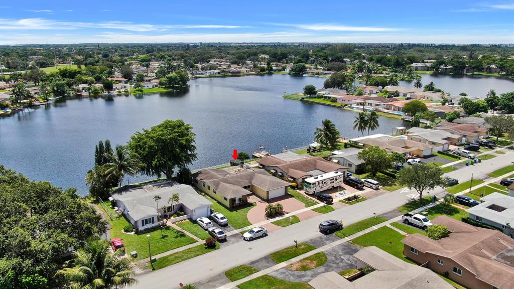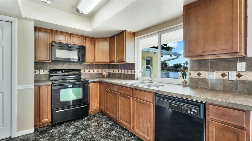 Wonderfully Welcoming and Handsome Waterfront Home! Traditional Floridian panache and tropical charm is delightfully indisputable with luscious palms, buttercream hued stucco, an enormous circular driveway, and exterior rock accents. Tasteful shrubbery and fresh red mulch offer pops of riveting color, as the lush grass engrosses the yard in emerald and shamrock tones! Once inside the spacious 4BR/2BA, 1,872 sq ft abode, you note the open floor plan, calming interior wall hues, and the luminescent flood of natural light. Daily preparation of healthful meals is easy in the eat-in kitchen which features a stainless-steel French-style refrigerator w/two freezer drawers, ample wood cabinetry, tile backsplash, dishwasher, dual stainless-steel sinks, and sprawling countertops