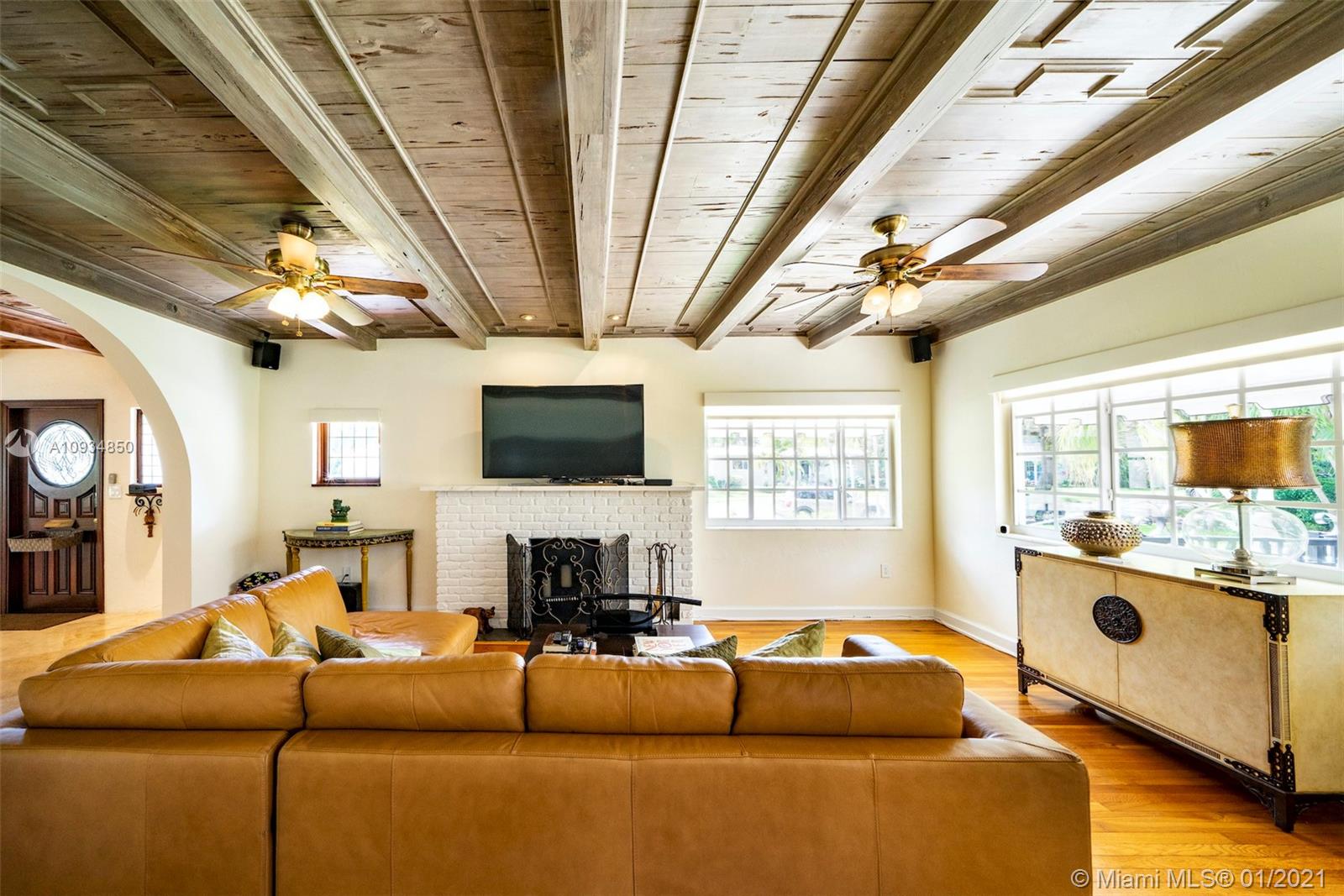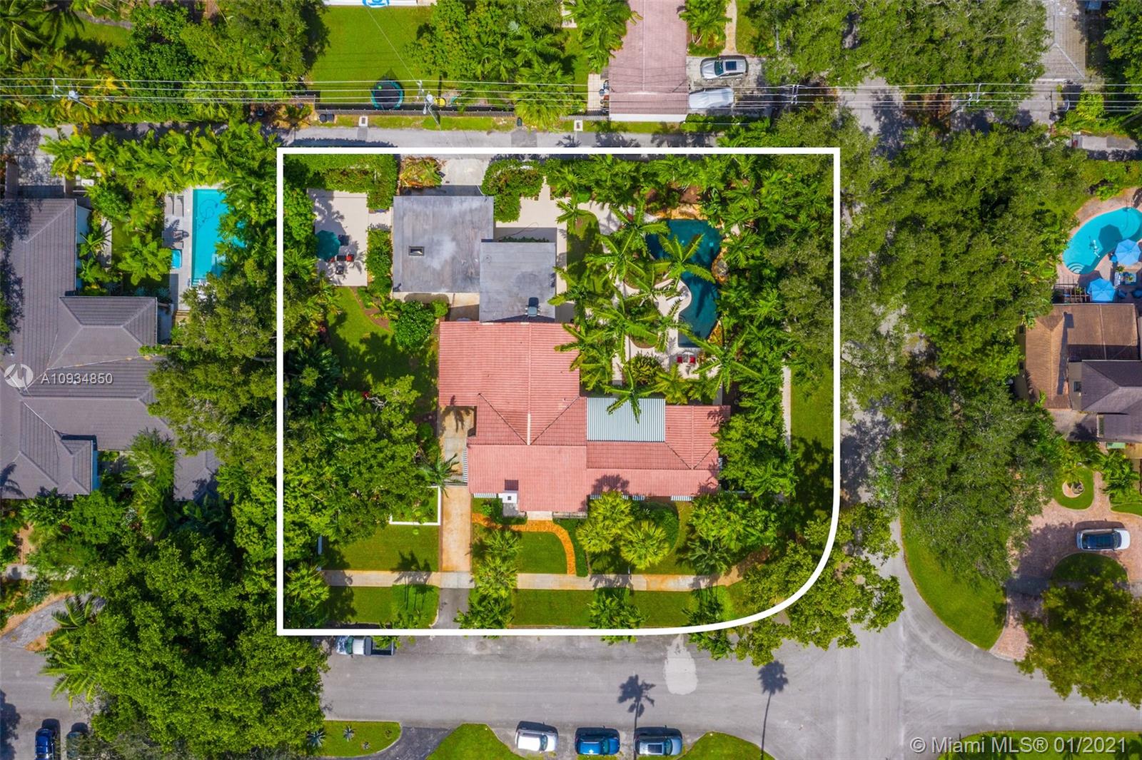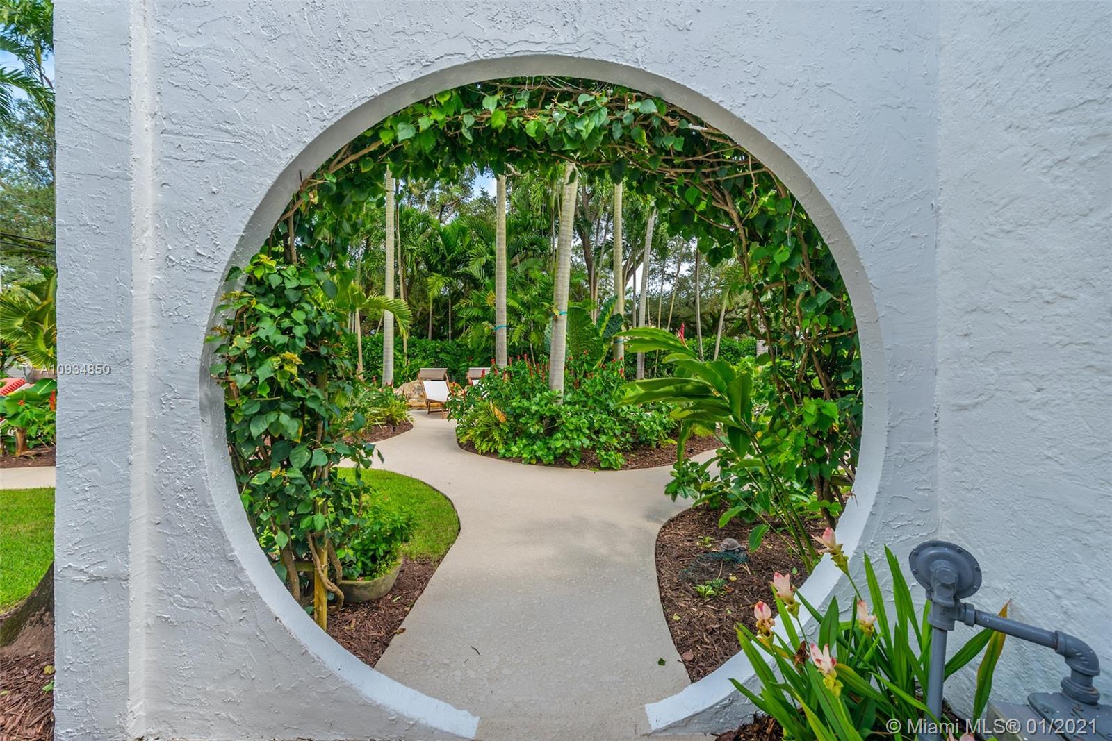 Welcome to "Deux Jardins!” An immaculate 4bd/3ba pool home situated on an expansive half acre corner lot. Enjoy lush landscaped gardens w/abundant palm & fruit trees, lagoon pool w/waterfalls, perfect for private, grand entertaining. Single story private gated estate features a spacious living room w/vaulted ceilings & covered exterior terrace offering seamless blend of indoor/outdoor living. Fall in love w/its charm & architectural details: pecky cypress ceilings, fireplace, archways & wood floors. New gas kitchen includes Thermador appliances, Woodmode cabinets & quartz counters. Residence also features a porte-cochere, 2-car garage, all impact glass, laundry room, & smart home technology. Located just minutes from great schools & Miami Shores Country Club, your new home is here!