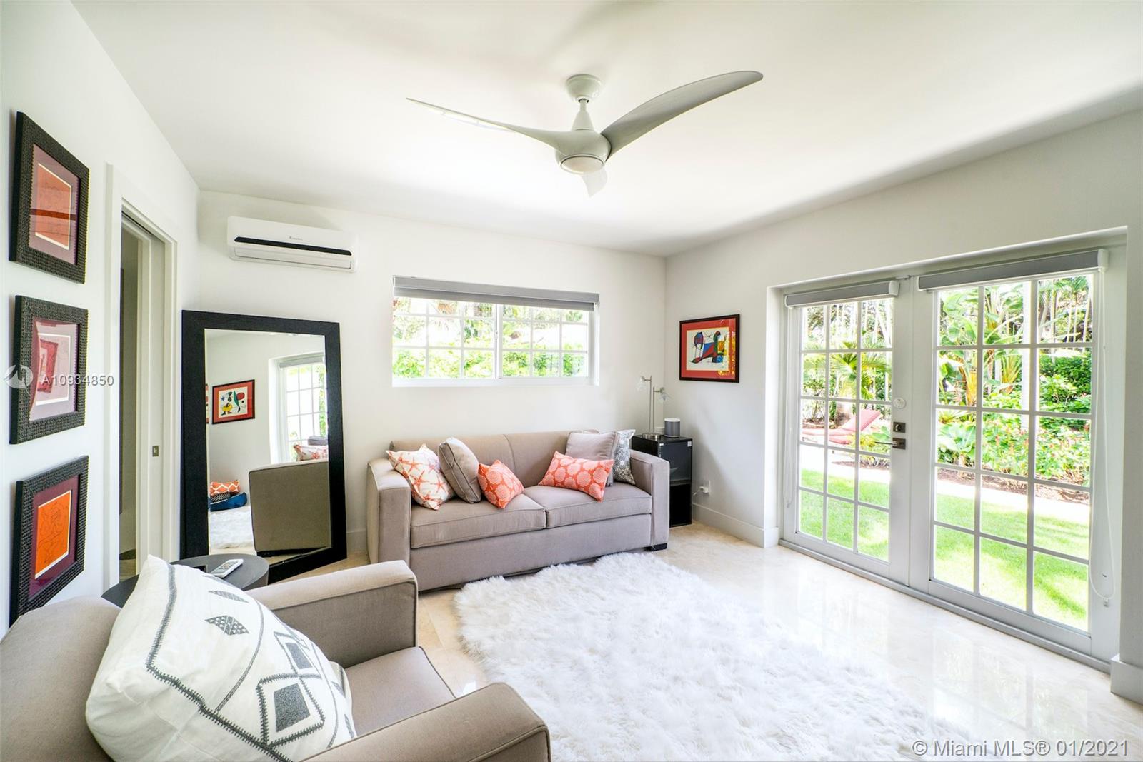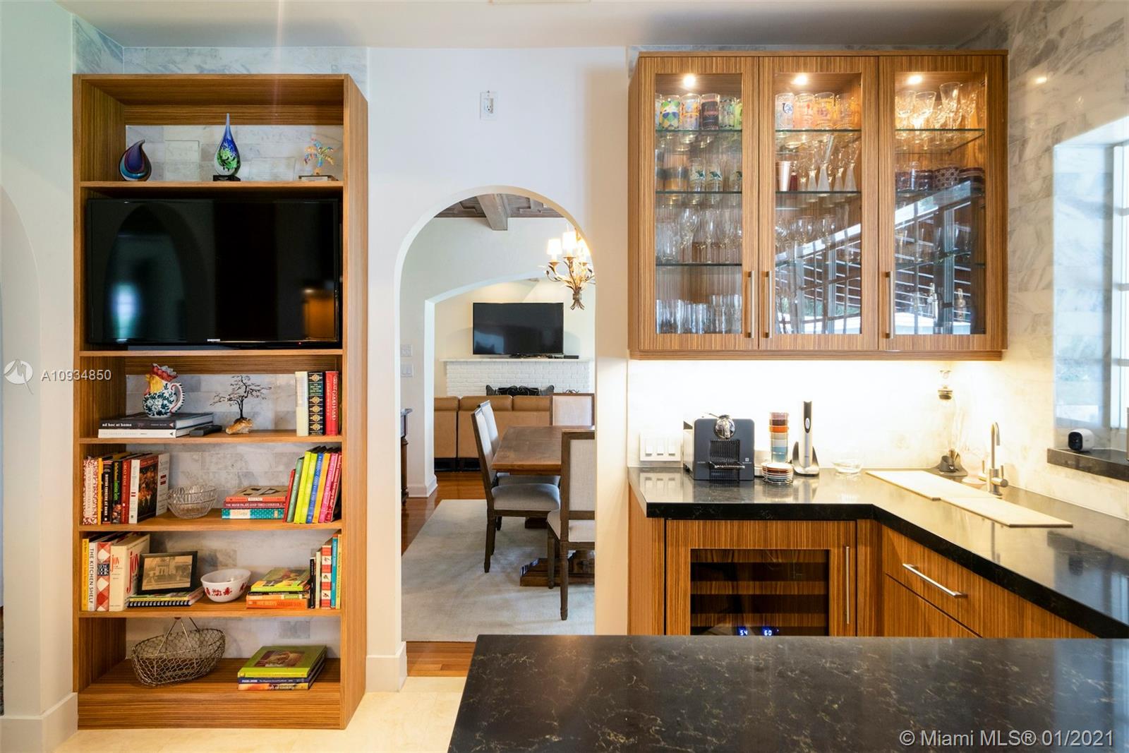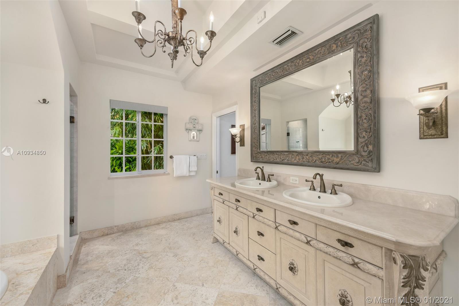 Welcome to "Deux Jardins!” An immaculate 4bd/3ba pool home situated on an expansive half acre corner lot. Enjoy lush landscaped gardens w/abundant palm & fruit trees, lagoon pool w/waterfalls, perfect for private, grand entertaining. Single story private gated estate features a spacious living room w/vaulted ceilings & covered exterior terrace offering seamless blend of indoor/outdoor living. Fall in love w/its charm & architectural details: pecky cypress ceilings, fireplace, archways & wood floors. New gas kitchen includes Thermador appliances, Woodmode cabinets & quartz counters. Residence also features a porte-cochere, 2-car garage, all impact glass, laundry room, & smart home technology. Located just minutes from great schools & Miami Shores Country Club, your new home is here!